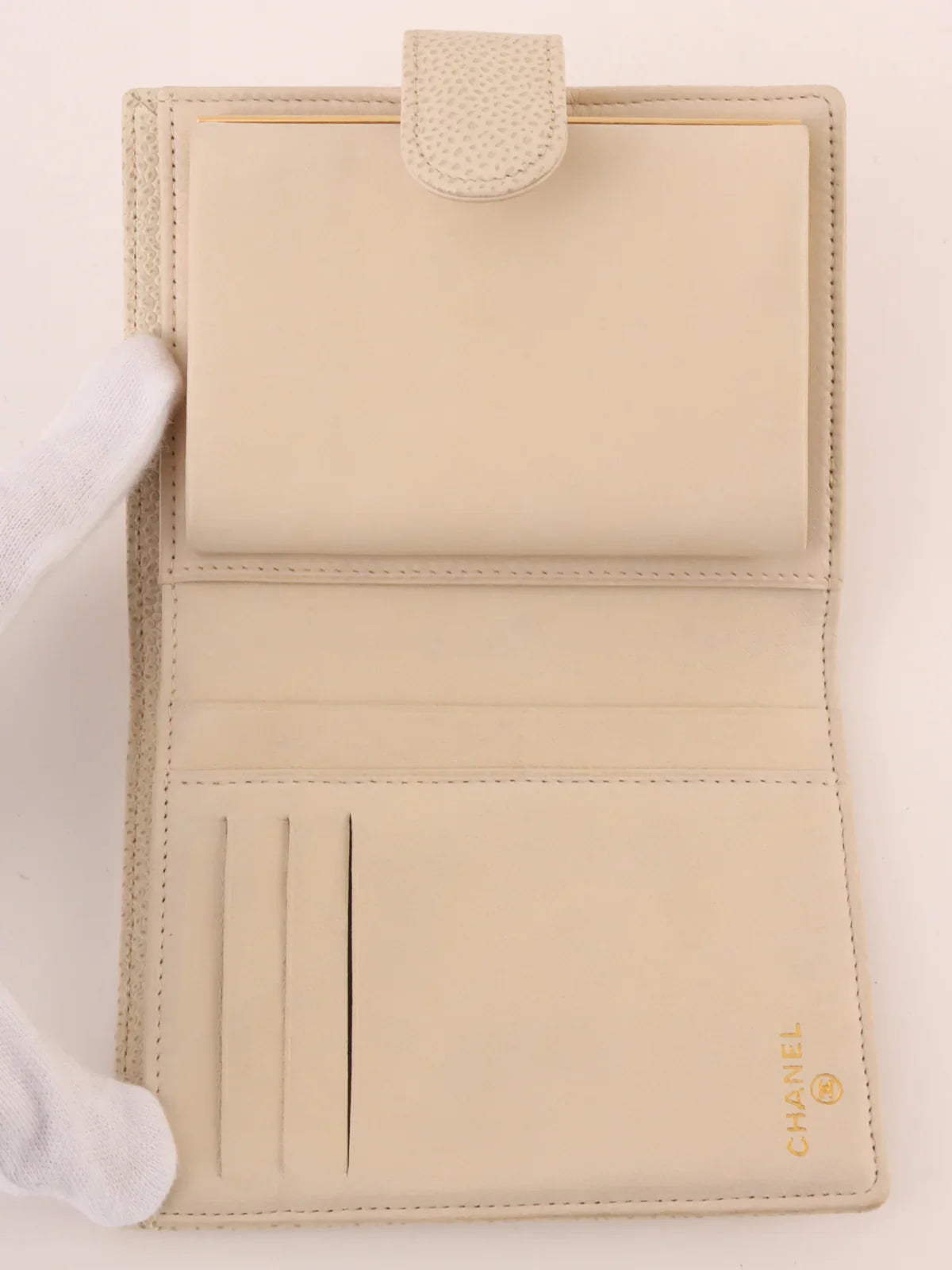 Chanel Around 2001 Made Caviar Skin Cc Mark Stitch Wallet Ivory