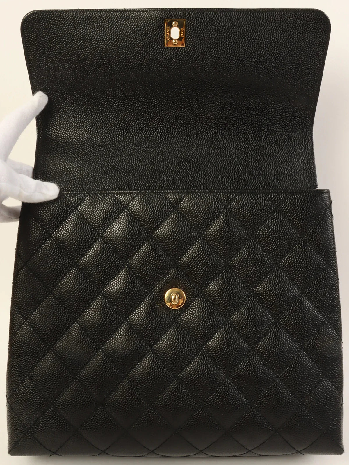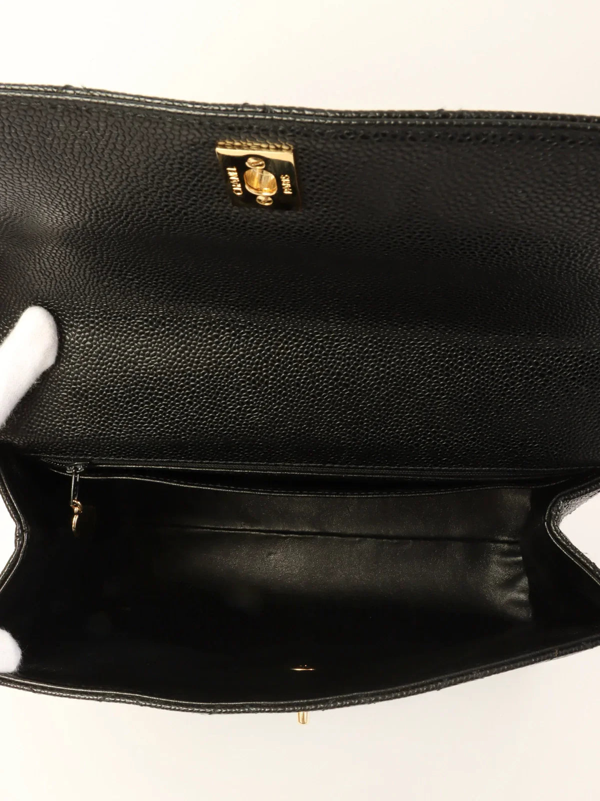 Chanel Around 2001 Made Caviar Skin Turn-Lock Top Handle Bag Black