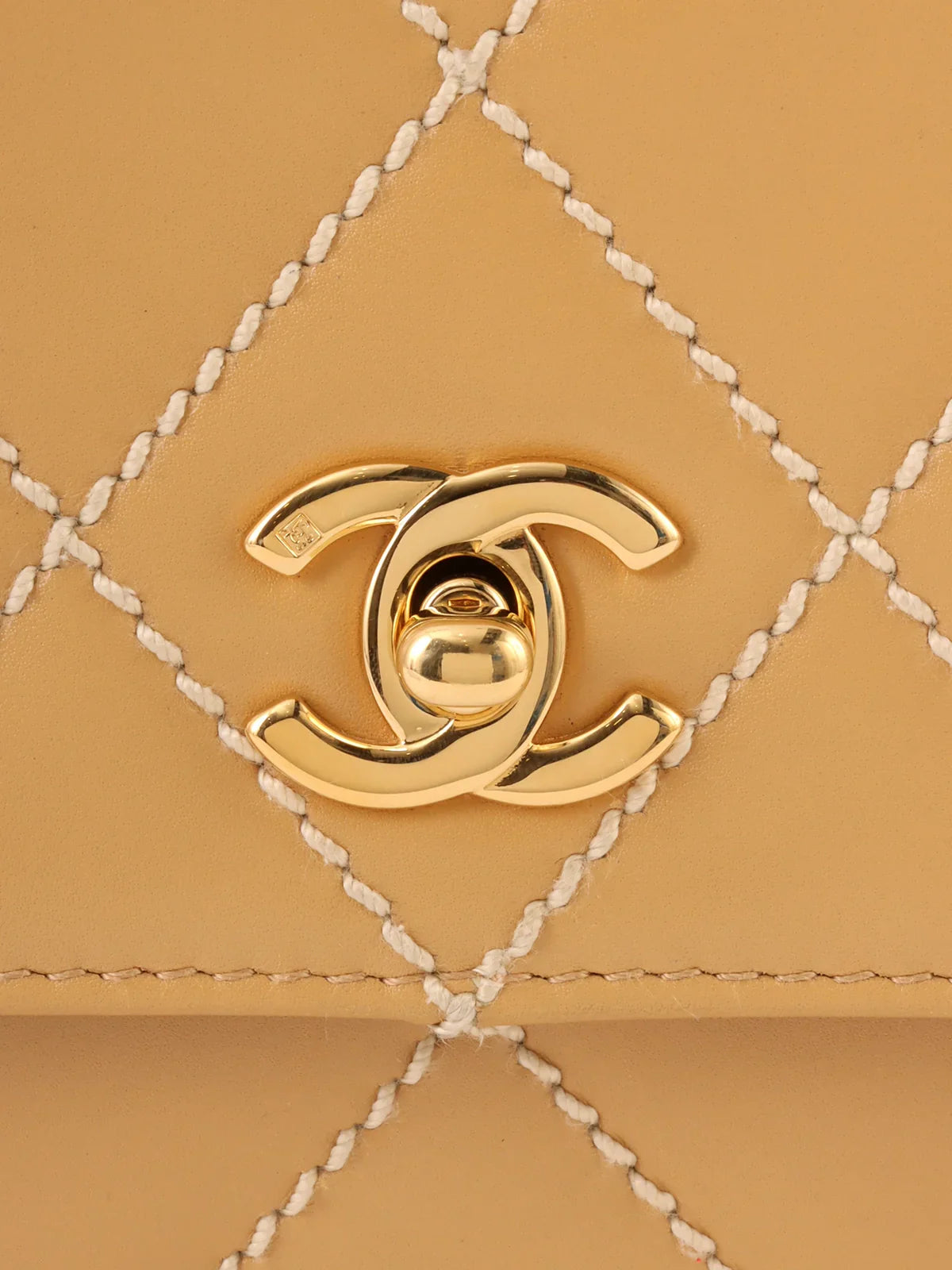 CHANEL Around 2001 Made Wild Stitch Turn-Lock Chain Bag Beige