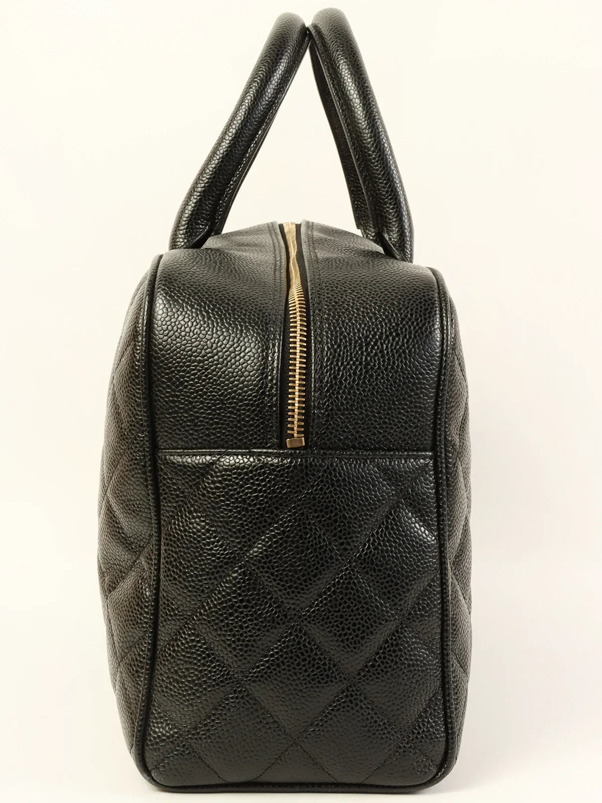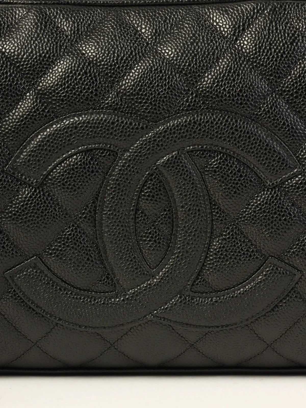 CHANEL Around 2003 Made Caviar Skin Cc Mark Stitch Boston Bag Black
