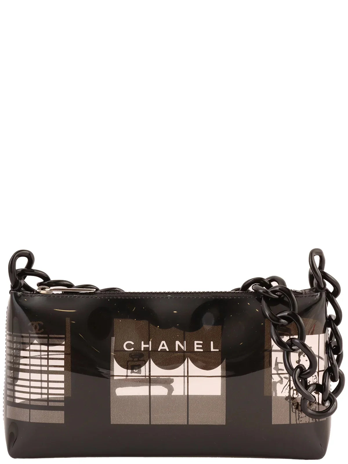 Chanel Around 2003 Made Windows Line Chain Bag Black