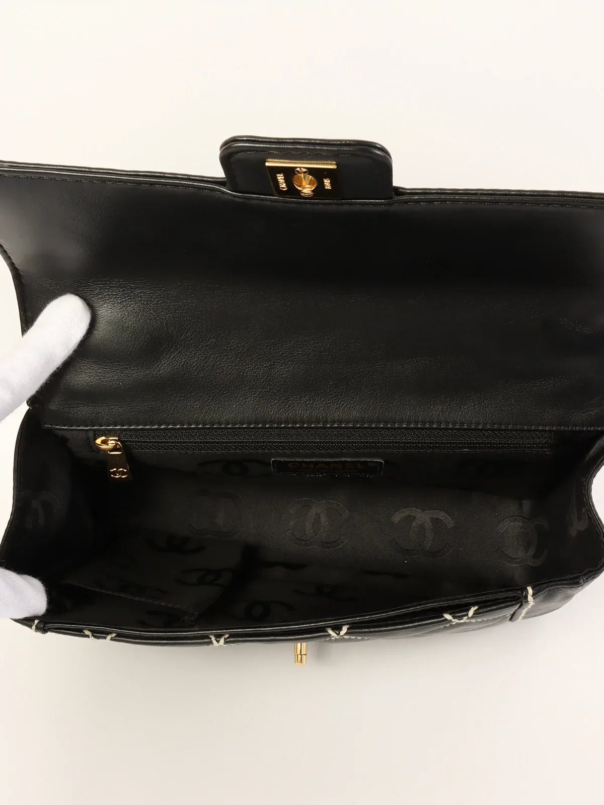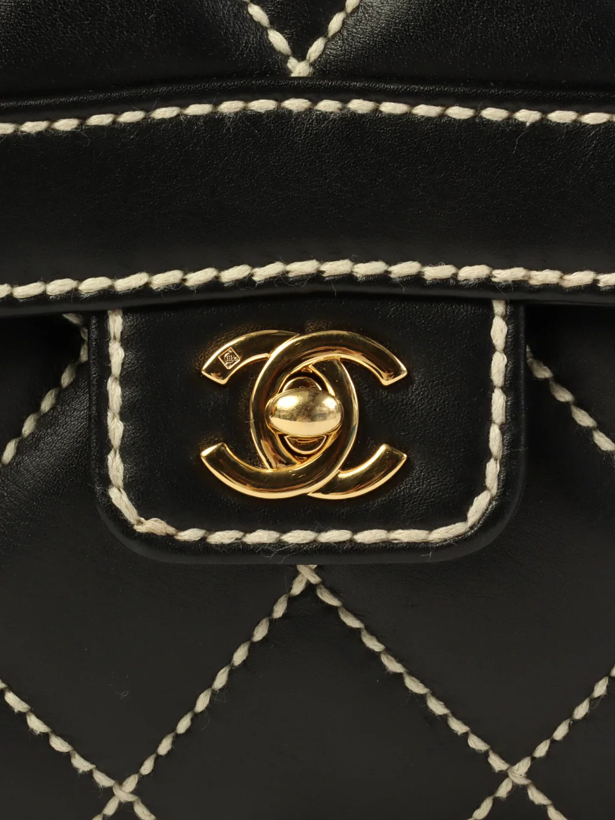 CHANEL Around 2004 Made Wild Stitch Turn-Lock Top Handle Bag Black