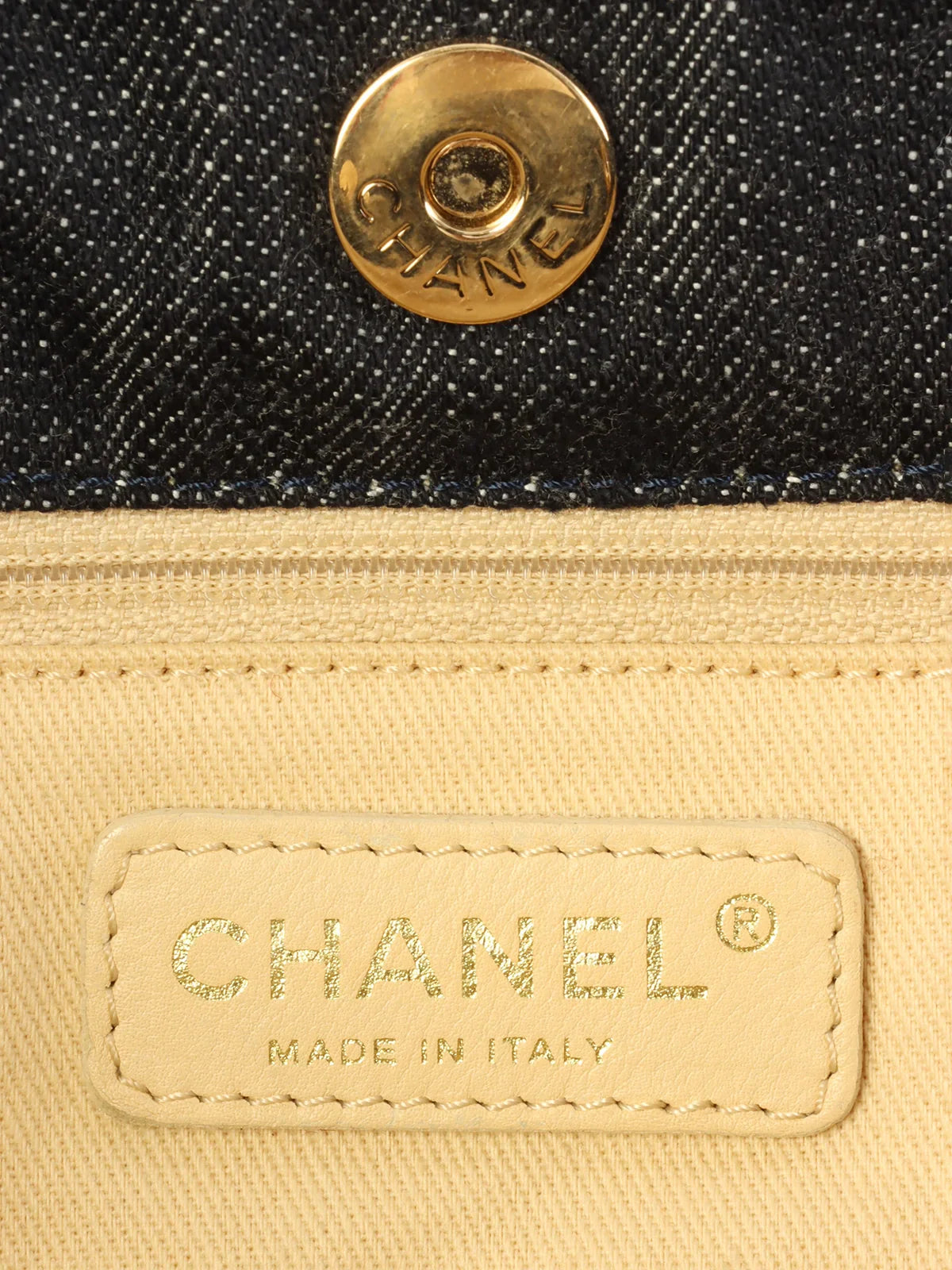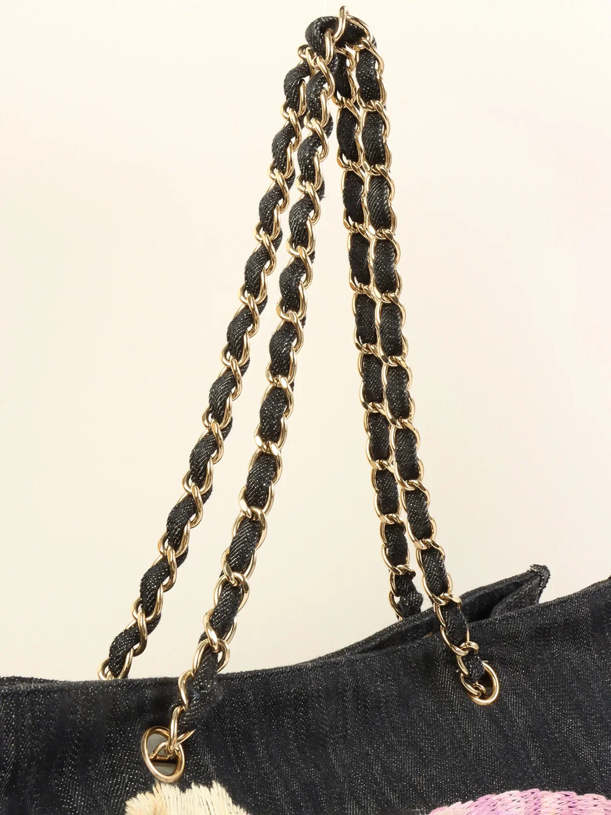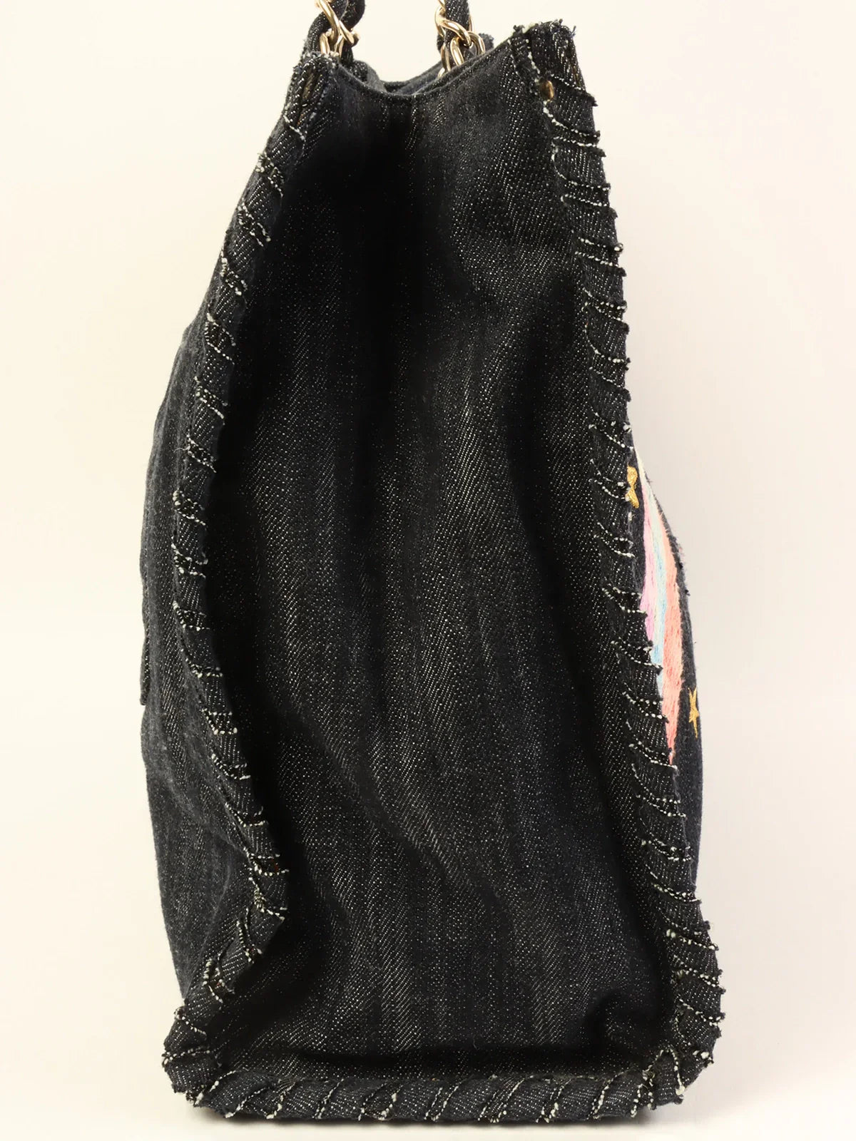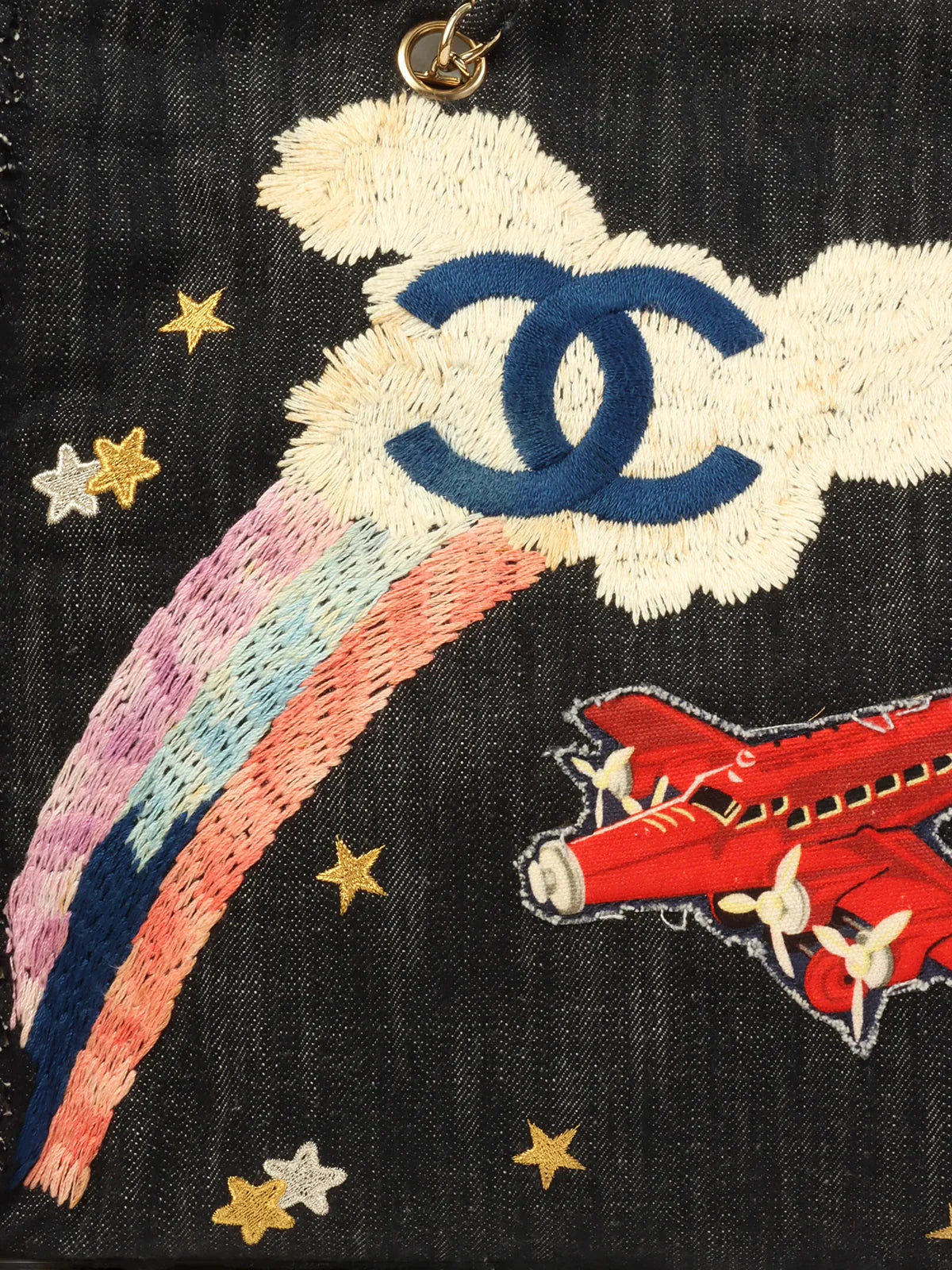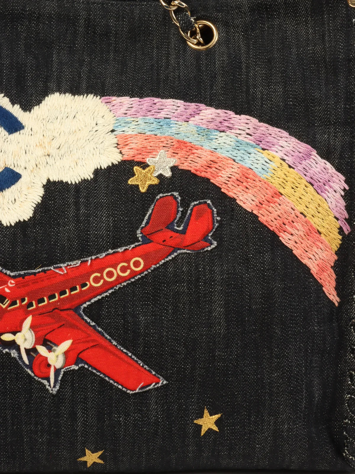 CHANEL Around 2005 Made Denim Airplane Cc Mark Embroidered Chain Tote Bag Indigo