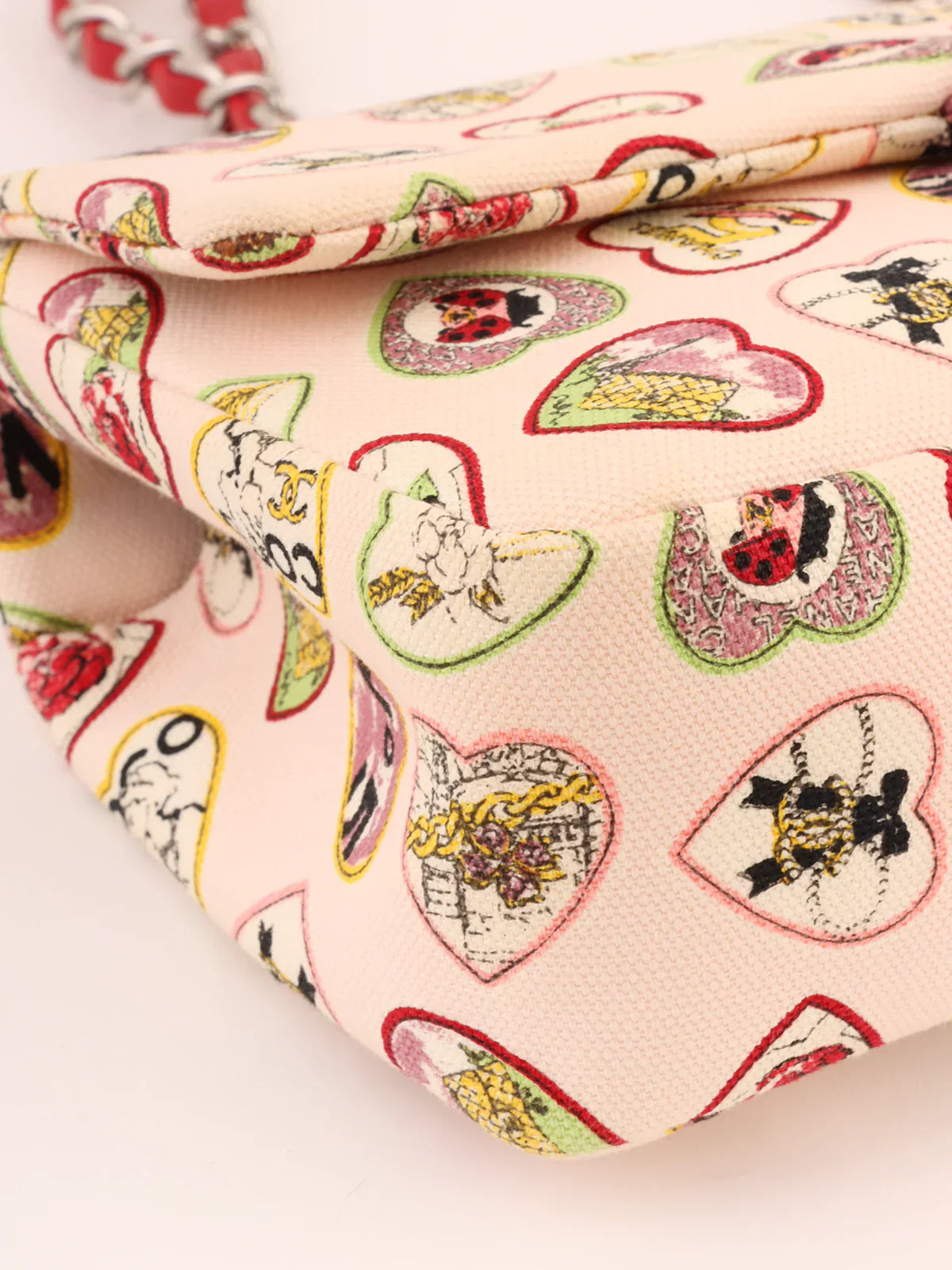 CHANEL Around 2005 Made Valentine Icon Pattern Turn-Lock Chain Bag Baby Pink/Multi