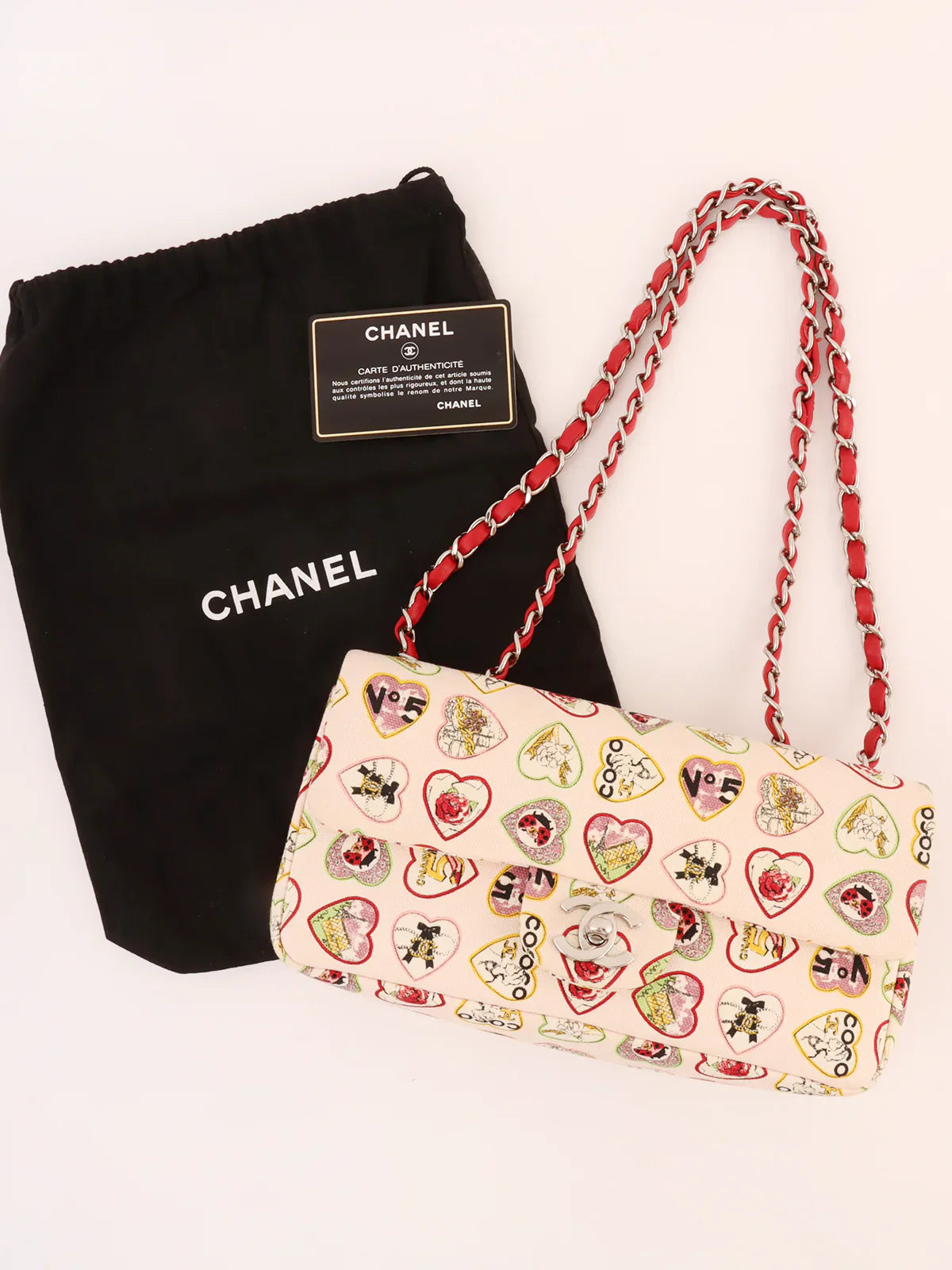 Chanel Around 2005 Made Valentine Icon Pattern Turn-Lock Chain Bag Baby Pink/Multi