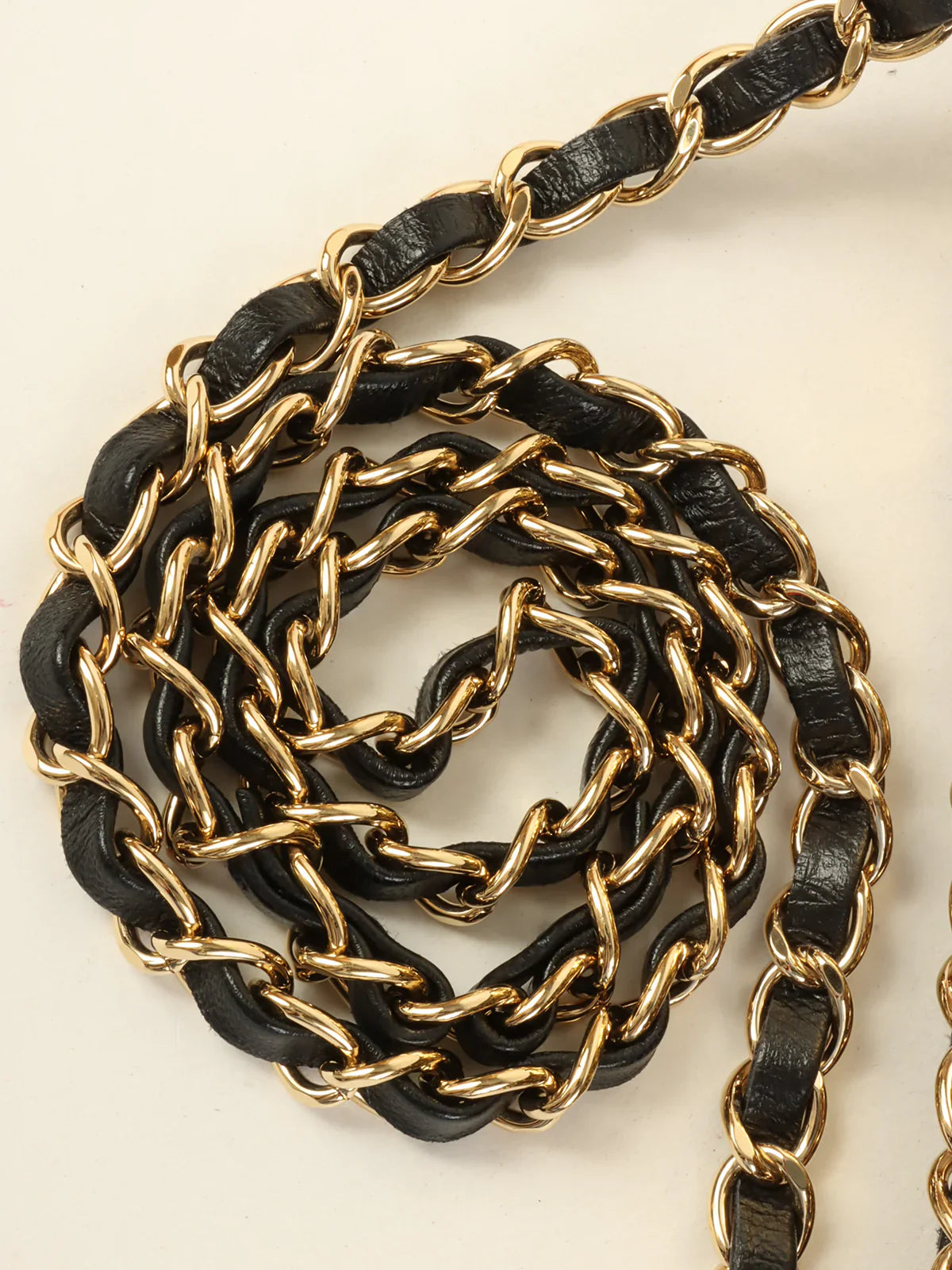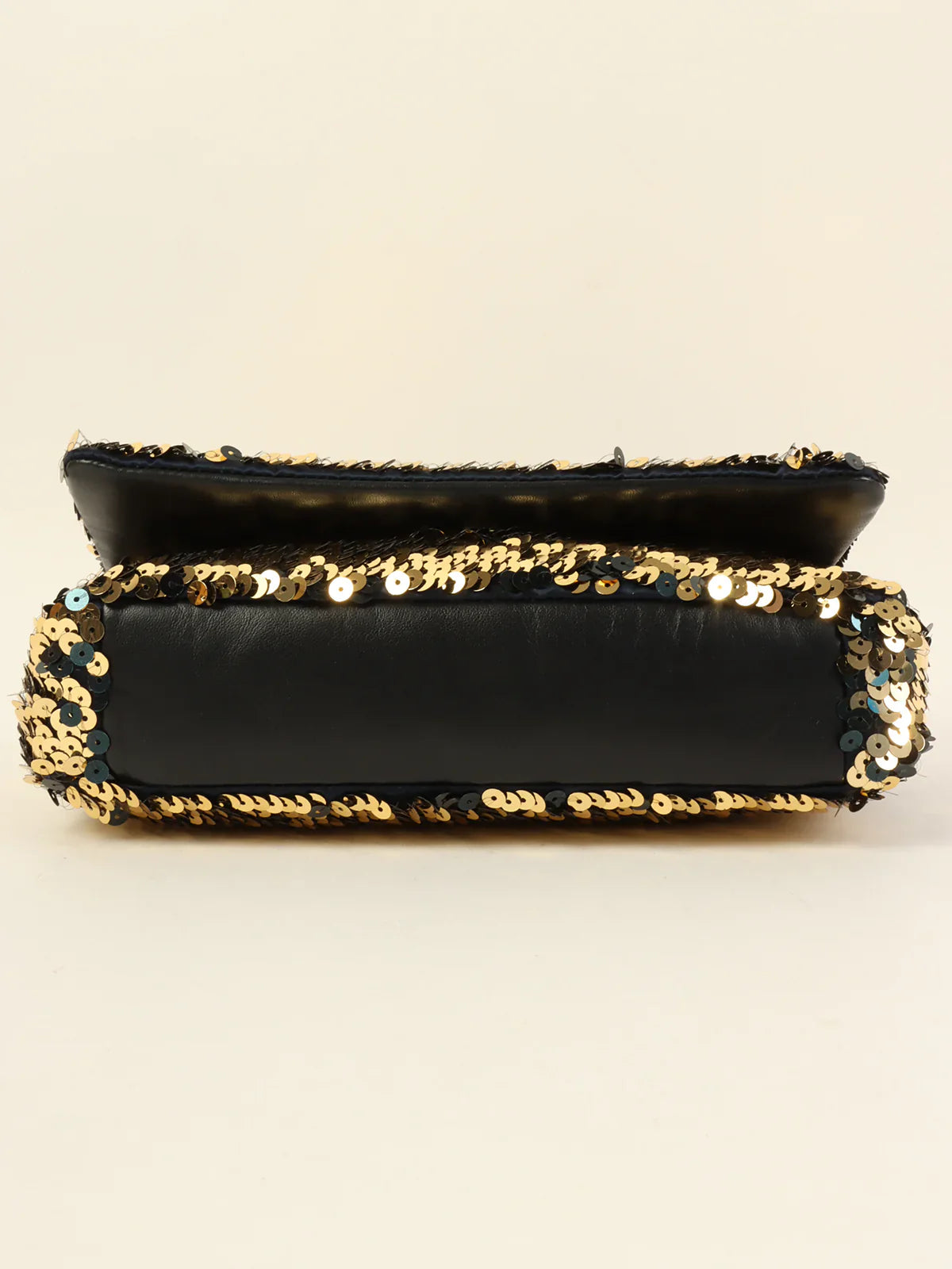 CHANEL Around 2008 Made Sequin Cc Mark Chain Bag Gold/Black