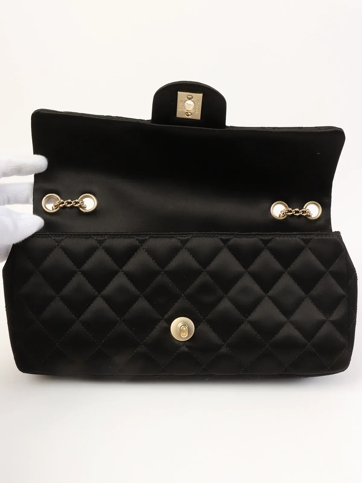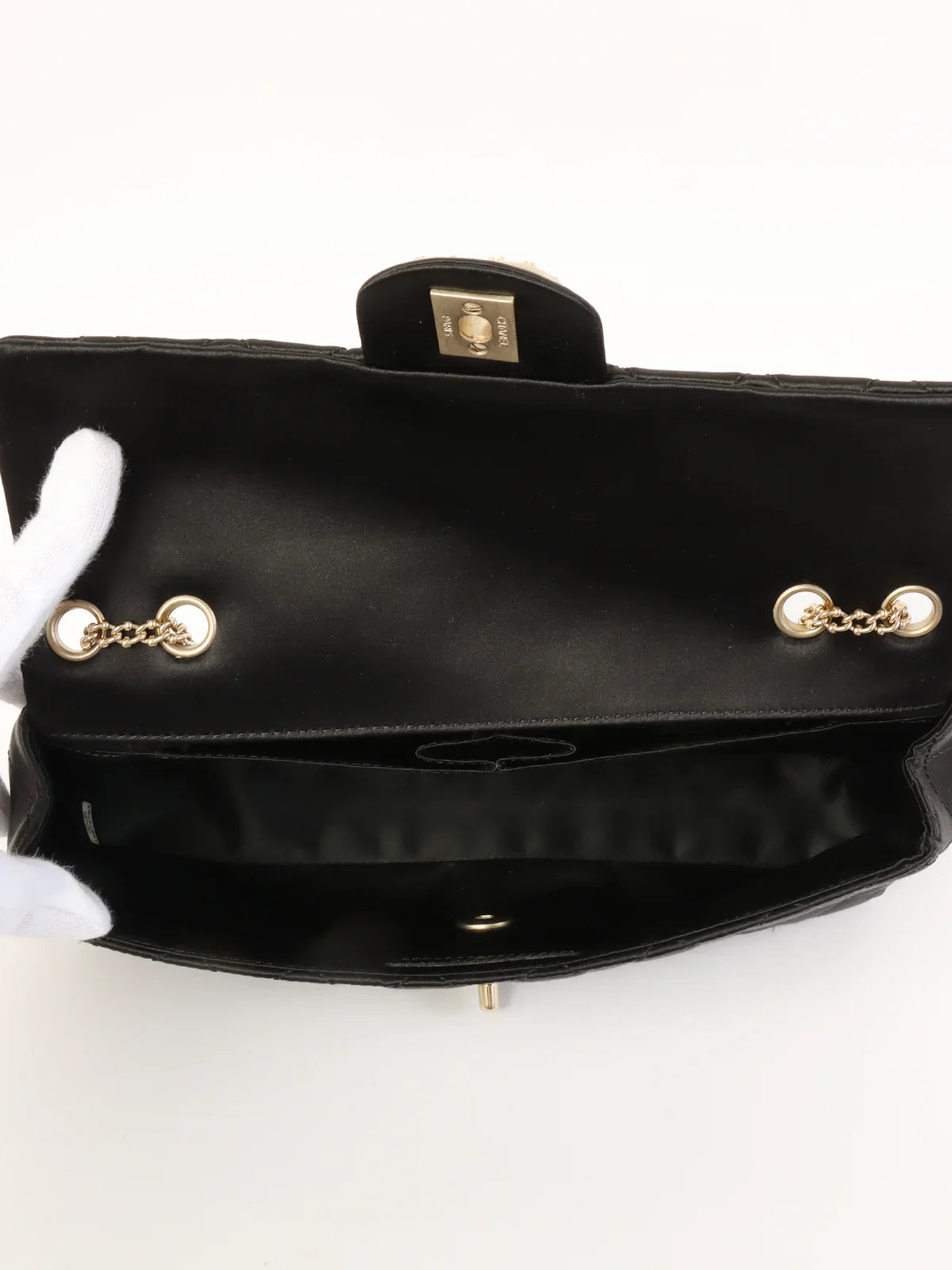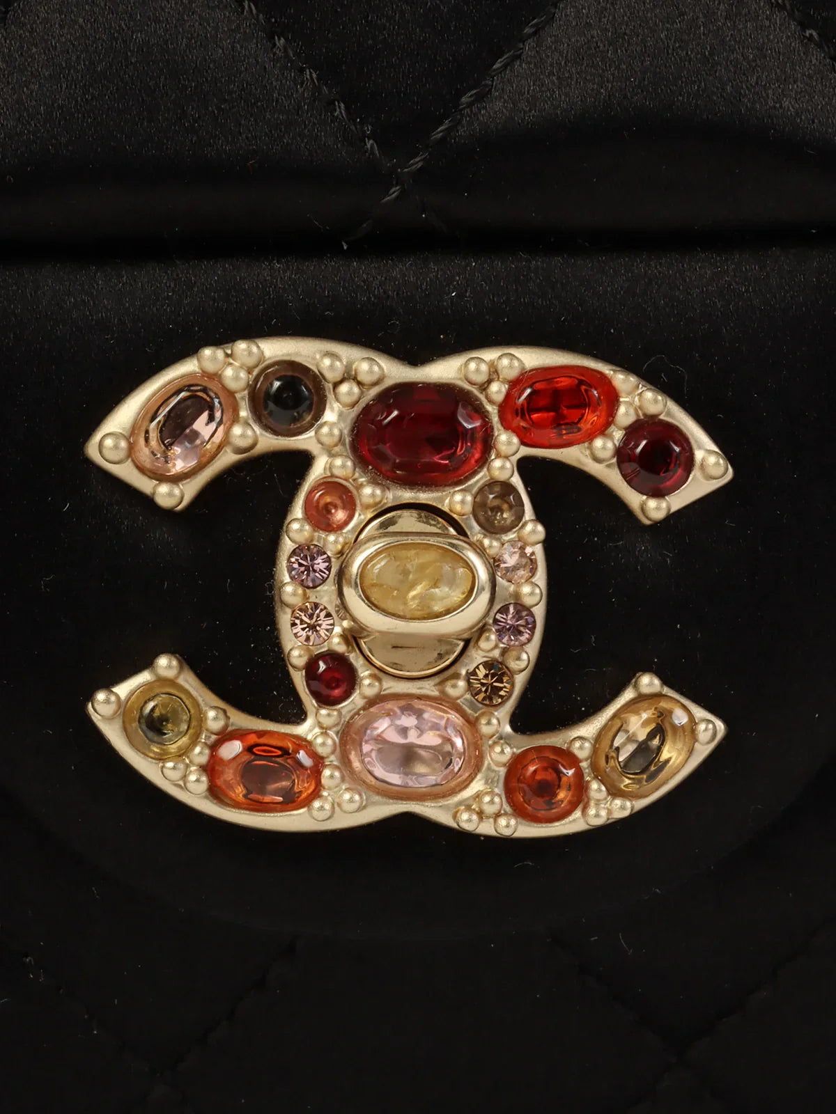 CHANEL Around 2008 Made Silk Satin Gripoix Turn-Lock Chain Bag Black/Gold/Multi