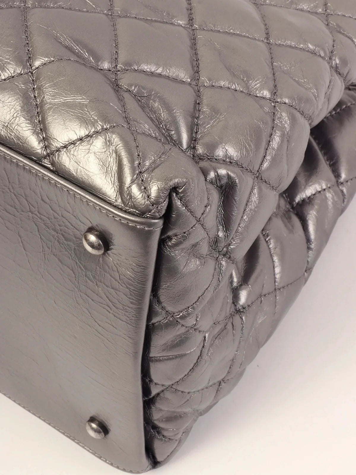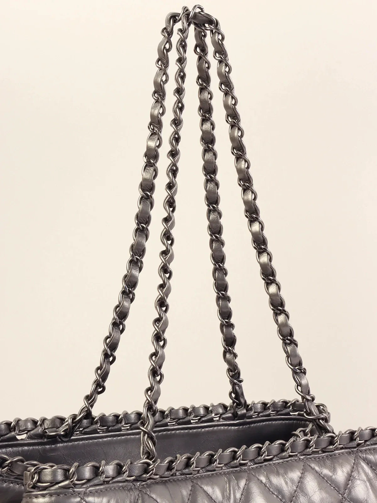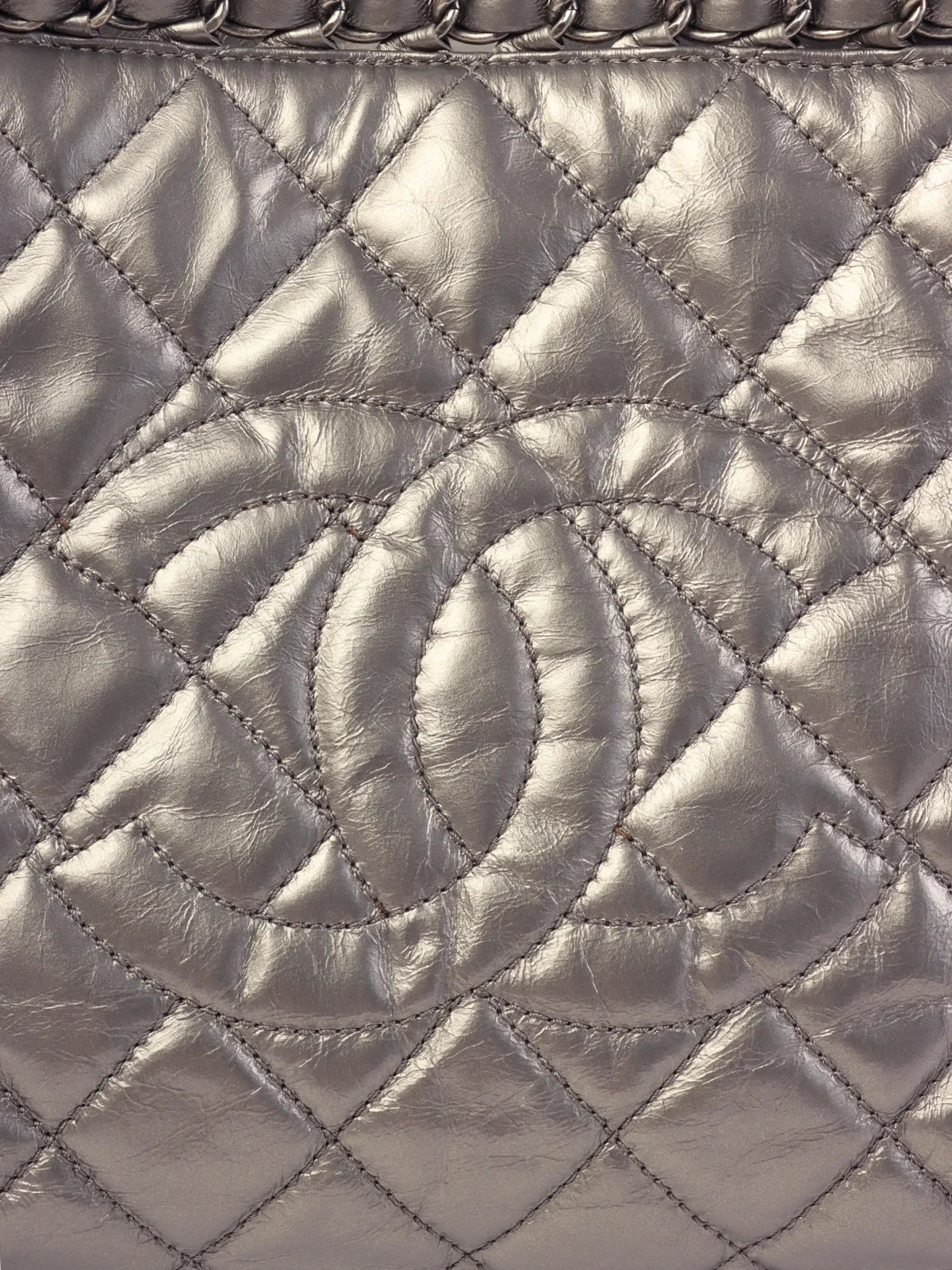 CHANEL Around 2010 Made Cc Mark Stitch Chain Tote Bag Silver