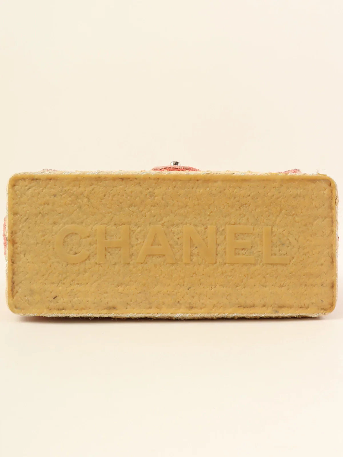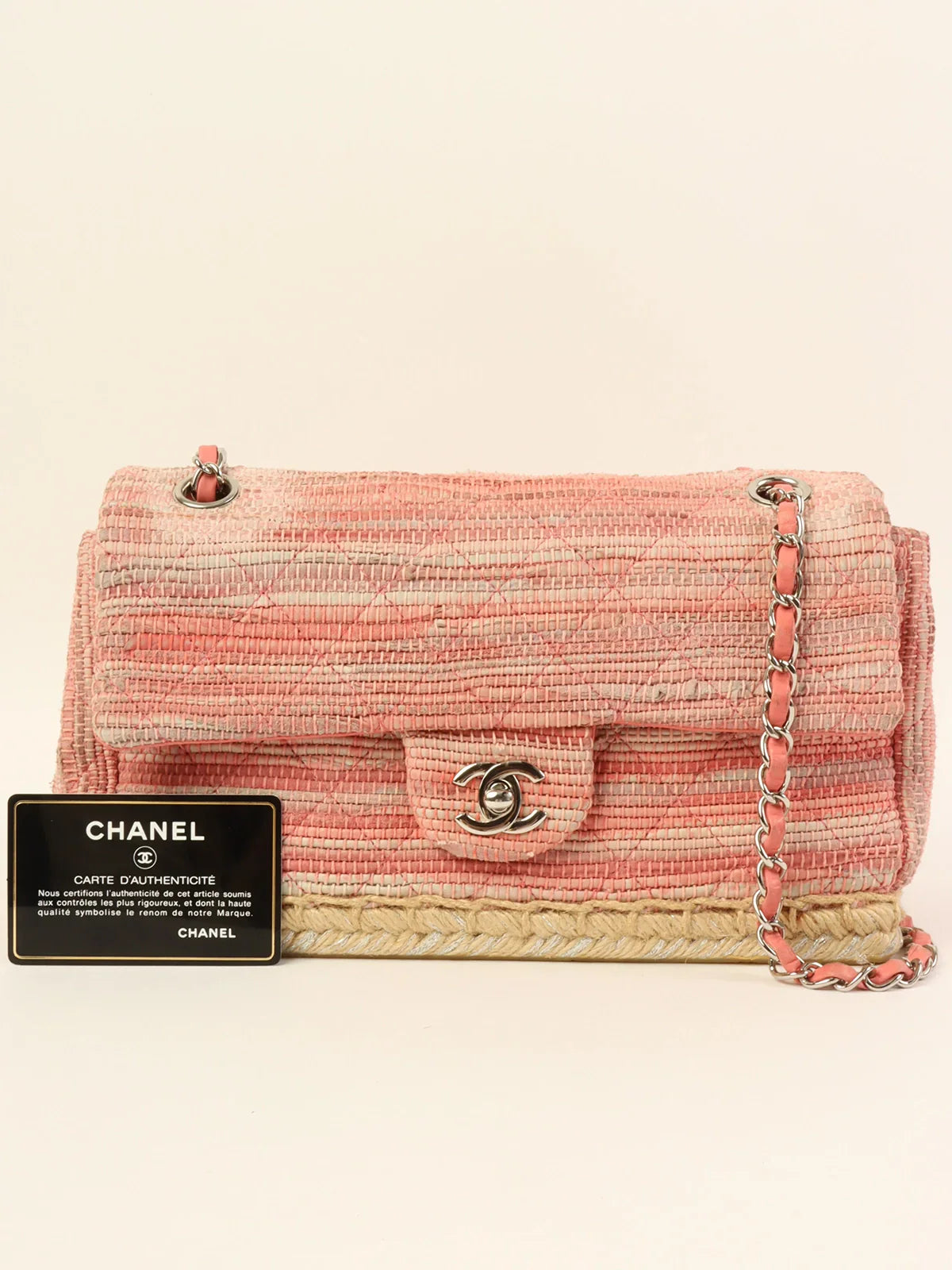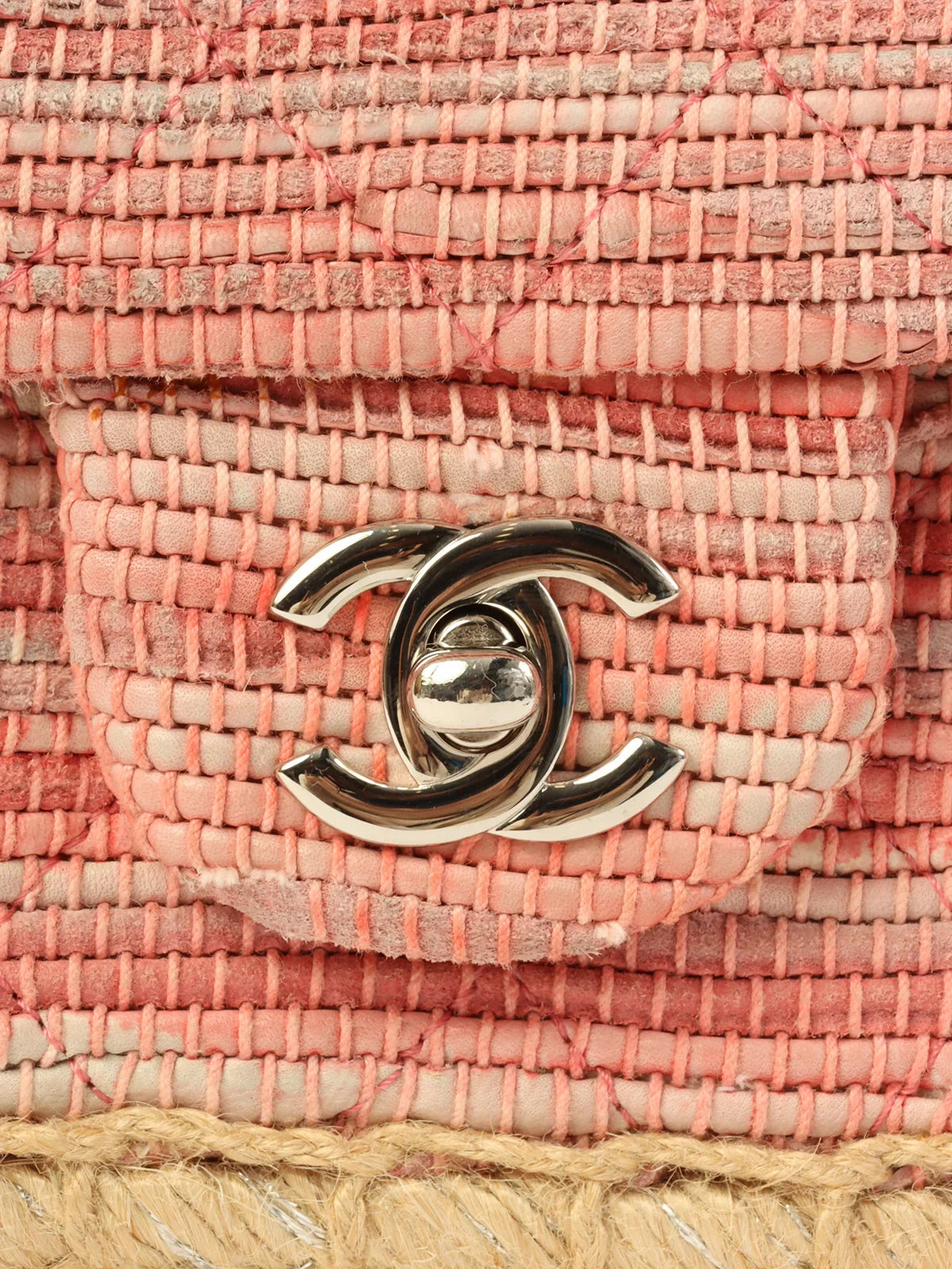 Chanel Around 2010 Made Linen Leather Combination Turn-Lock Chain Bag Pink/Beige