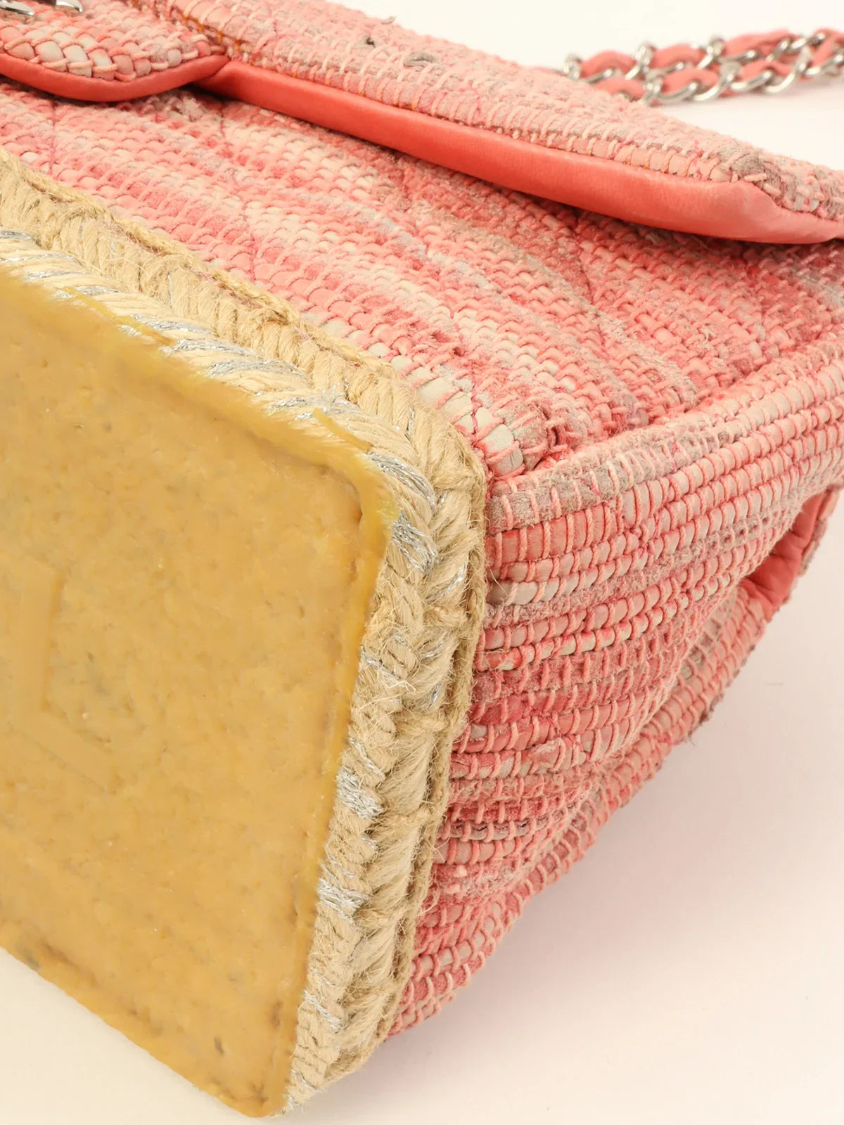 CHANEL Around 2010 Made Linen Leather Combination Turn-Lock Chain Bag Pink/Beige