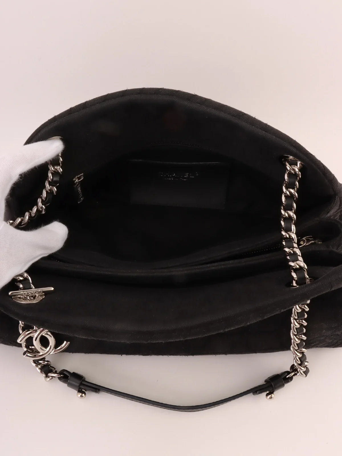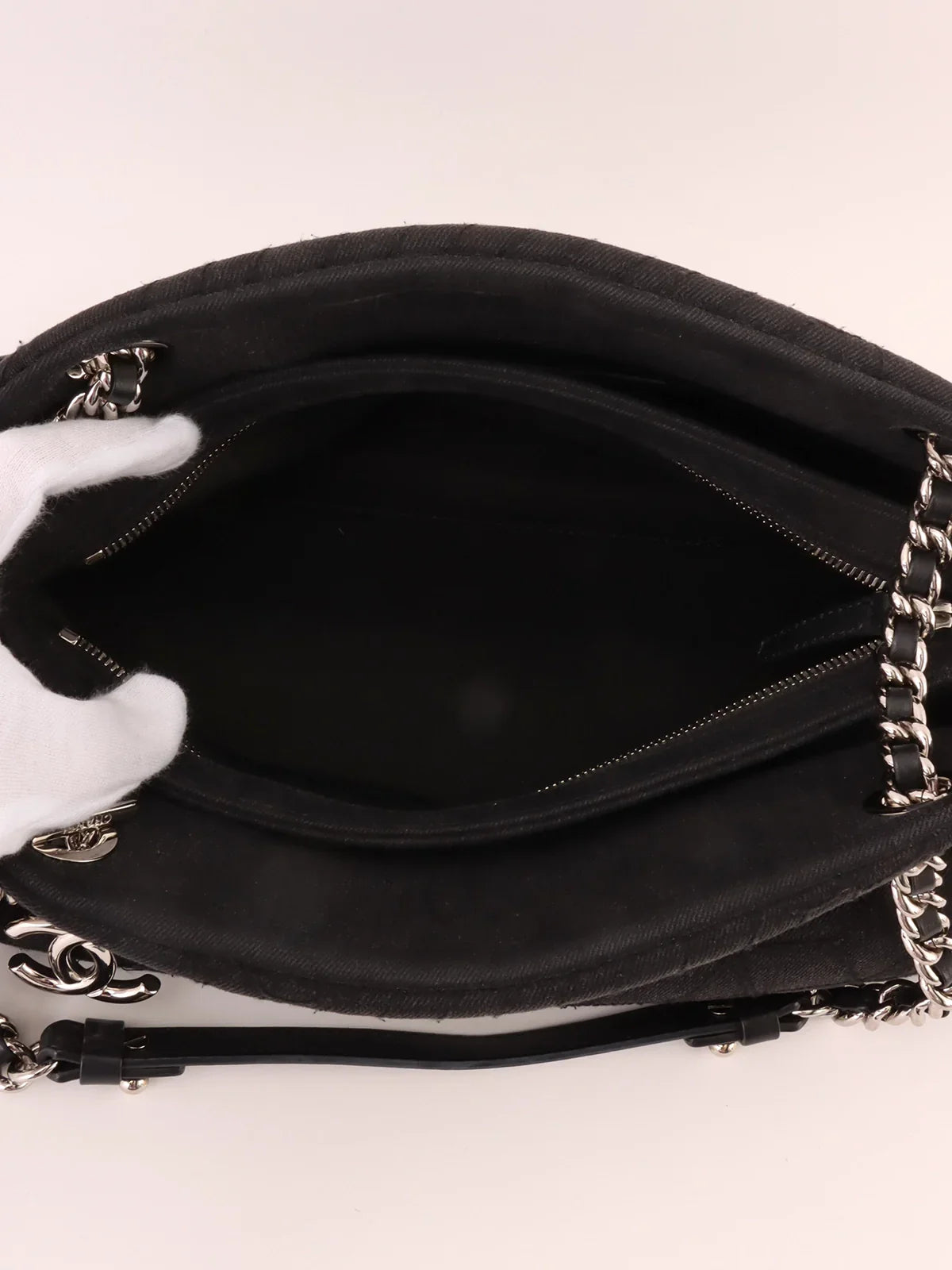 CHANEL Around 2012 Made Denim Camellia Stitch Cc Mark Charm Chain Shoulder Bag Black