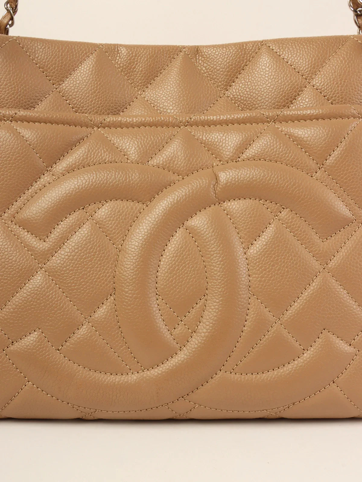CHANEL Around 2014 Made Caviar Skin Cc Mark Stitch Chain Tote Bag Beige