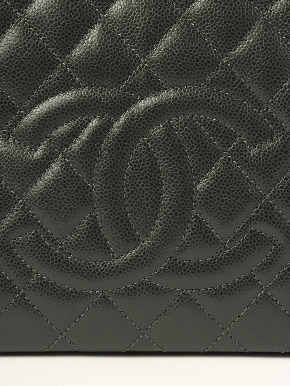 CHANEL Around 2014 Made Caviar Skin Cc Mark Stitch Chain Tote Bag Charcoal Grey