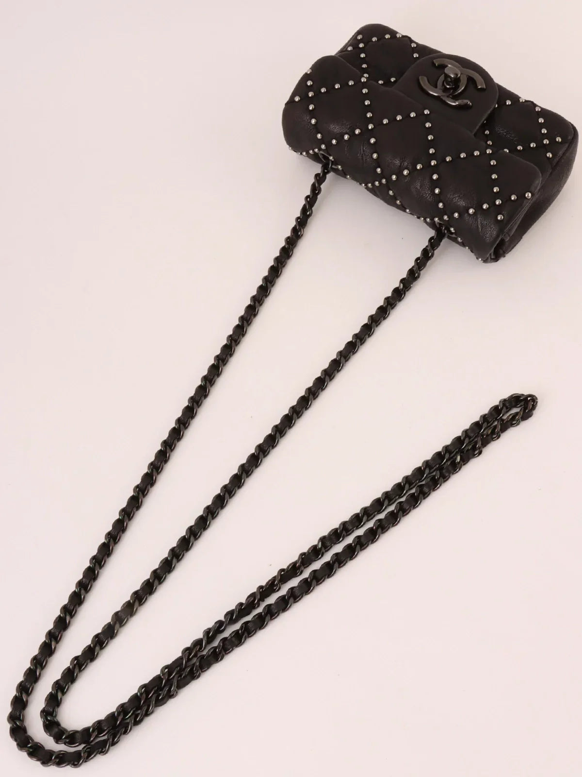CHANEL Around 2014 Made Studs Turn-Lock Chain Bag Mini Black