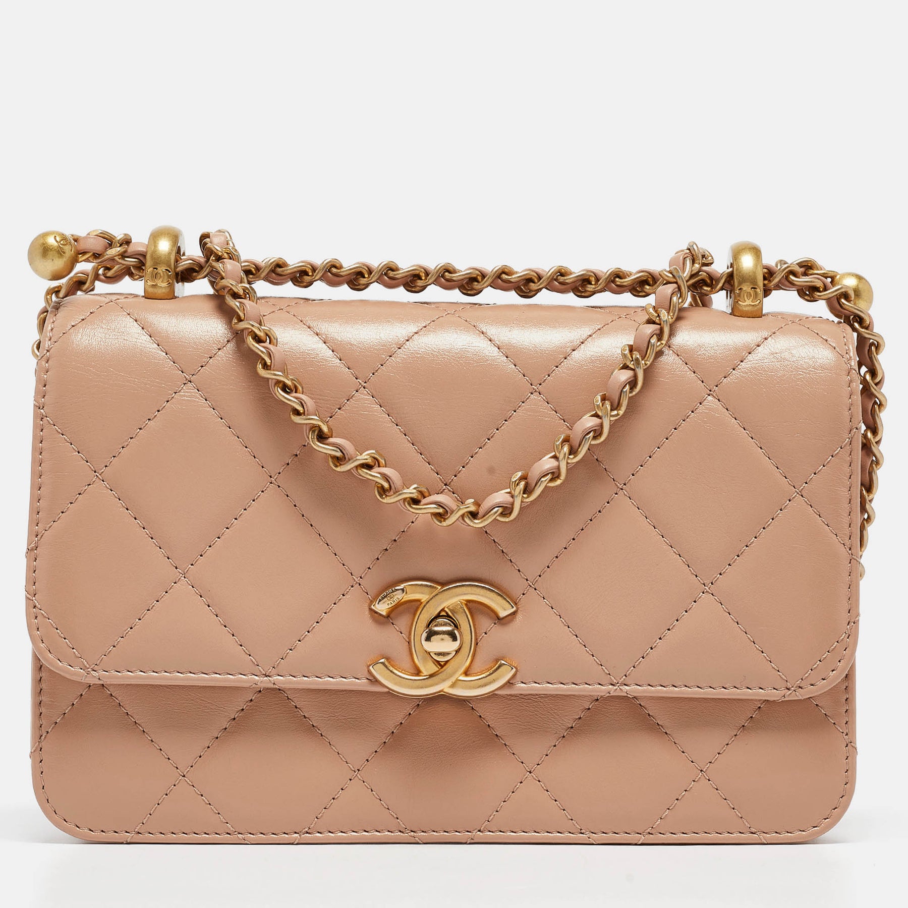 CHANEL Beige Quilted Leather Perfect Fit New Bag