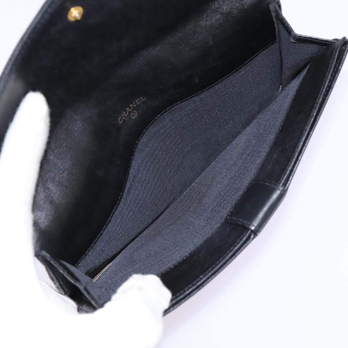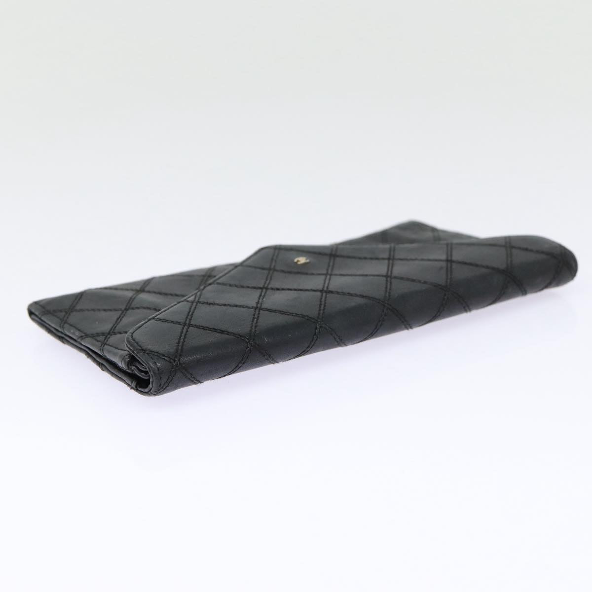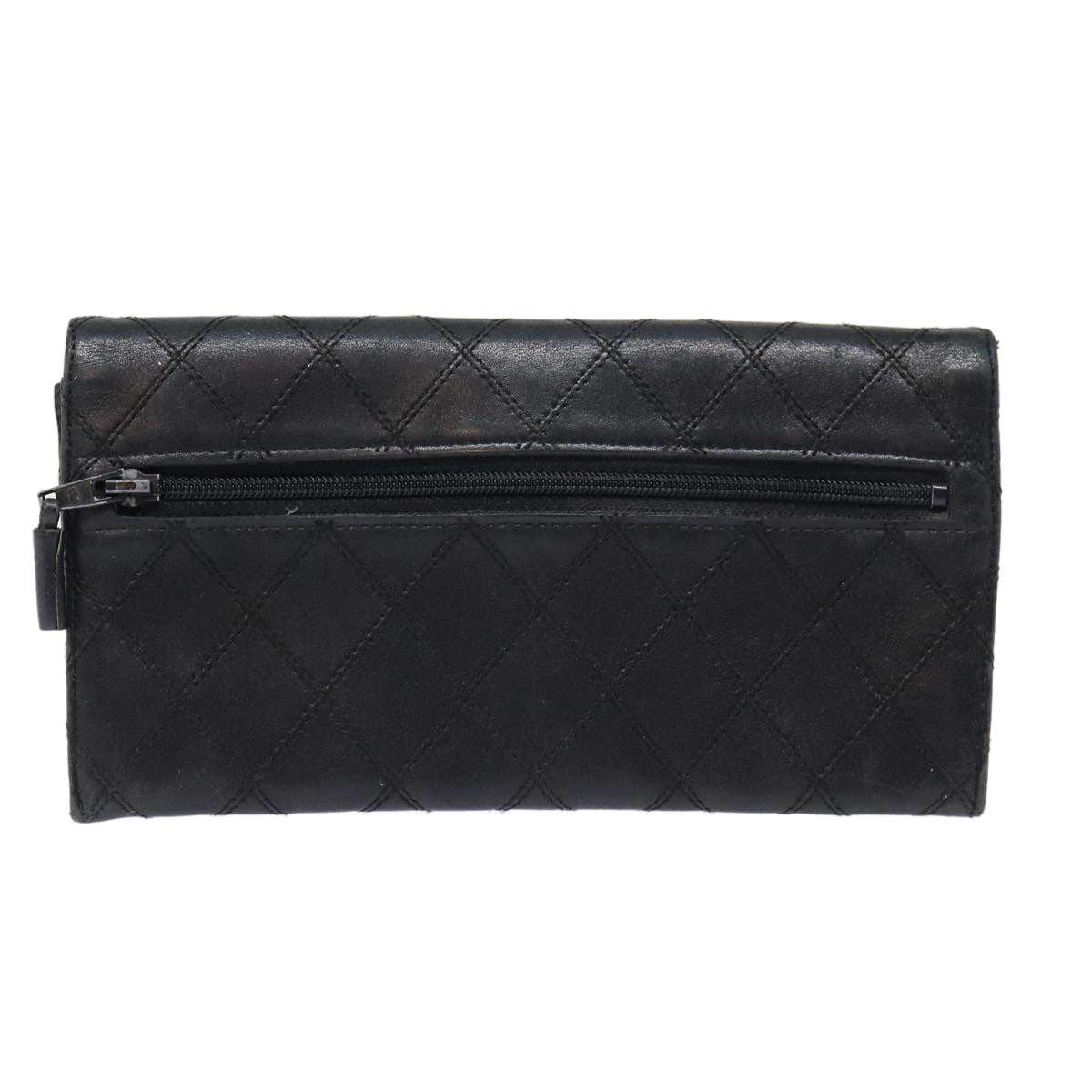 CHANEL Bicolore Wallet Leather Black Gold CC Auth bs17489