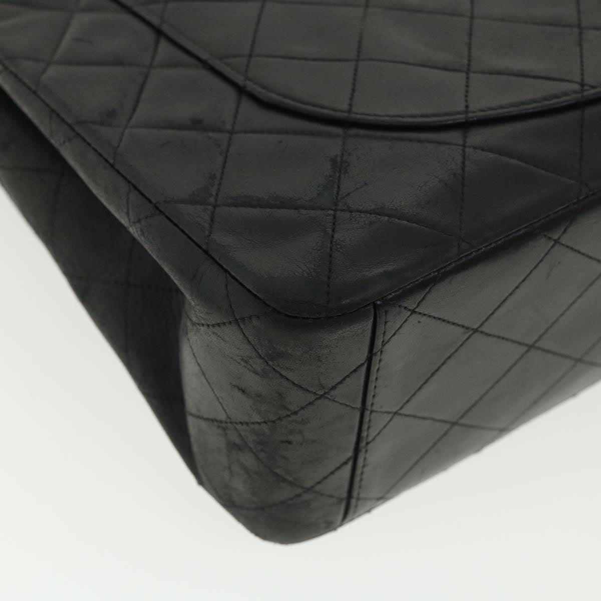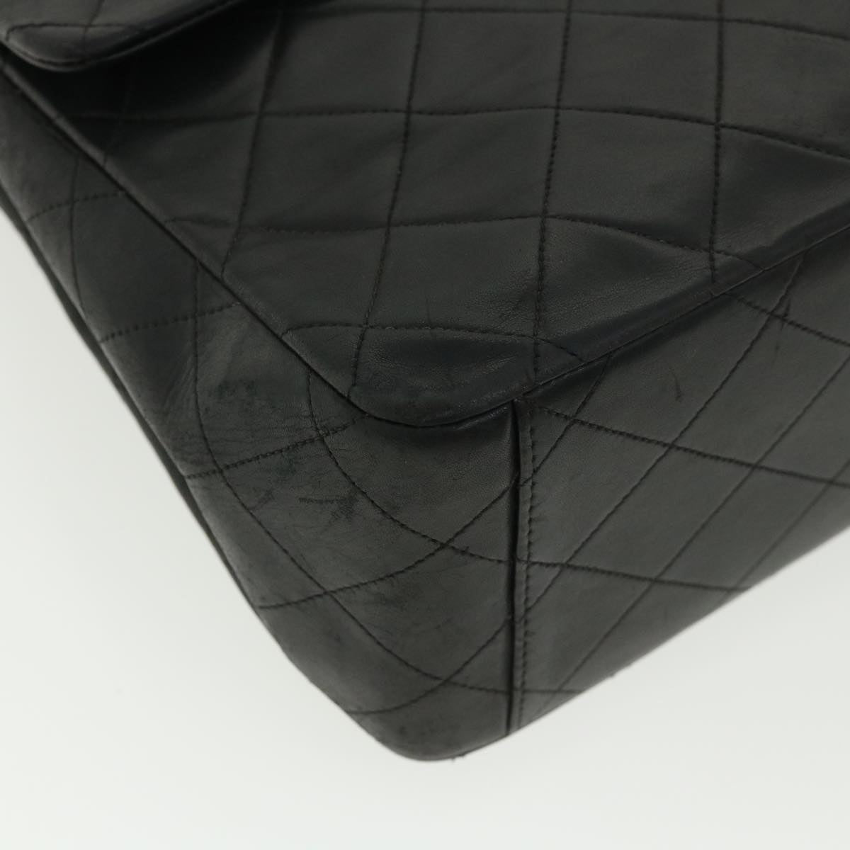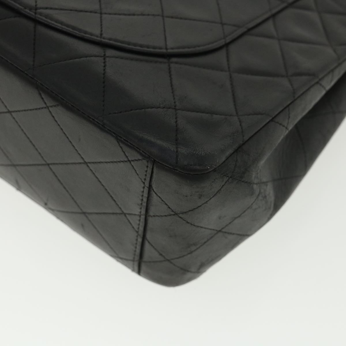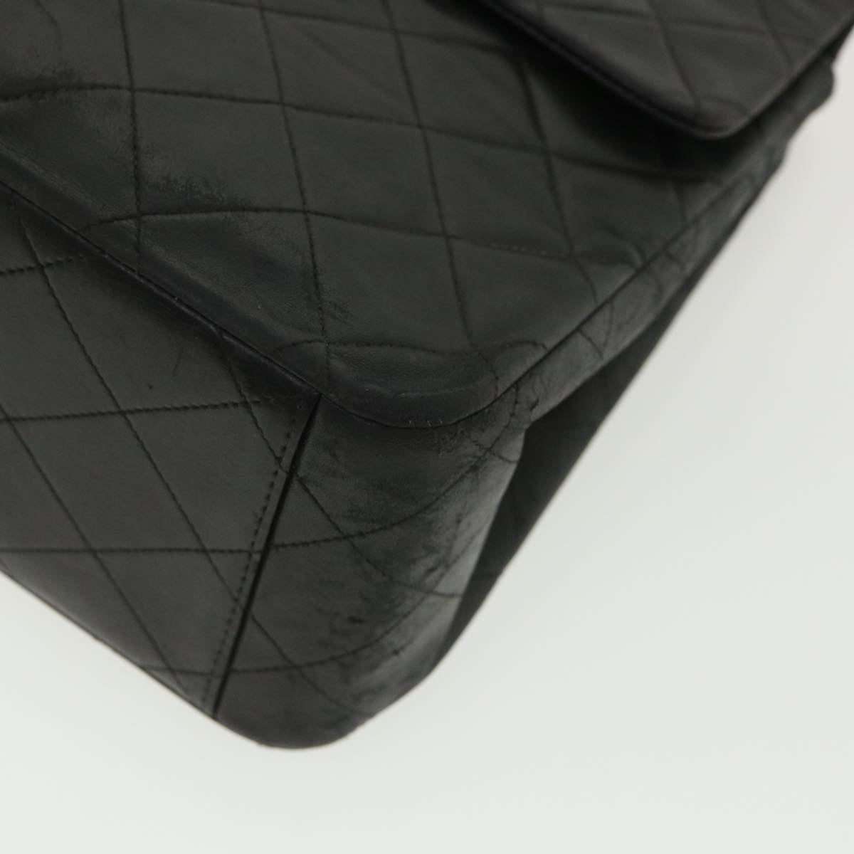 CHANEL Big Matelasse Double Chain Shoulder Bag Lamb Skin Black CC Auth bs3702