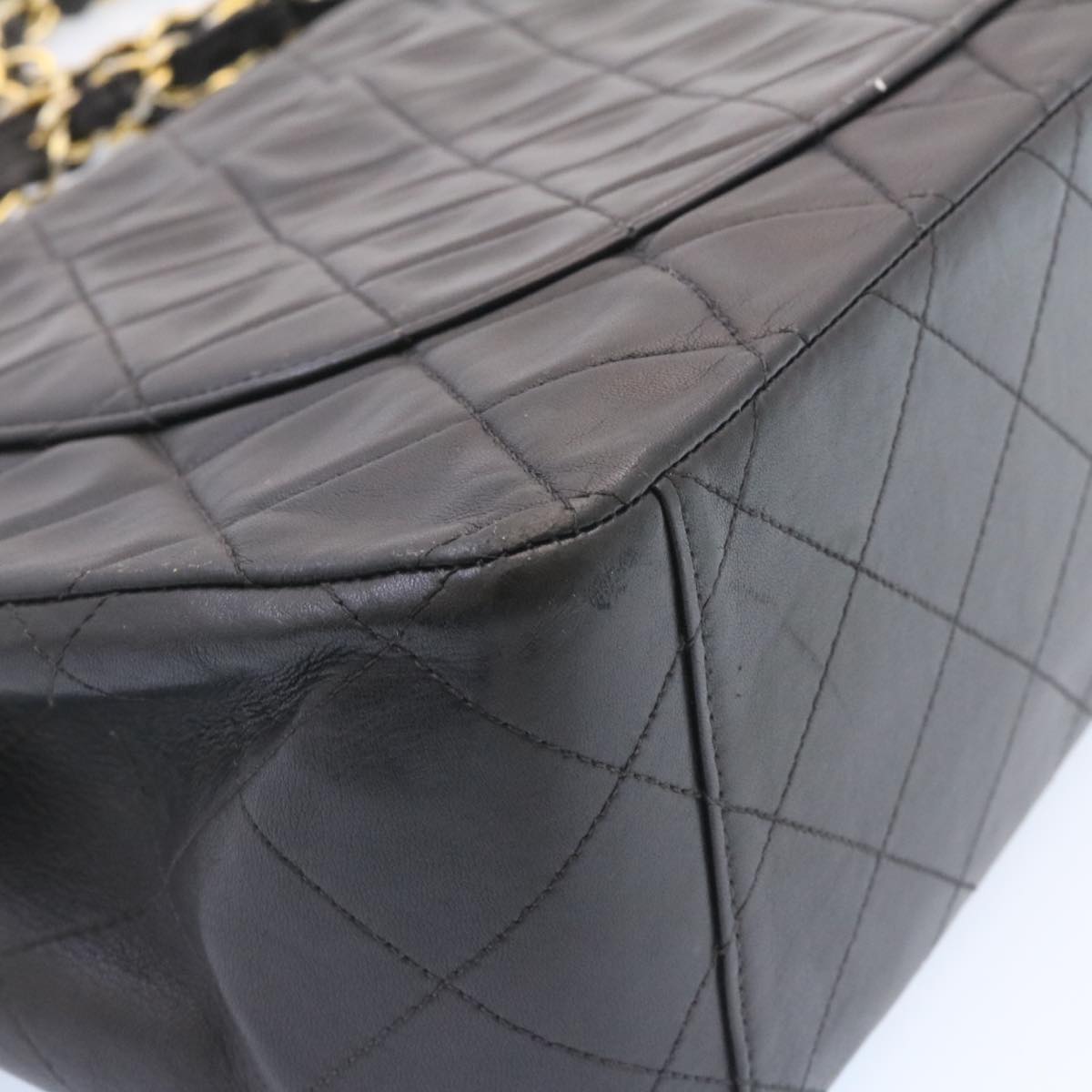 CHANEL Big Matelasse New Chain Shoulder Bag Lamb Skin Black Gold Auth am1276gA