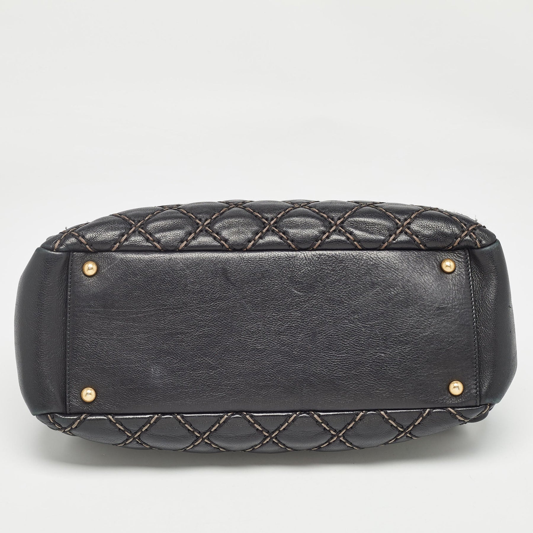 CHANEL Black/Beige Quilted Leather Paris Dallas Chic Stitch Bag