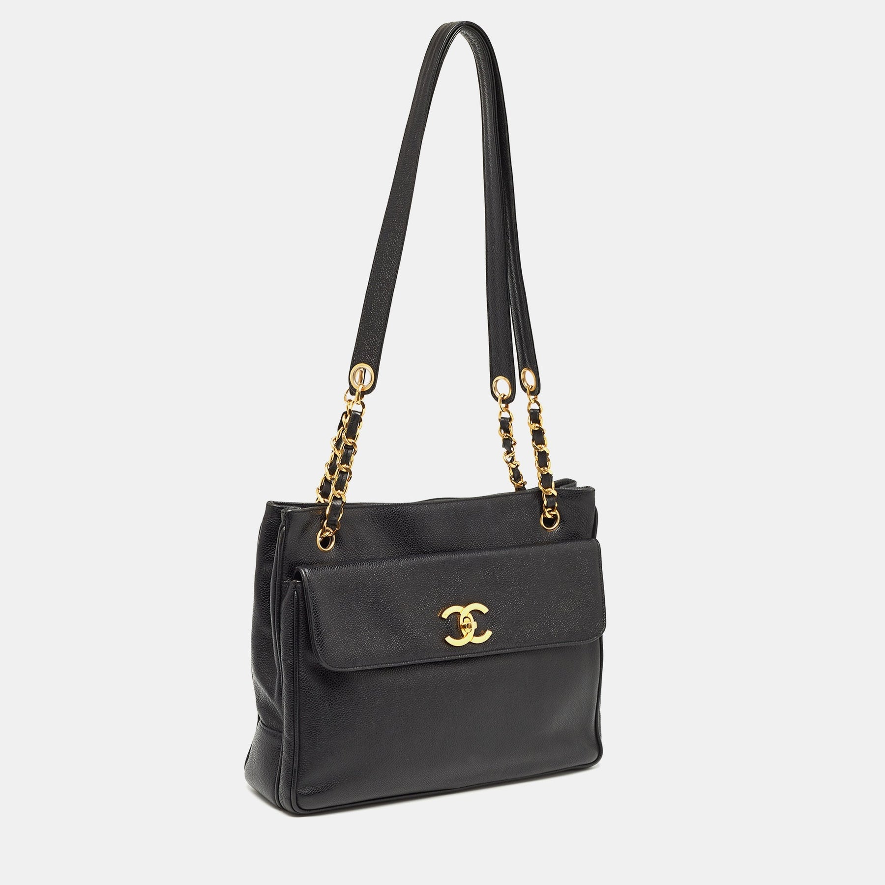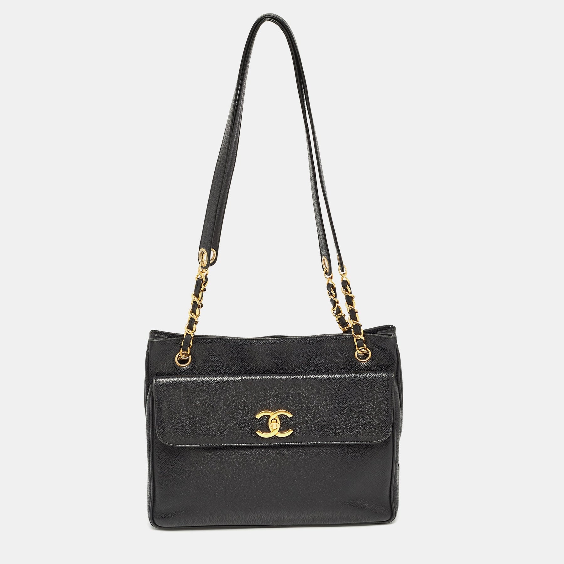 CHANEL Black Caviar Leather Classic Pocket Shoulder Bag