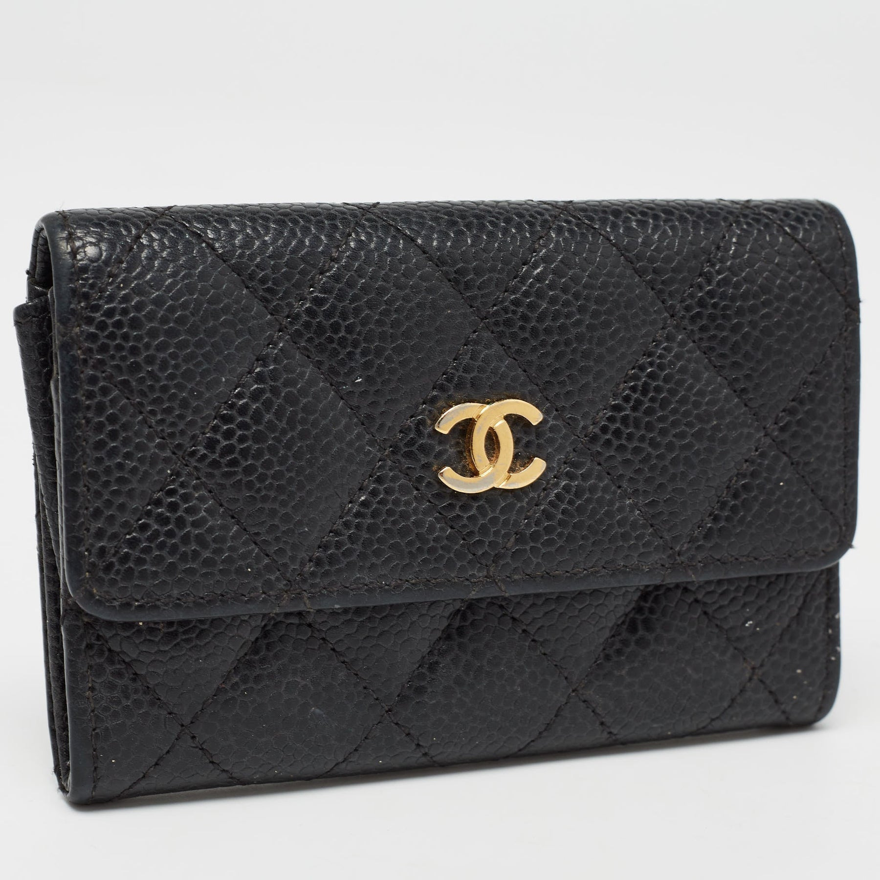 CHANEL Black Caviar Quilted Leather CC New Card Case