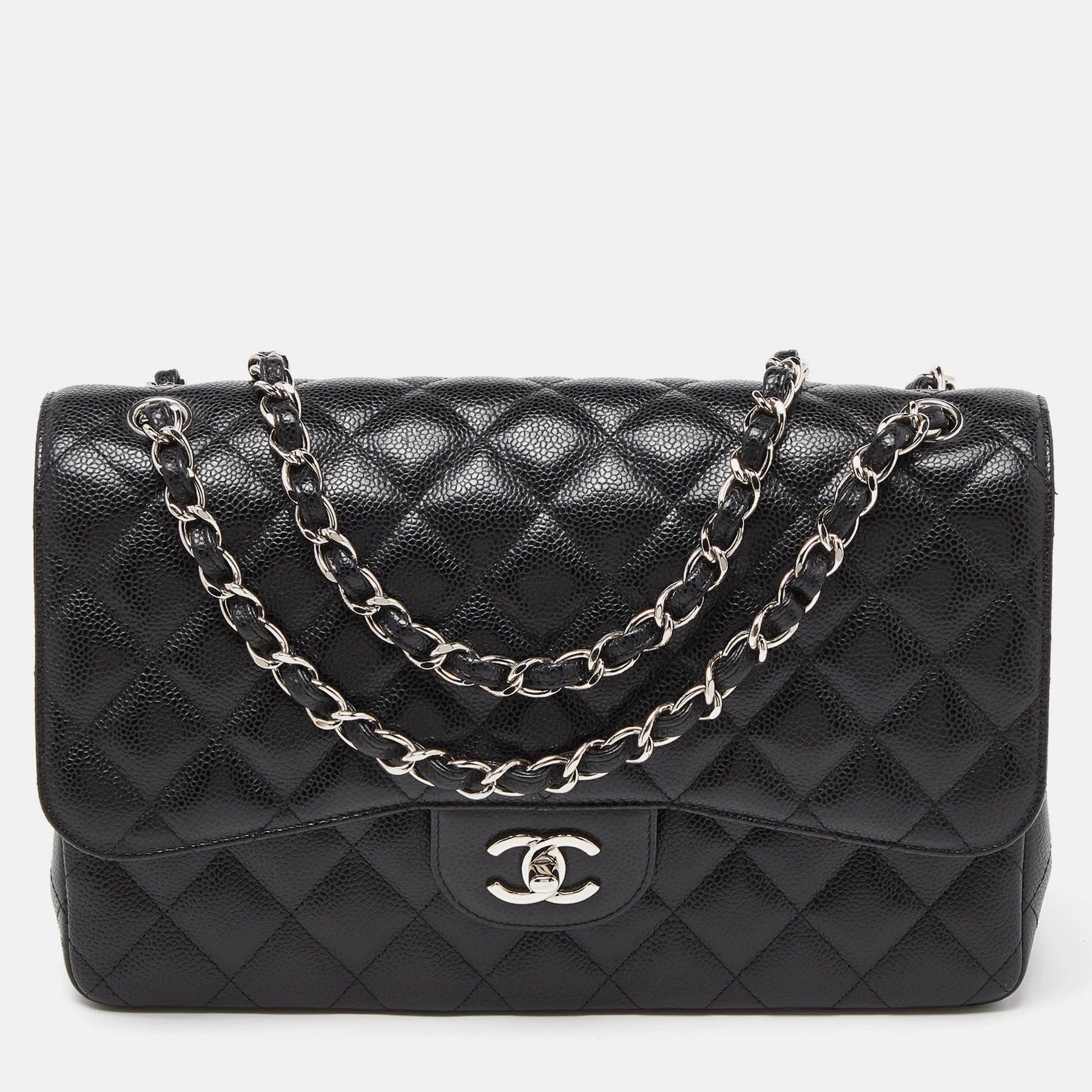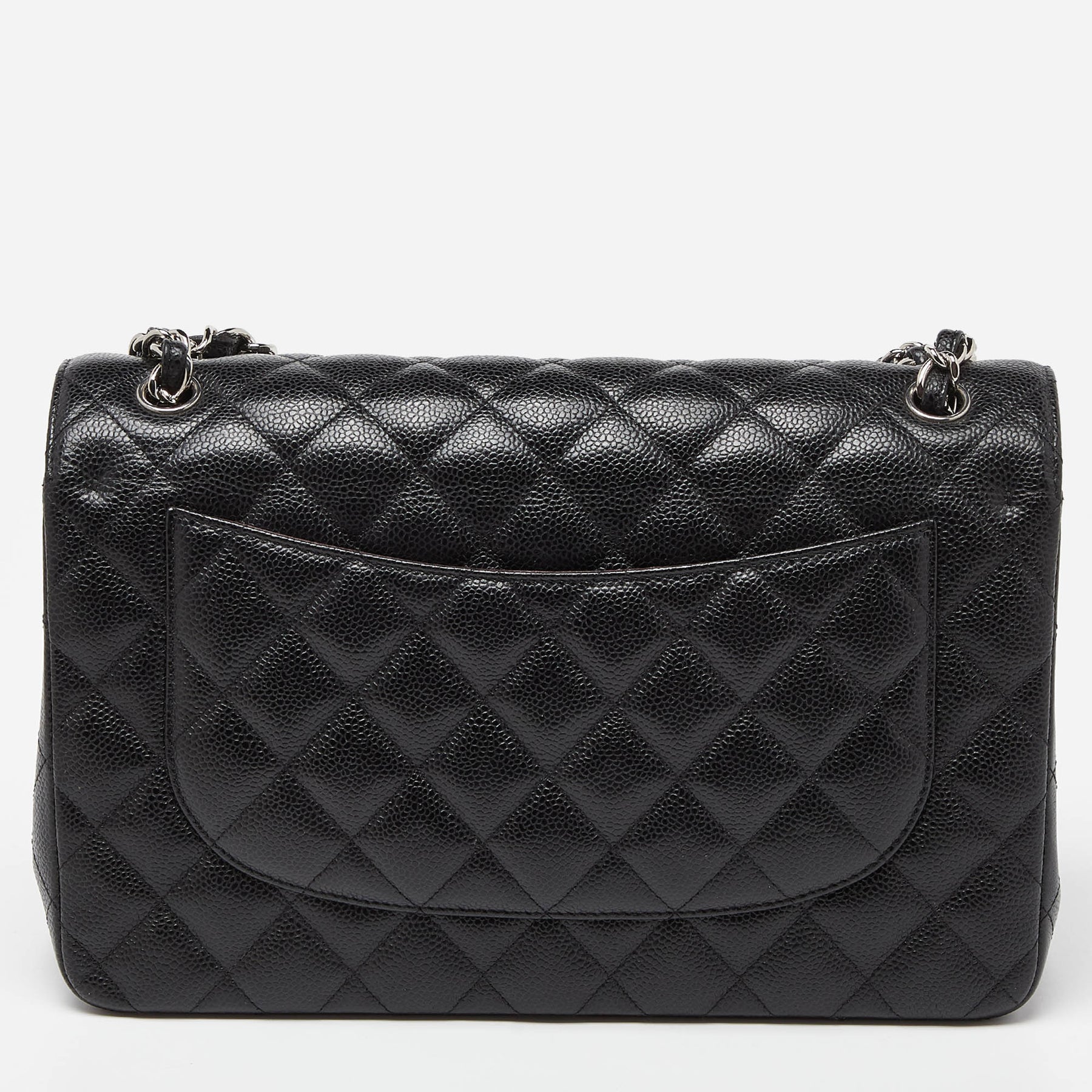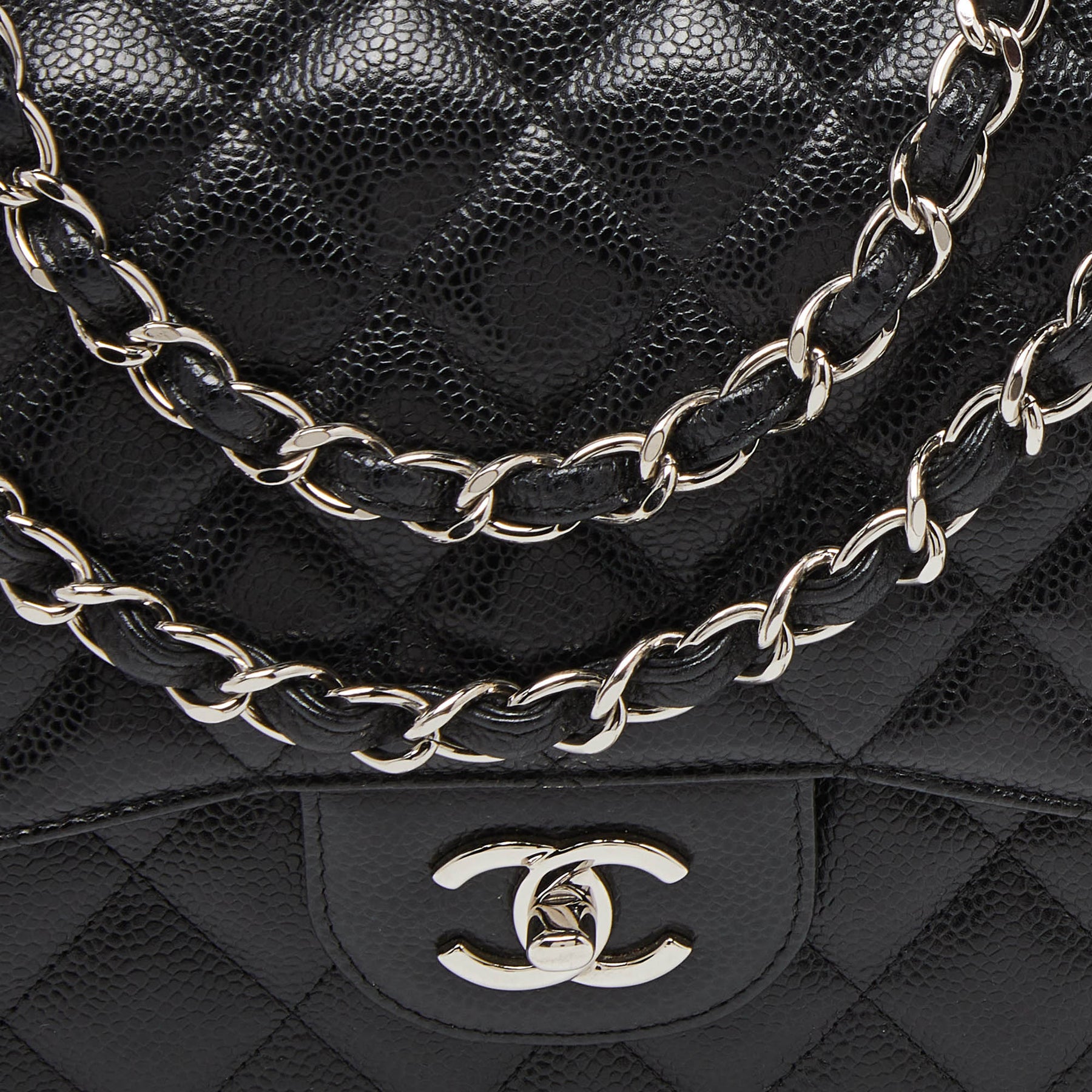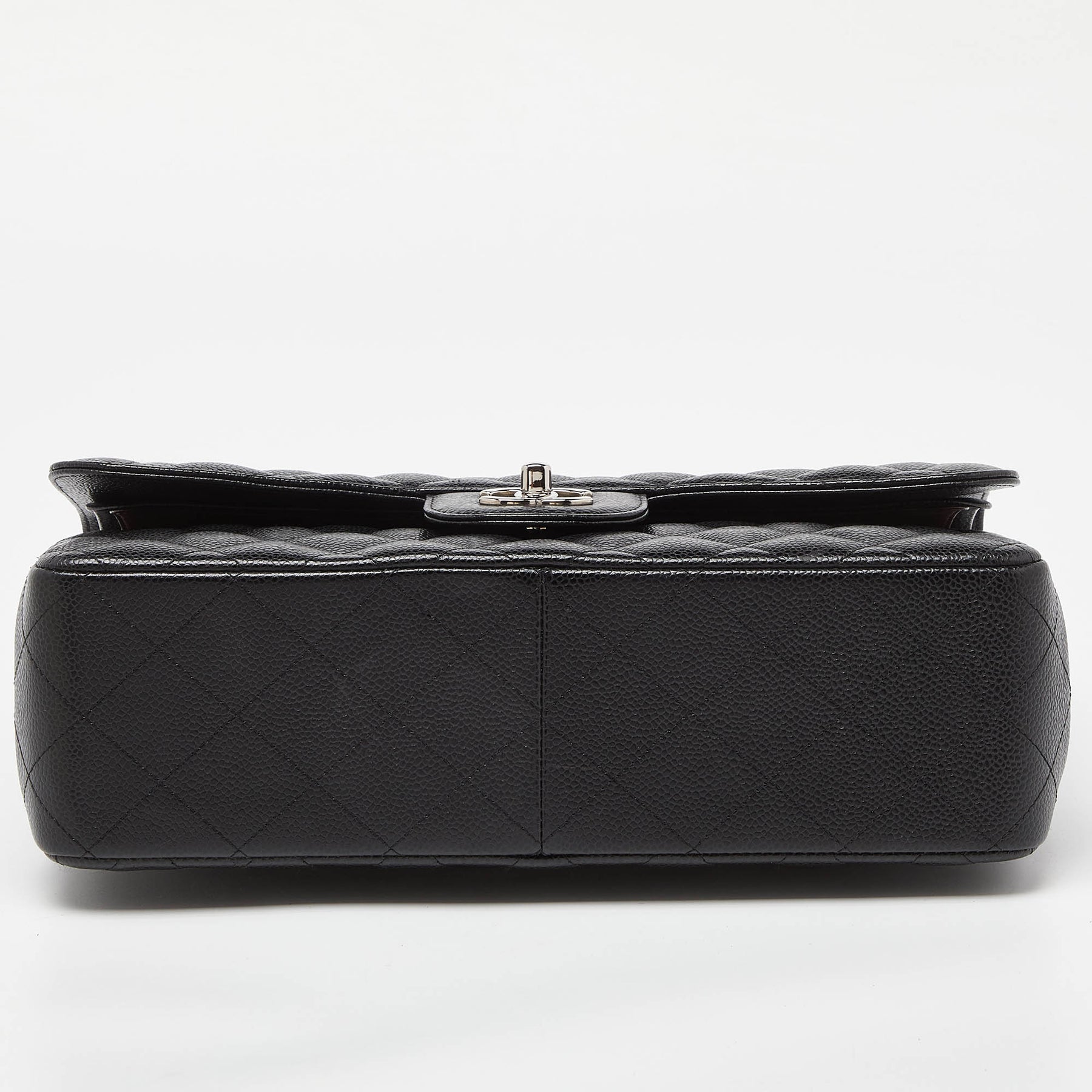 CHANEL Black Caviar Quilted Leather Jumbo Classic Double New Bag