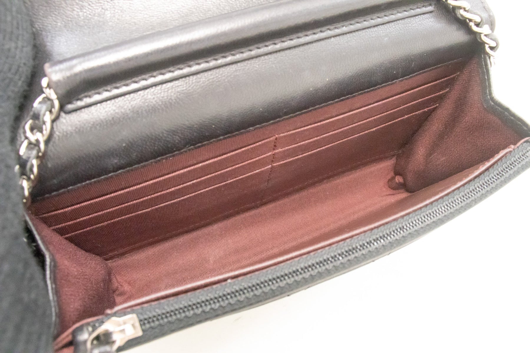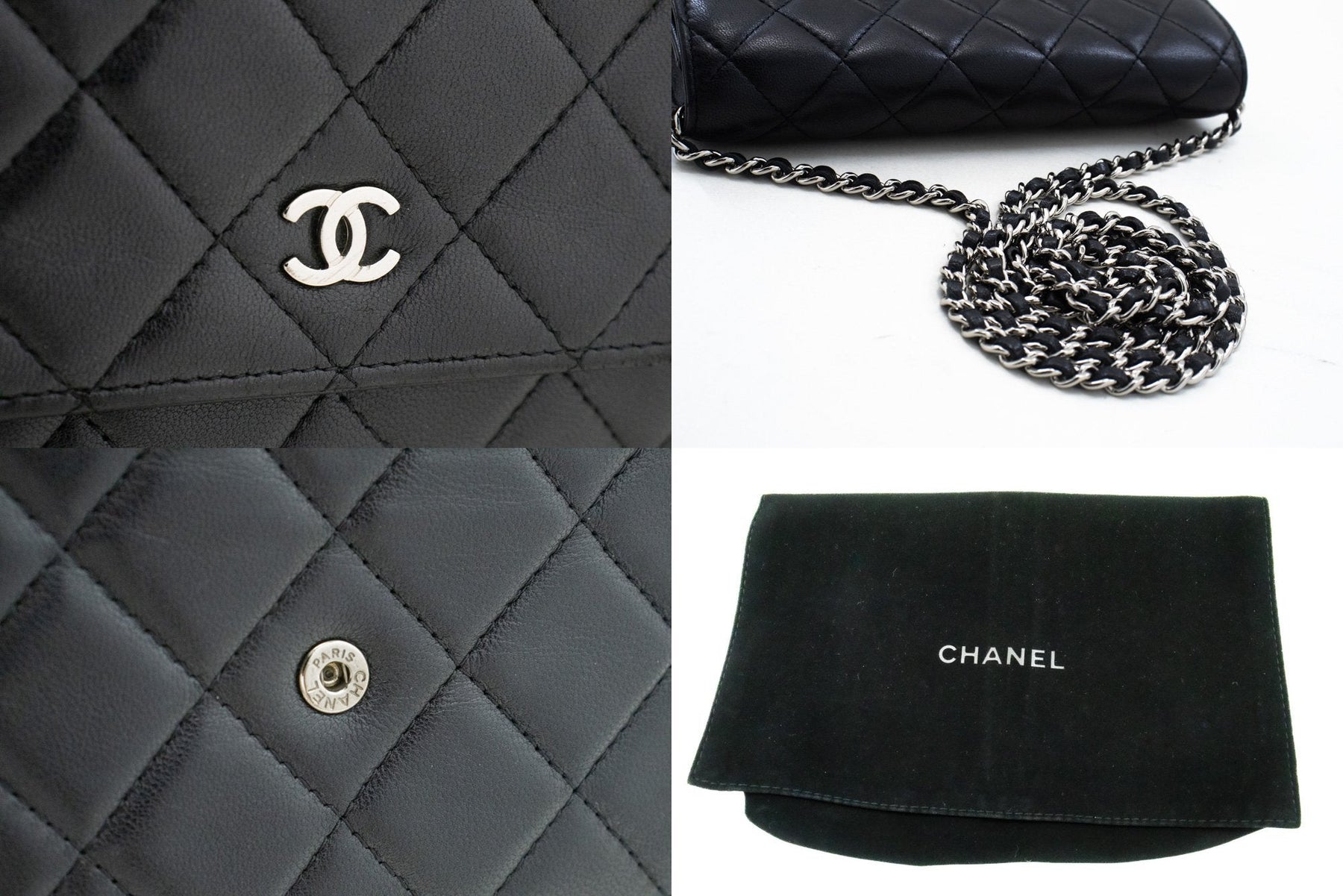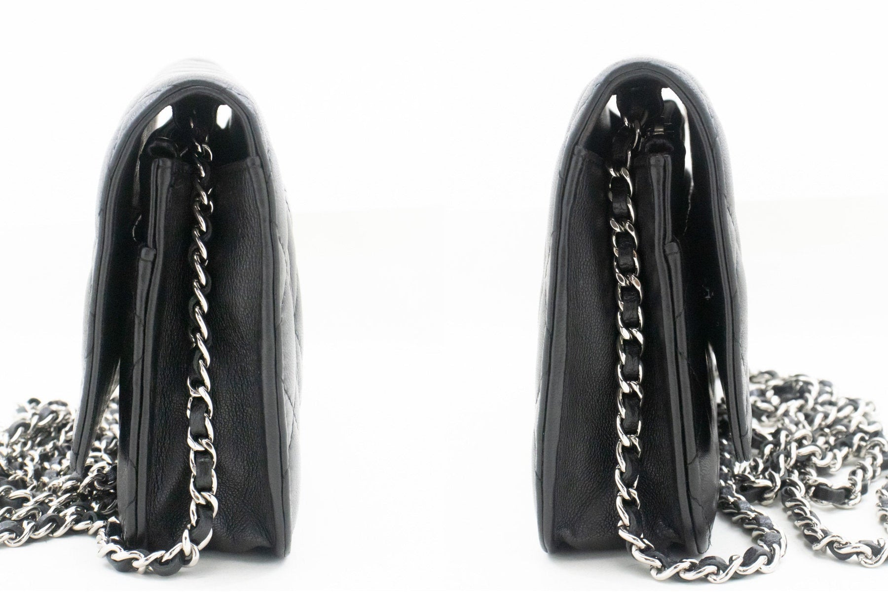 An CHANEL Black Classic Wallet On Chain WOC Shoulder Bag made of black Lambskin Silver.