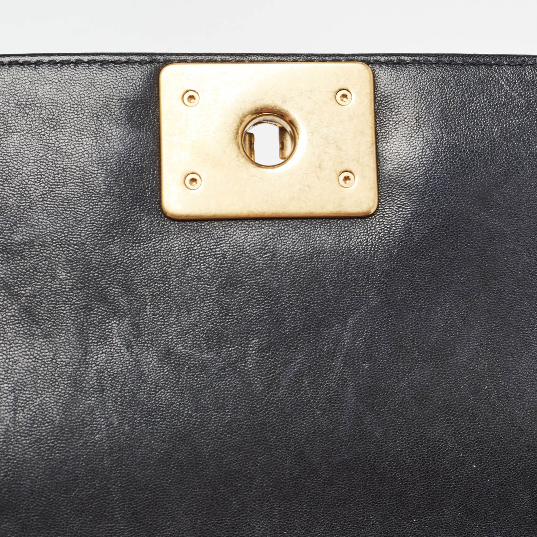 Chanel Black/Gold Woven Leather Medium Boy New Bag