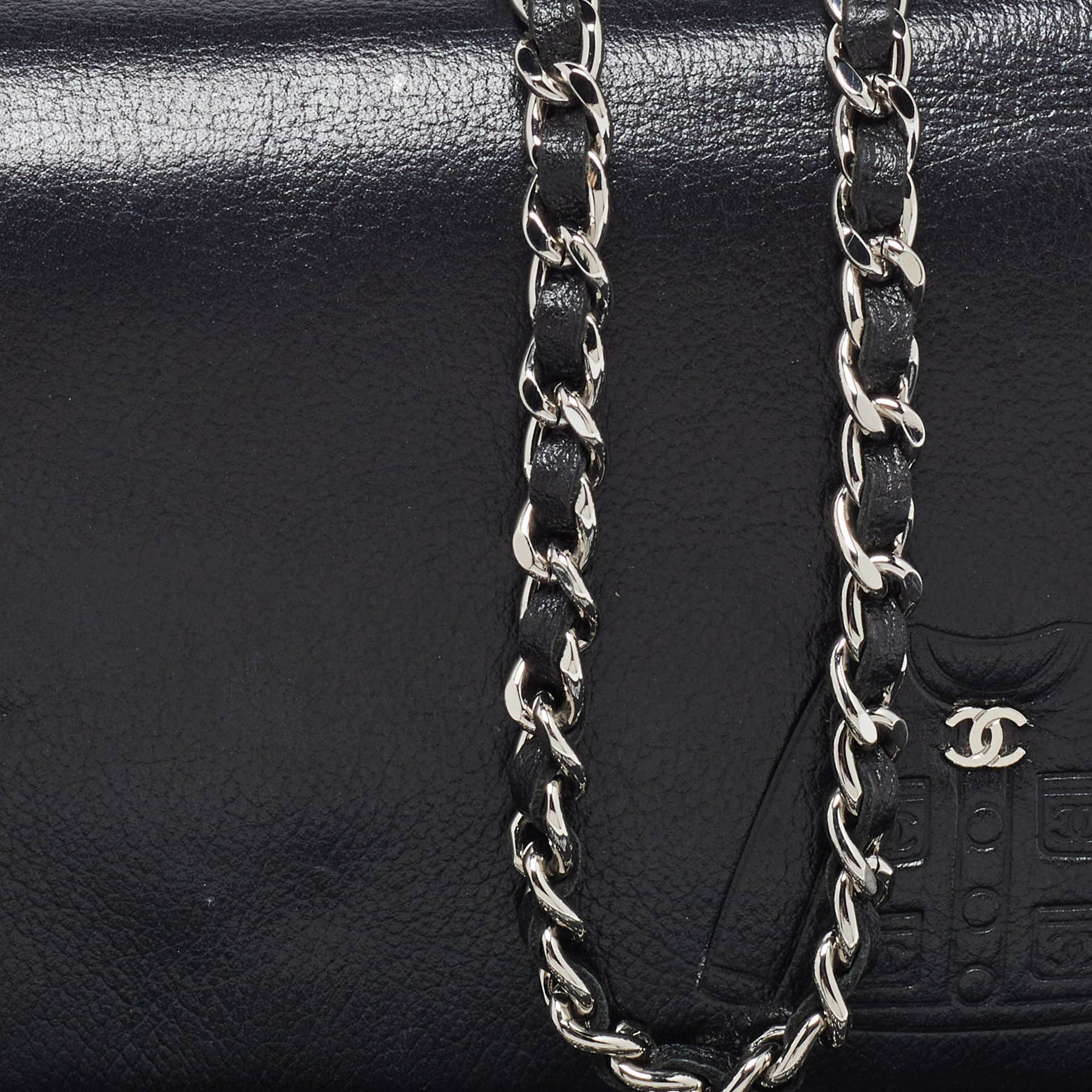 CHANEL Black Leather CC Jacket Embossed Leather Wallet on Chain