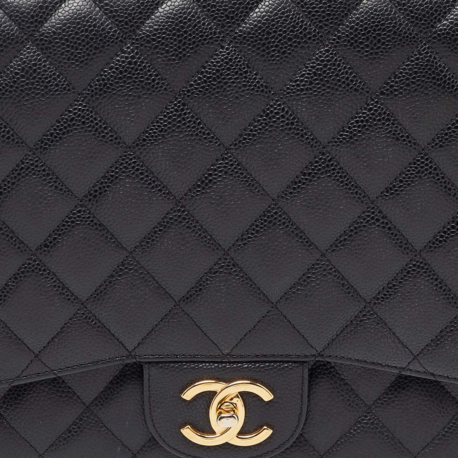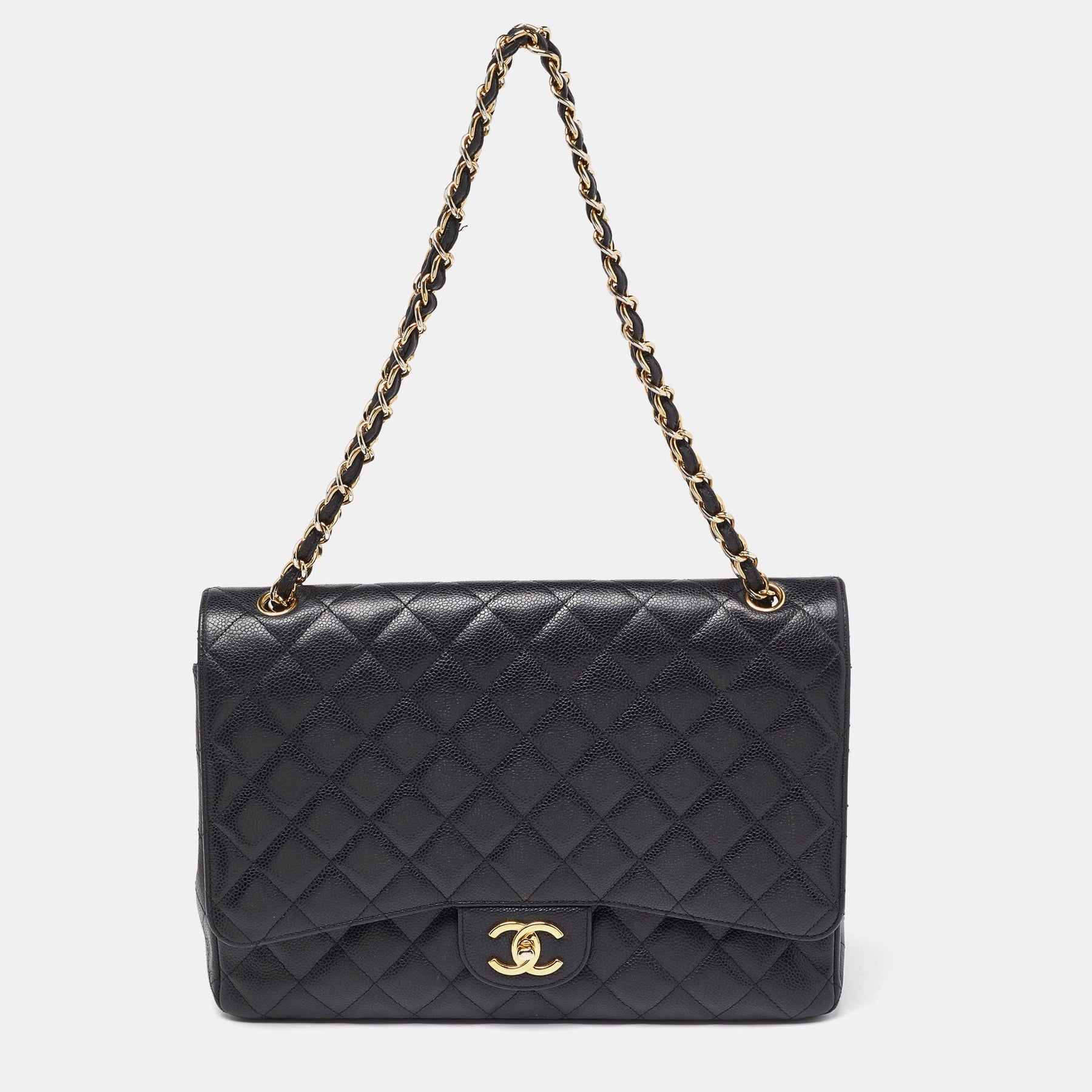 CHANEL Black Quilted Caviar Leather Maxi Classic Double New Bag