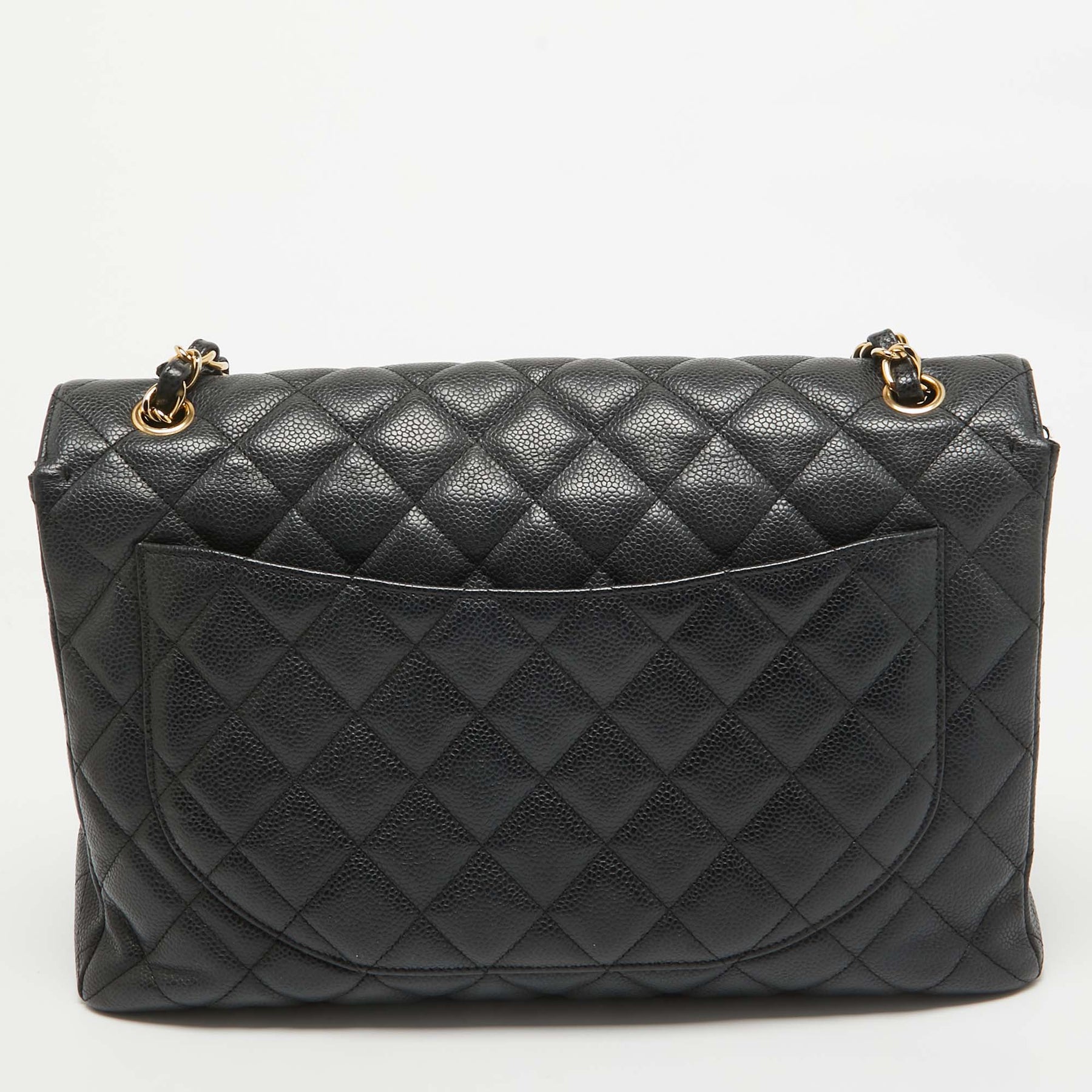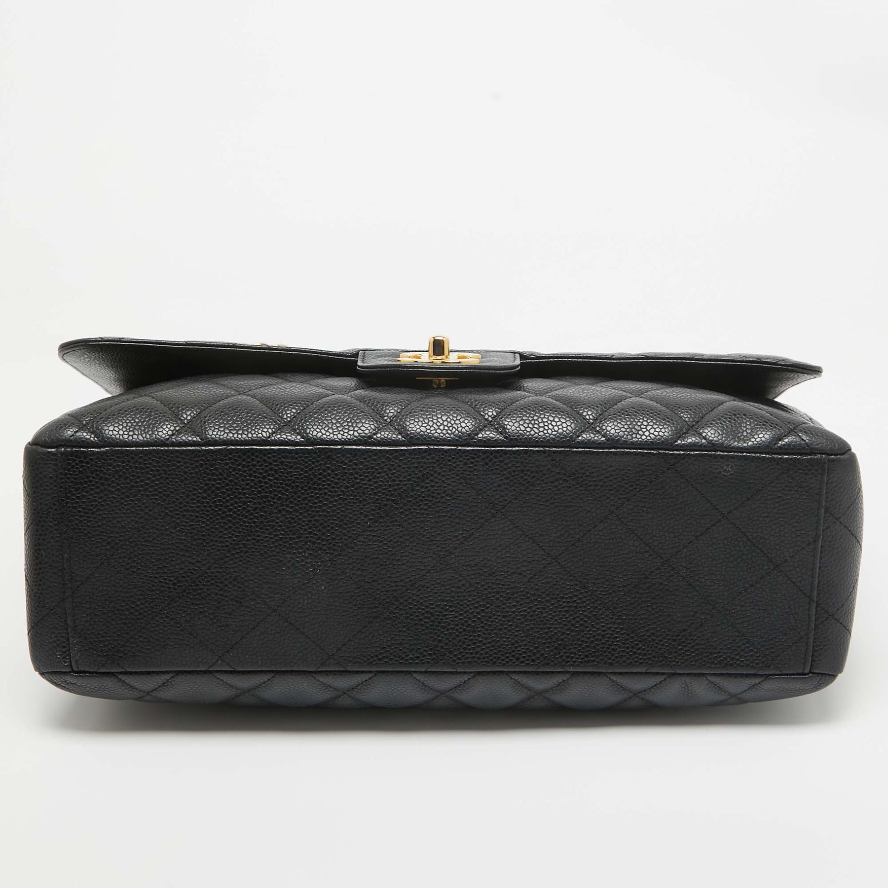 CHANEL Black Quilted Caviar Leather Maxi Classic Single New Bag