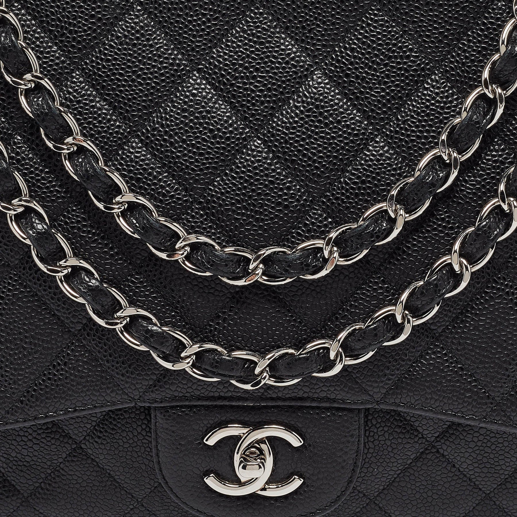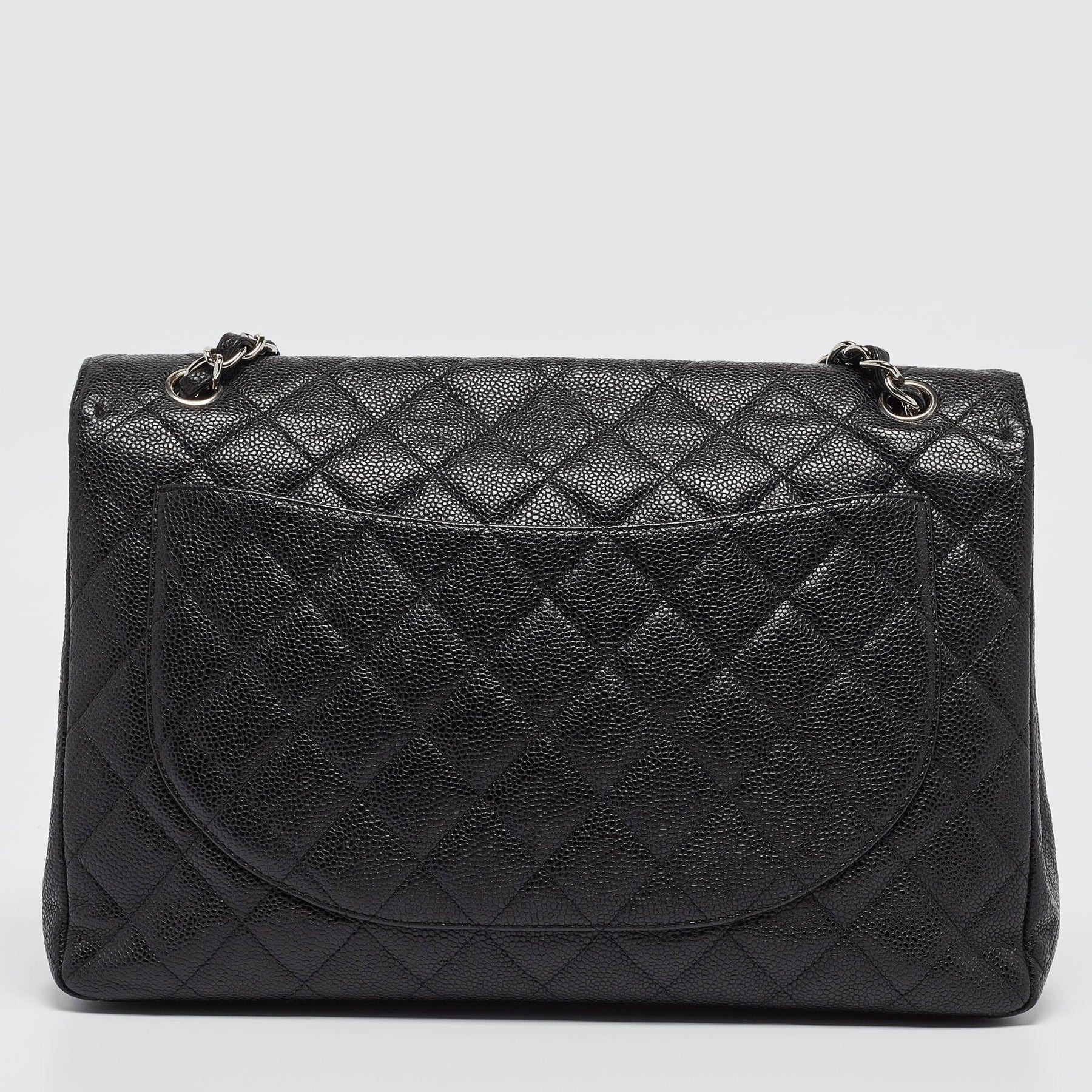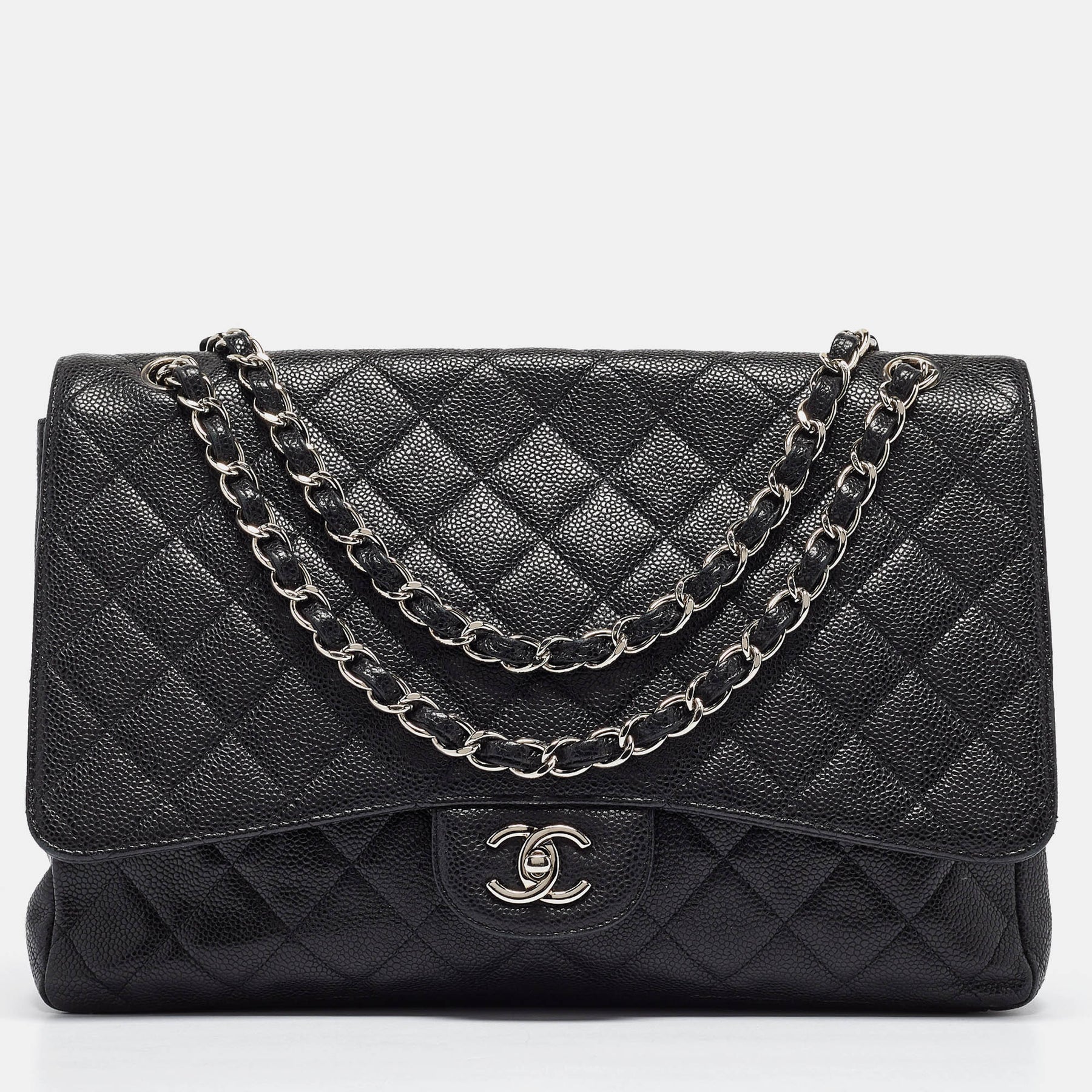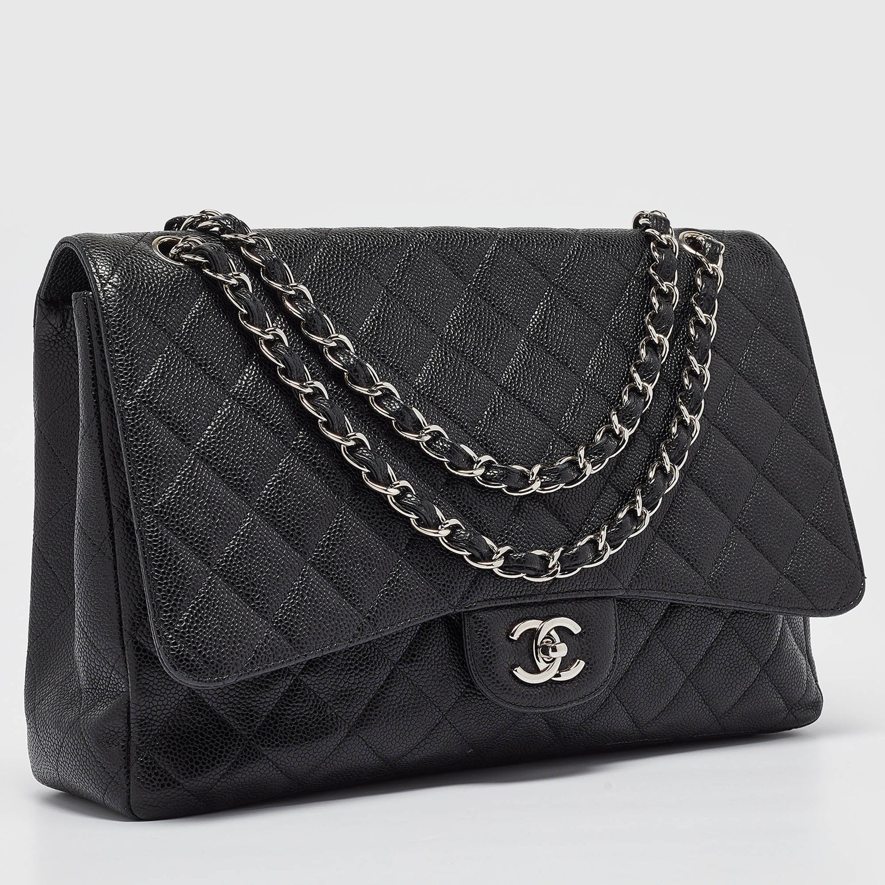 CHANEL Black Quilted Caviar Leather Maxi Classic Single New Bag