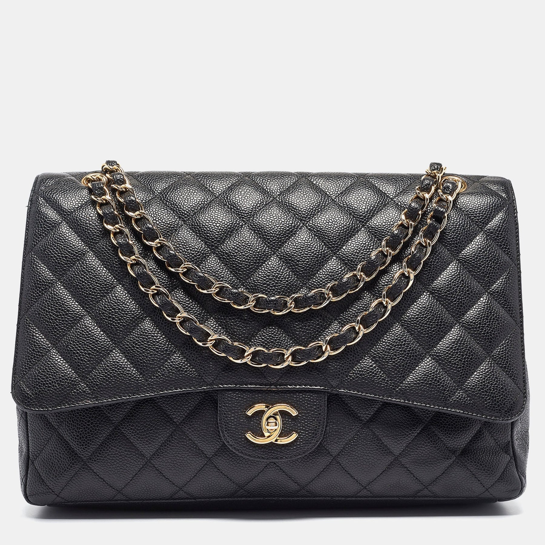 Chanel Black Quilted Caviar Leather Maxi Classic Single New Bag