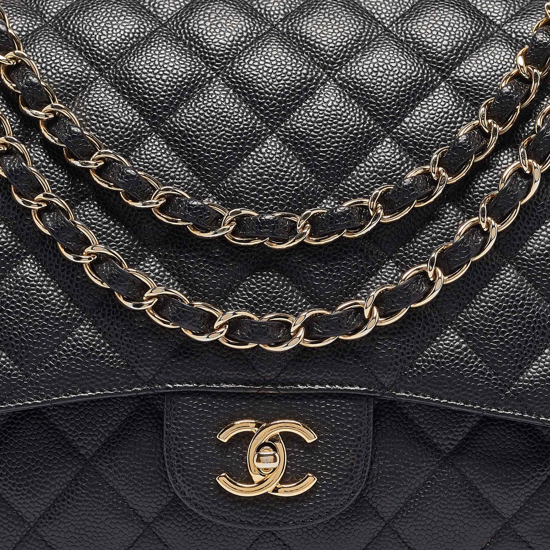 CHANEL Black Quilted Caviar Leather Maxi Classic Single New Bag