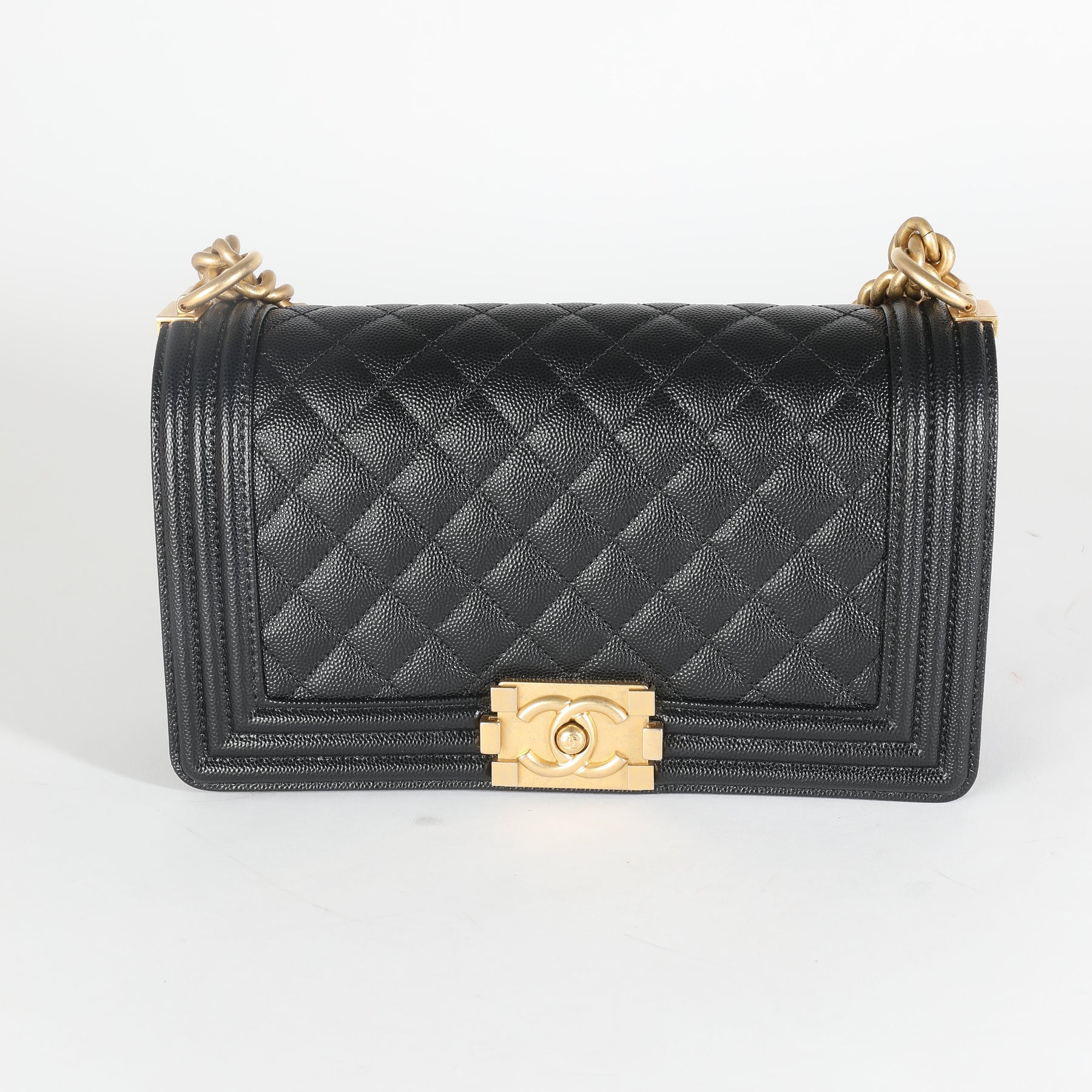 Listing Title: Chanel Black Quilted Caviar Medium Boy Bag