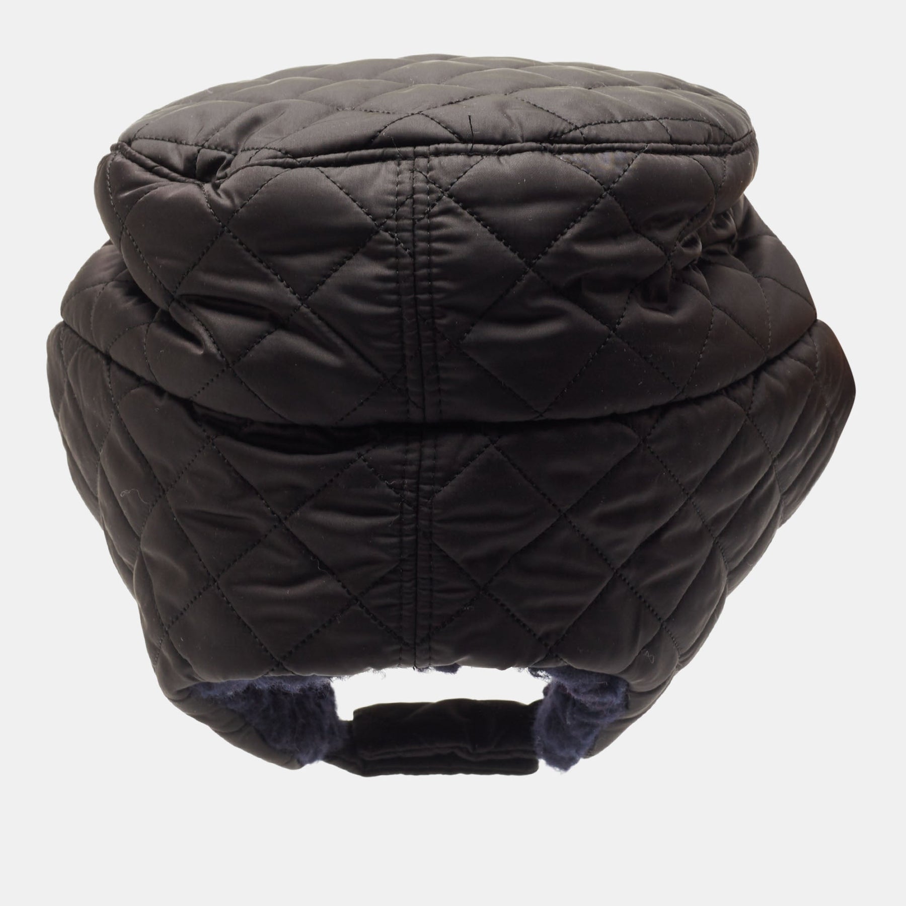 CHANEL Black Quilted Coco Neige Trapper Hat M