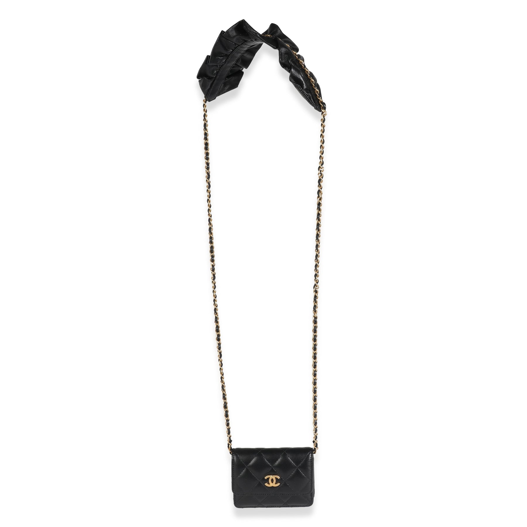 Listing Title: Chanel Black Quilted Lambskin Ruffled Card Holder On Chain