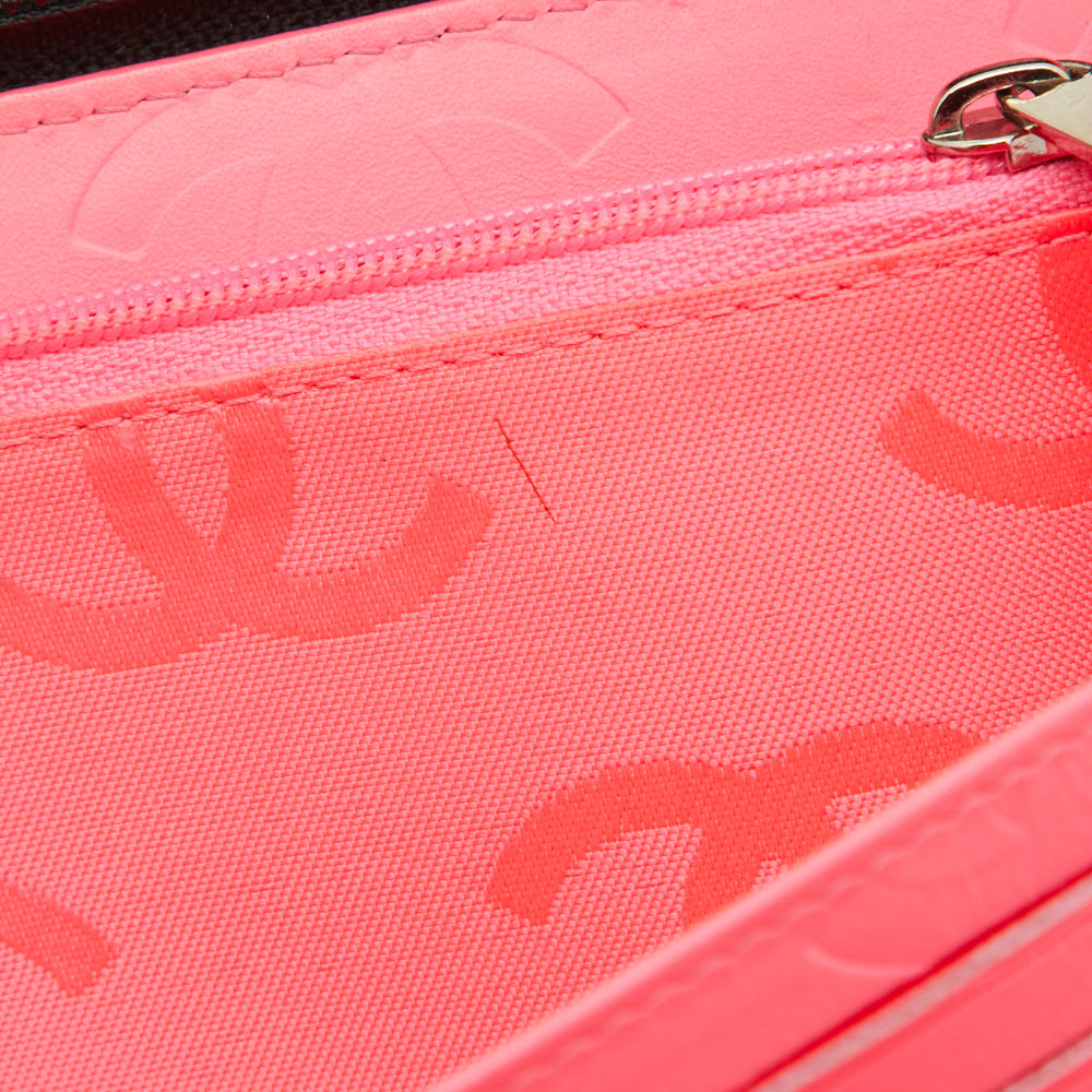 This Chanel Ligne Cambon wallet is carefully designed for everyday use. Crafted from leather, the exterior has the iconic quilt pattern. The wide zip closure opens to reveal a zip compartment and multiple slots, for you to neatly arrange your cash and cards. This stylish piece is complete with the famous CC on the front.