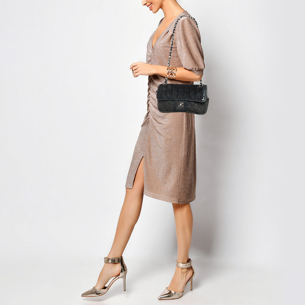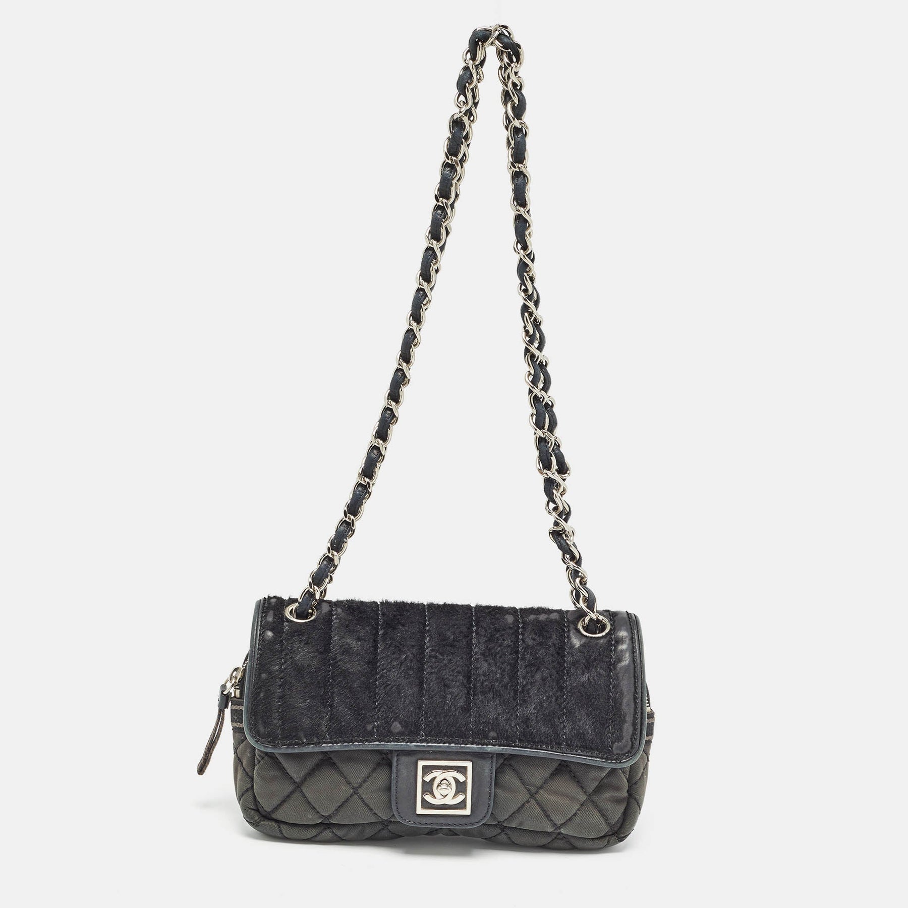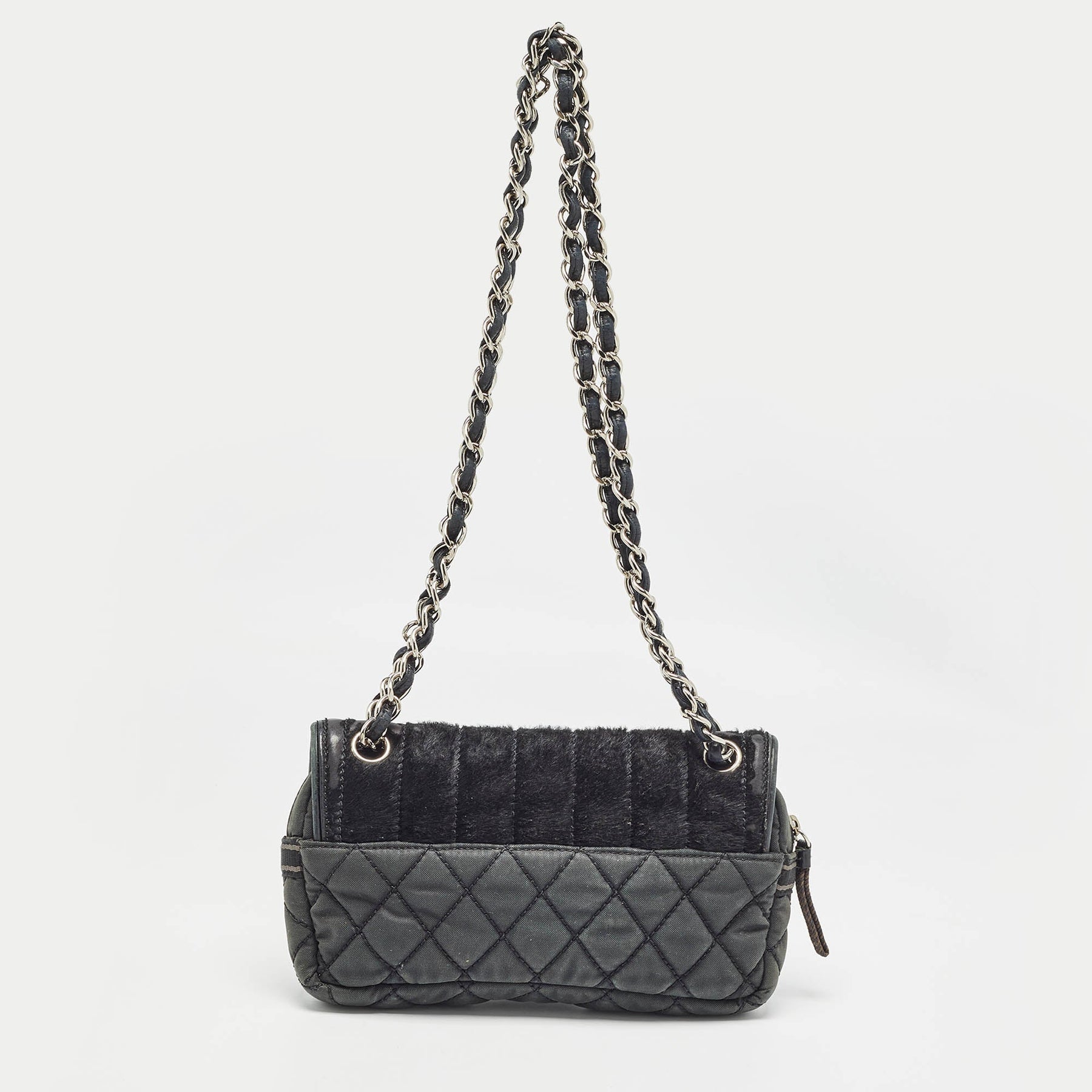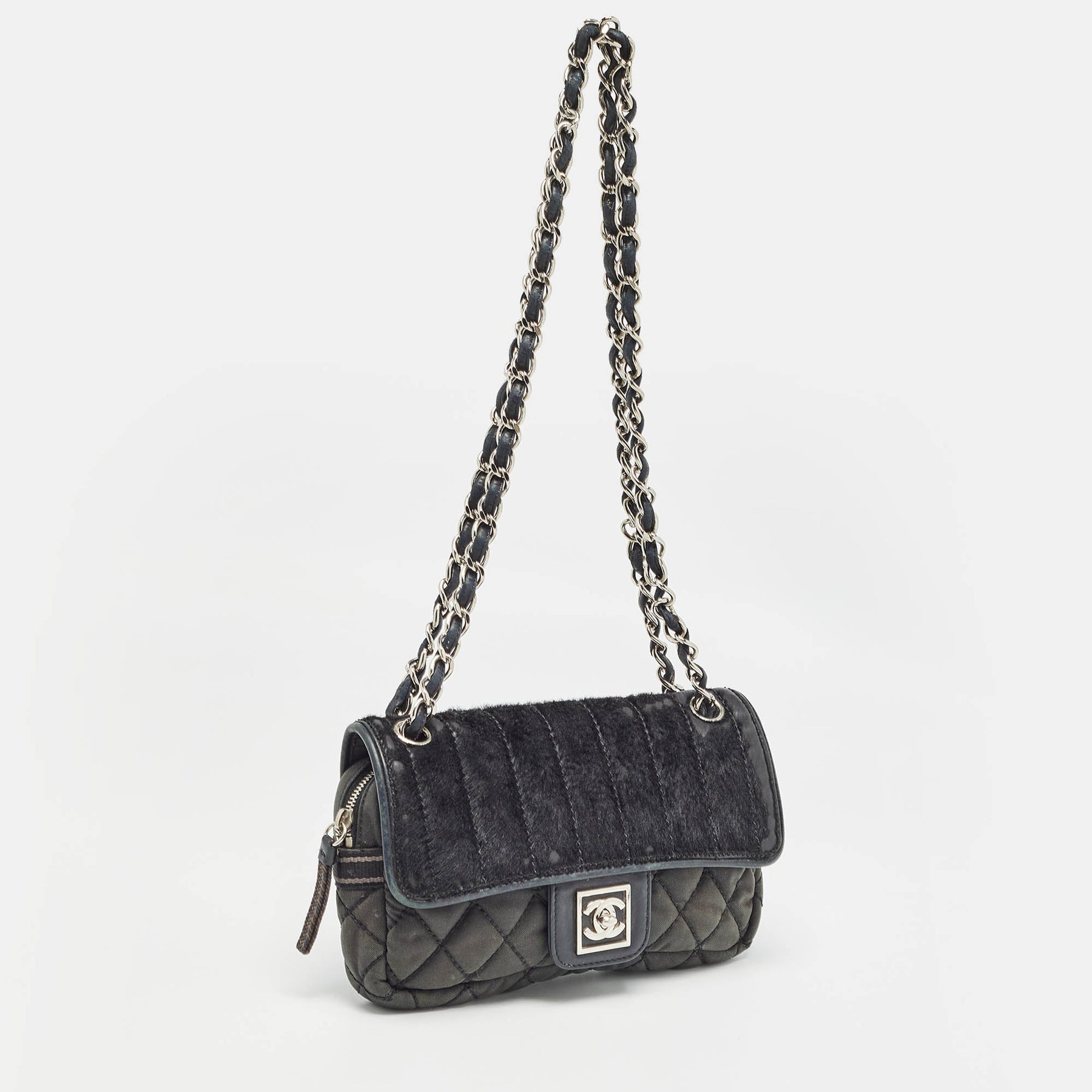 Chanel bags are coveted around the world for their timeless appeal and fine craftsmanship. This shoulder bag is no different. Crafted in Italy, it is made fo quality nylon and leather and flaunts a lovely black exterior. It features the signature quilted pattern throughout. It is styled with a front New with the CC turn lock tat opens to a nylon lined interior with a zip pocket ad brand label. It is finished with the signature interweaved chain straps and silver tone hardware.