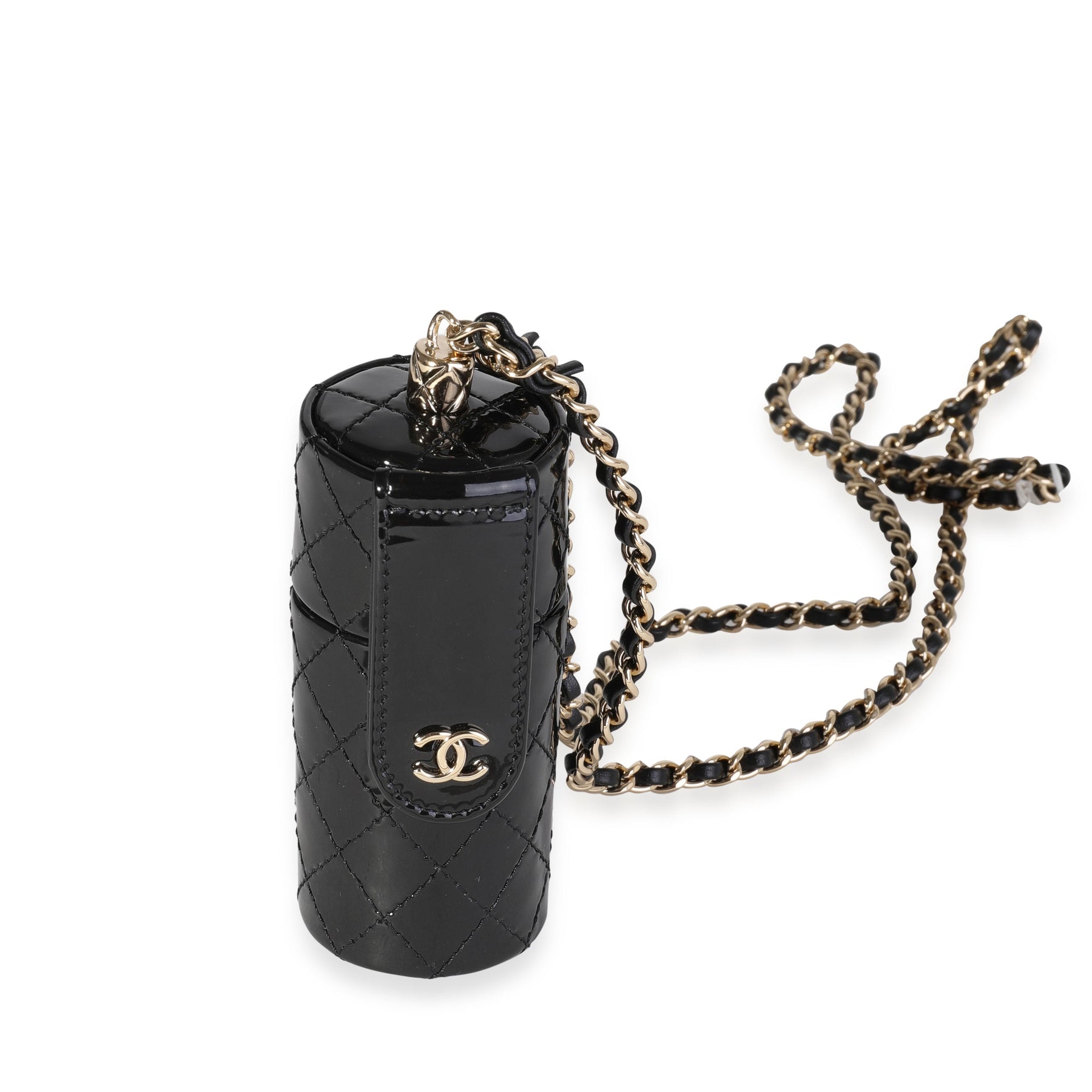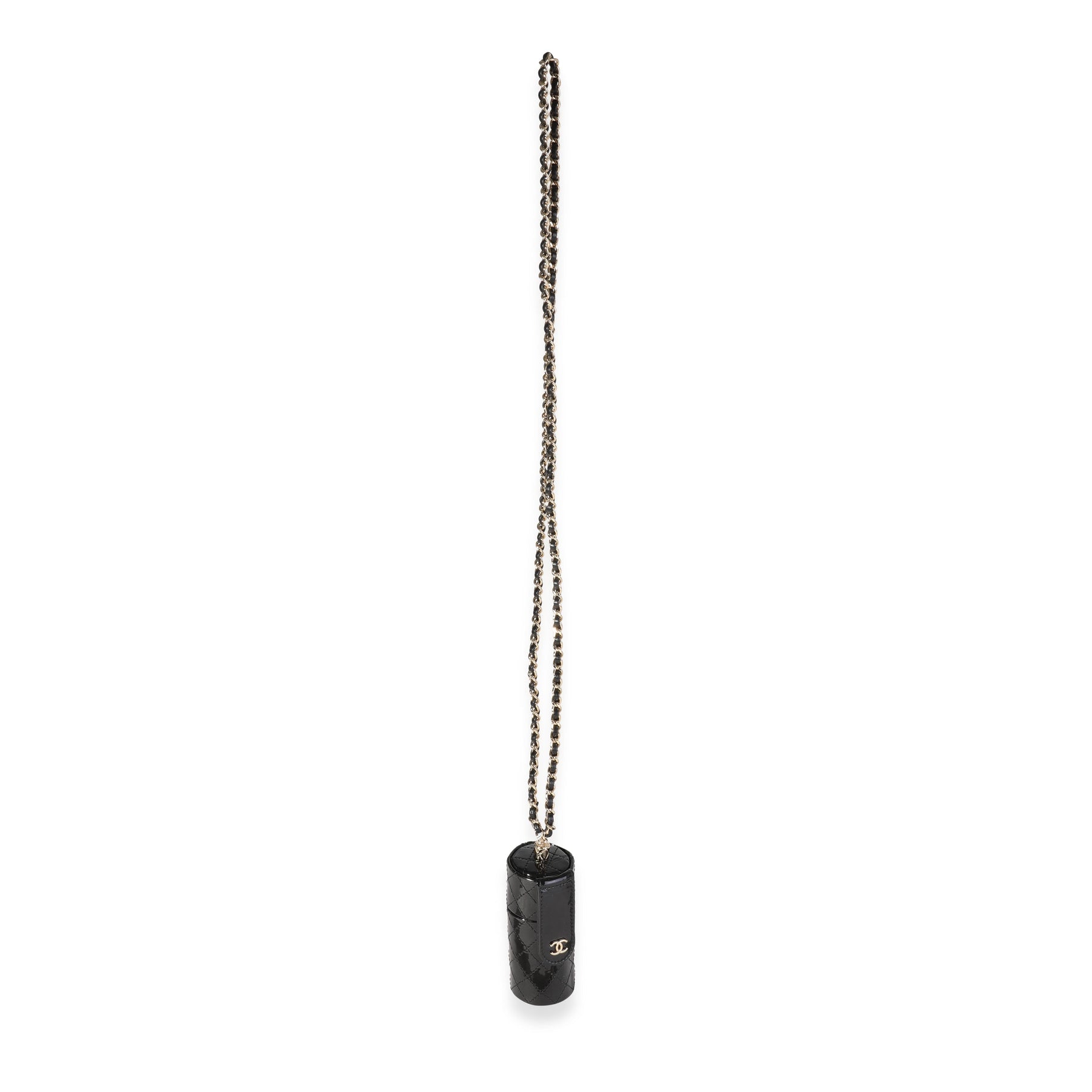 Listing Title: Chanel Black Quilted Patent Leather Lipstick Case On Chain