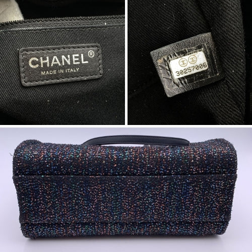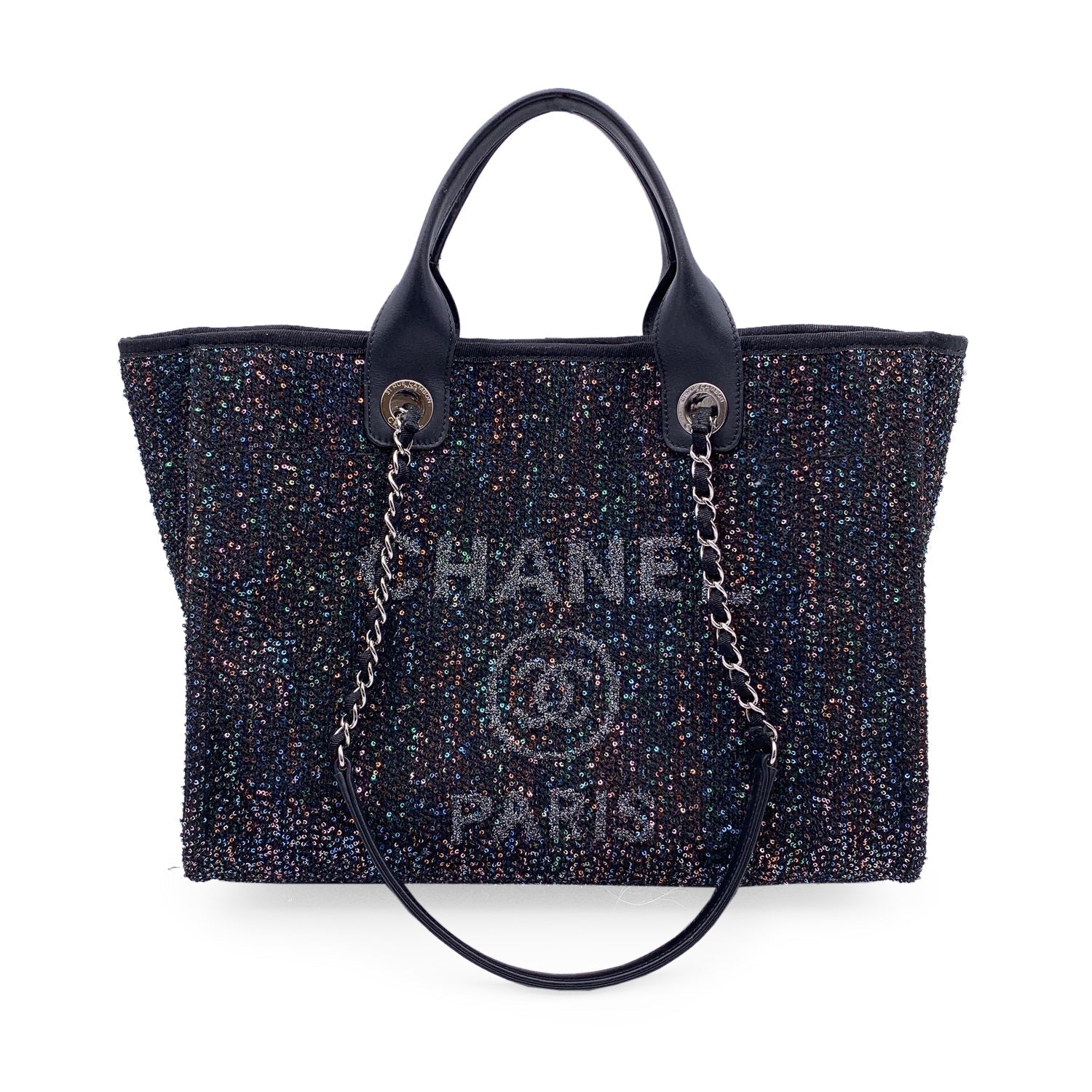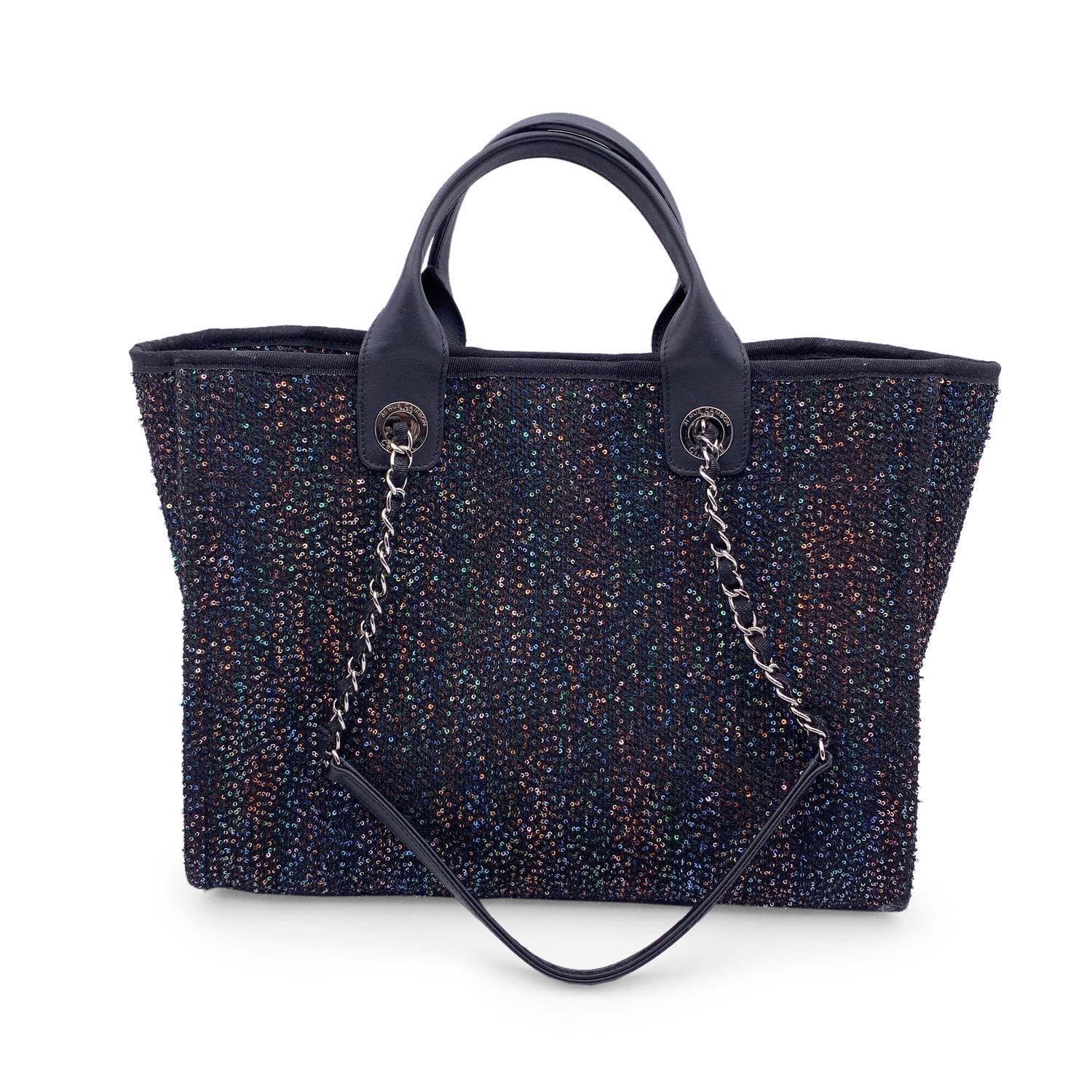 Beautiful Chanel 'Deauville' Tote, Crafted In Black Canvas With An Embroidered 'Chanel Cc Paris' Logo And Allover Shimmering Multicolored Sequins.