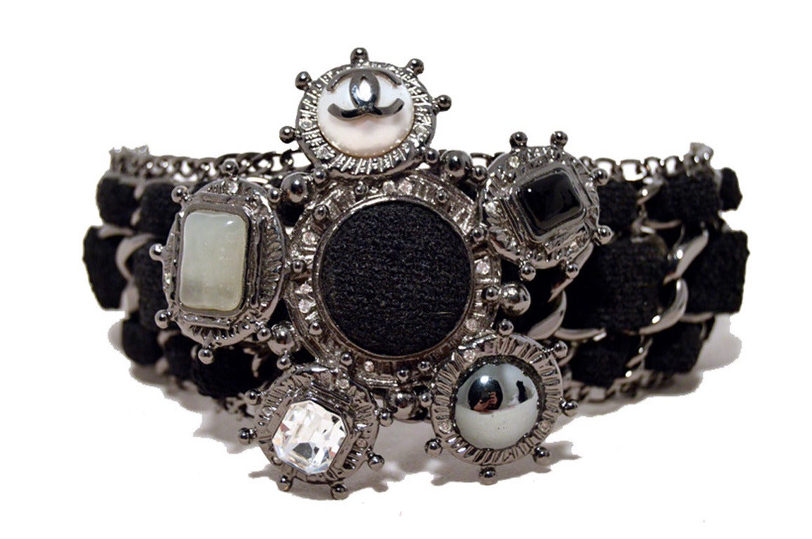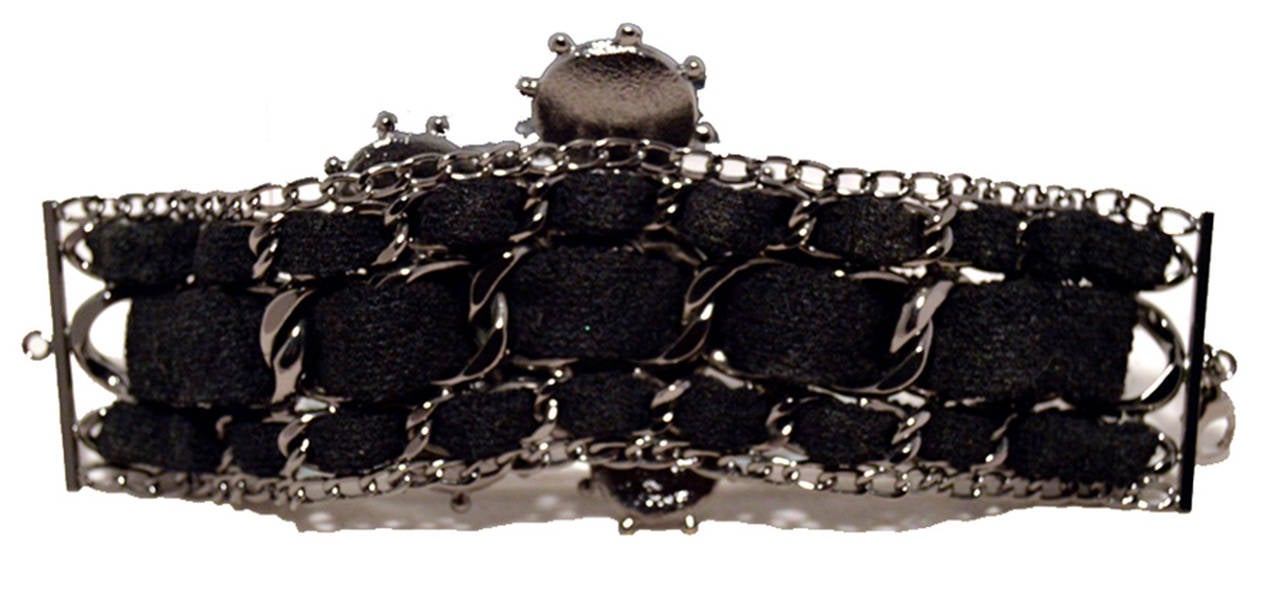 Stunning Rare Chanel black wool and gunmetal charms bracelet in Mint condition.
