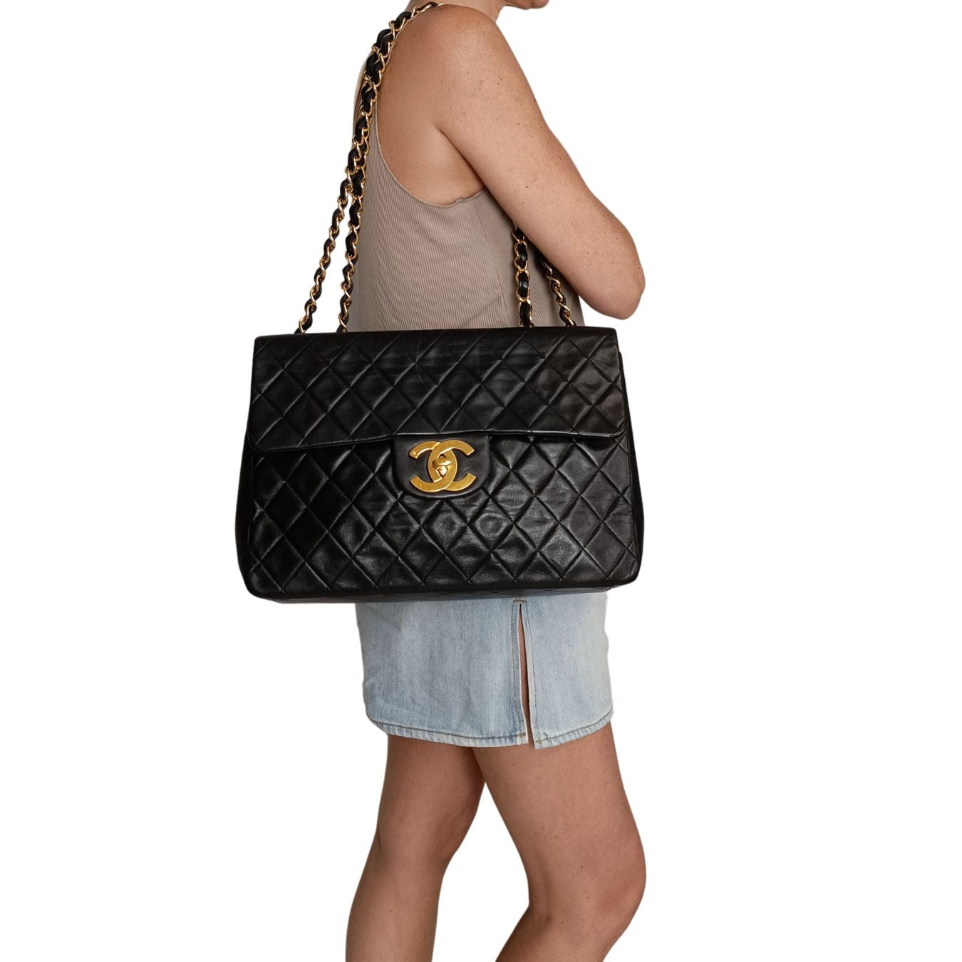 Chanel Dekamatrasse 34 Maxi shoulder bag in black leatherProduced in France in 1994 - 1996.