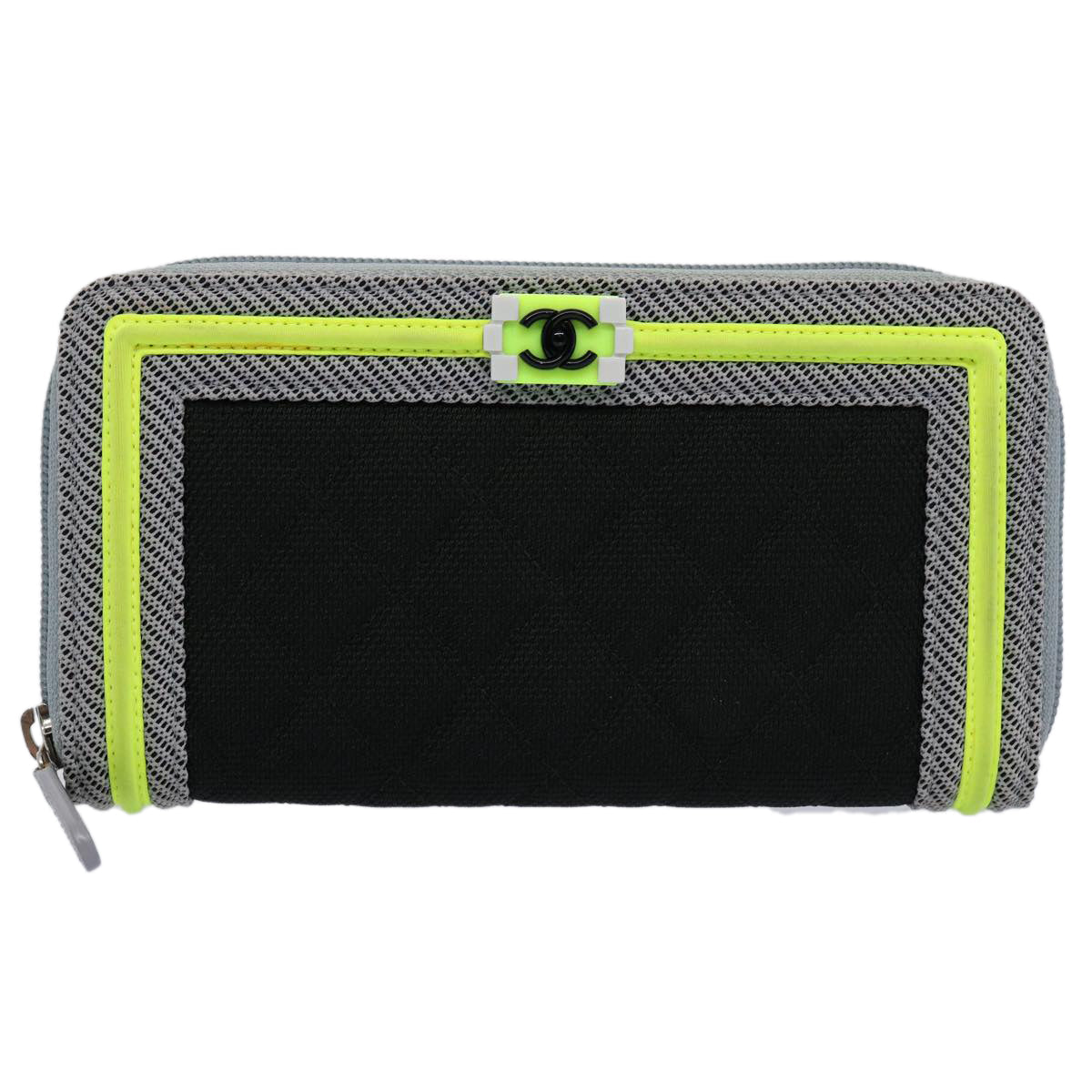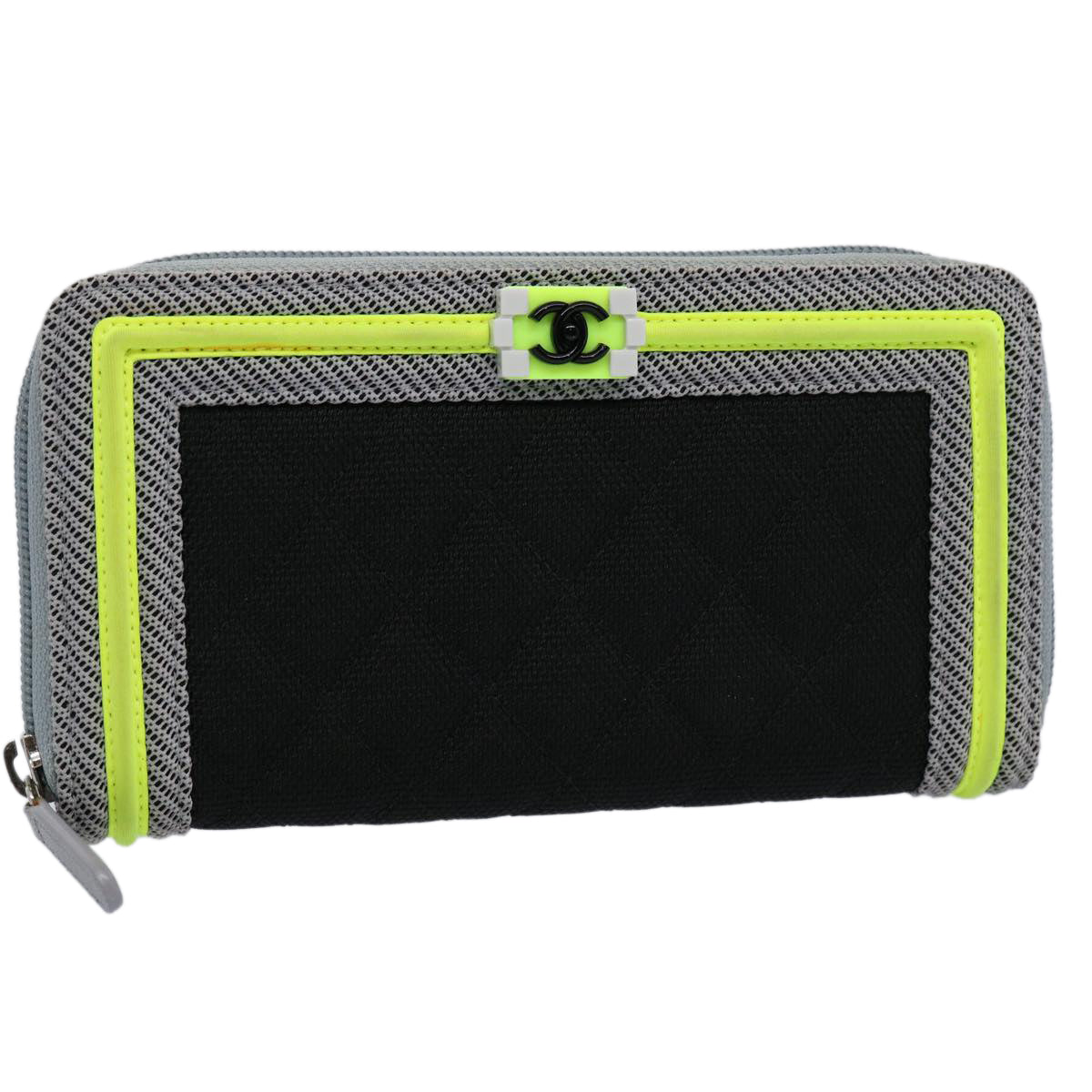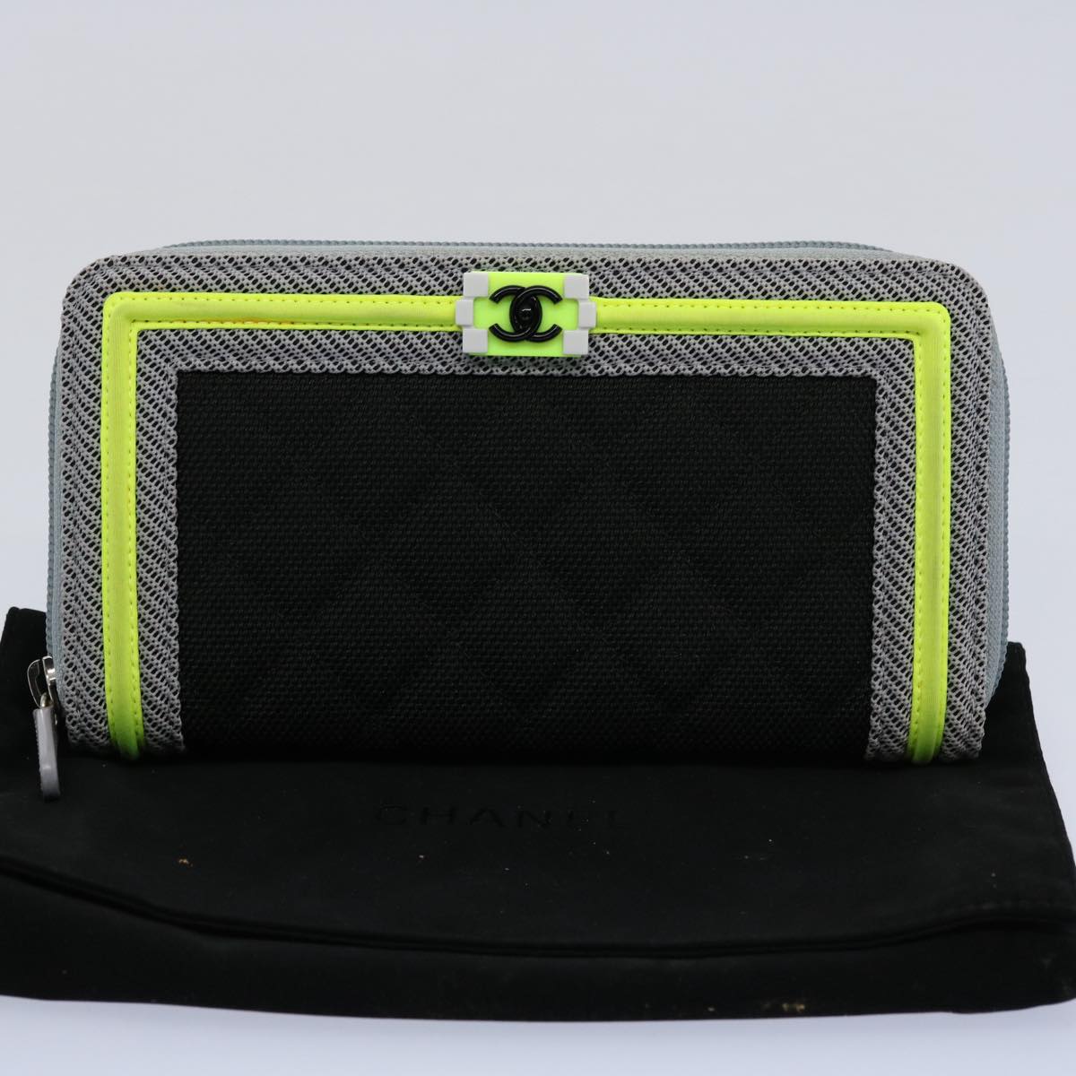 CHANEL Boy Matelasse Wallet Nylon Black CC Auth ar10980B