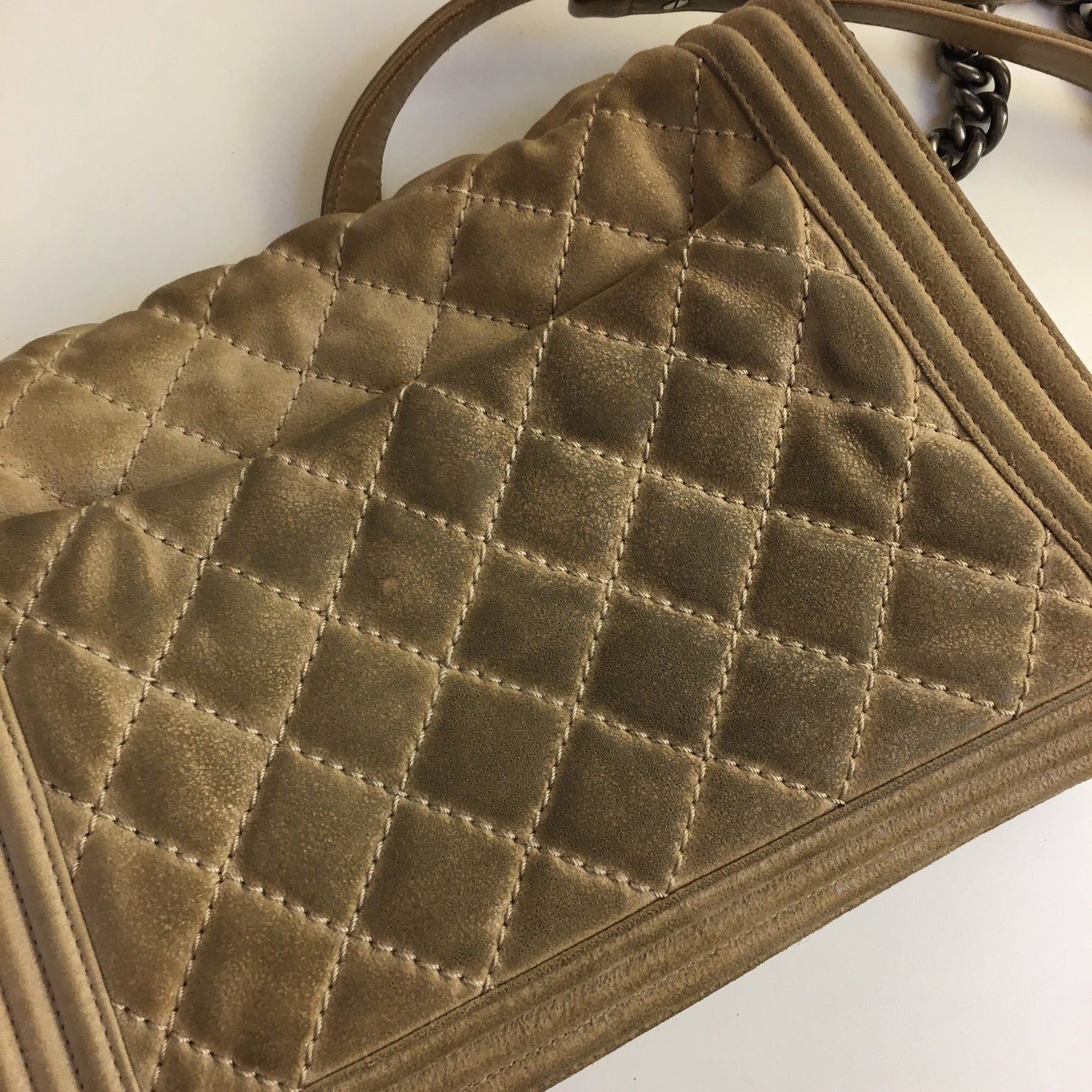 The suede is overall in very New conditions, with little color transfer on the back of the bag