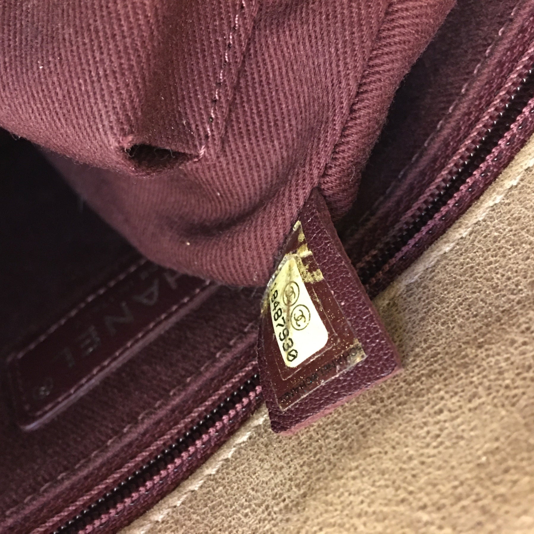 Inside, the leather shows some little scratches, while the wine color lining is clean.