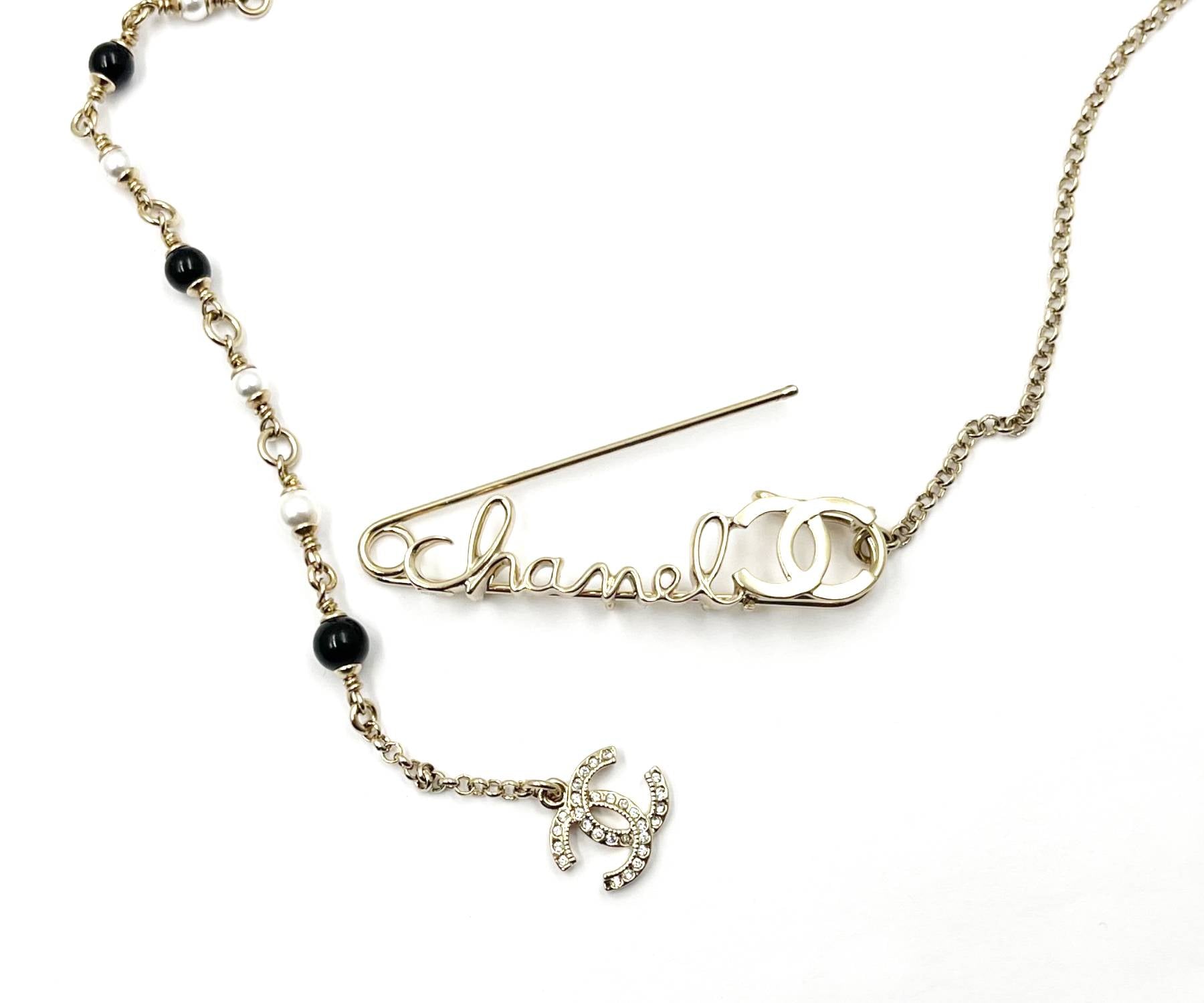 Chanel Brand New Rare Light Gold Safety Pin Pearl Necklace.