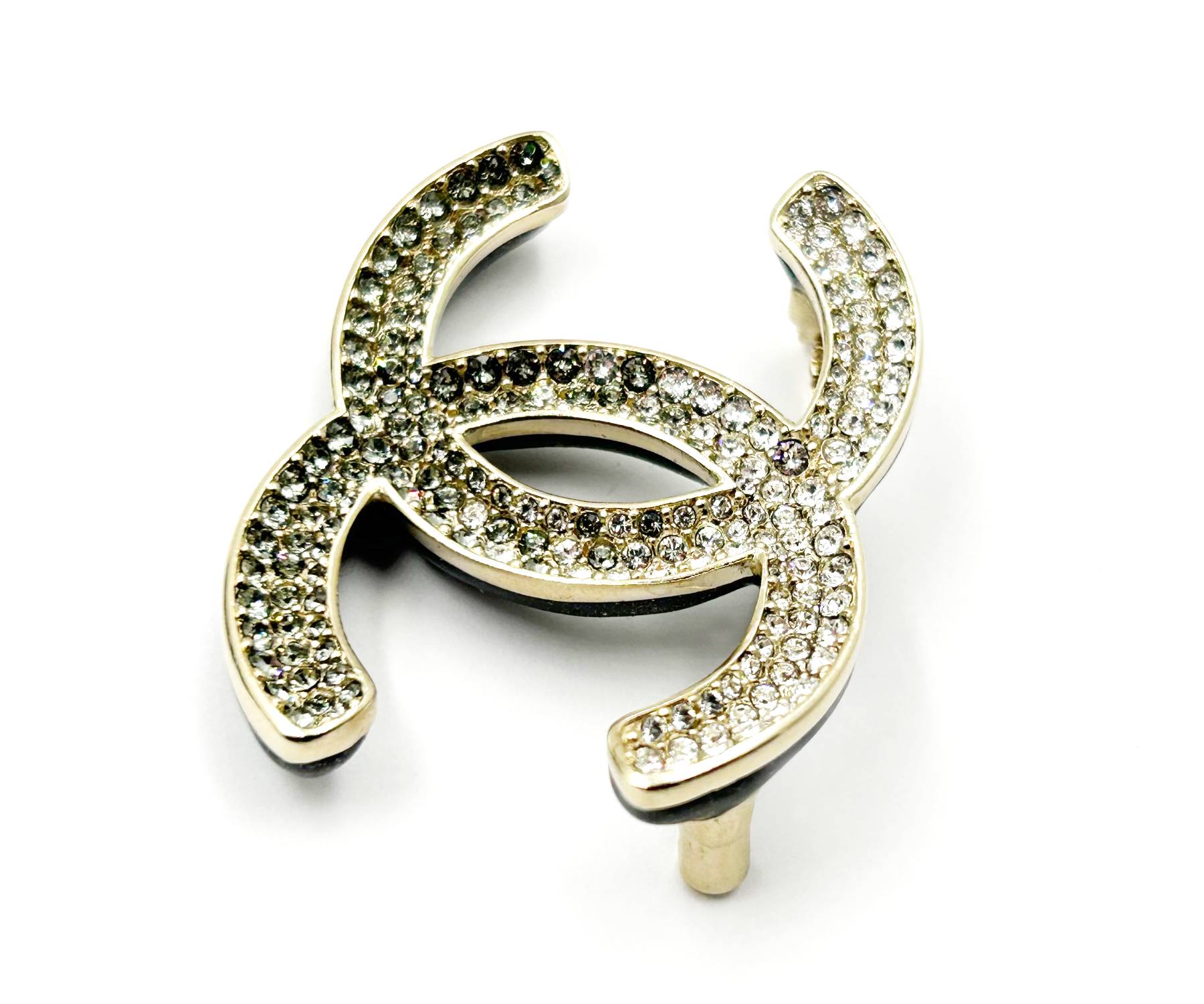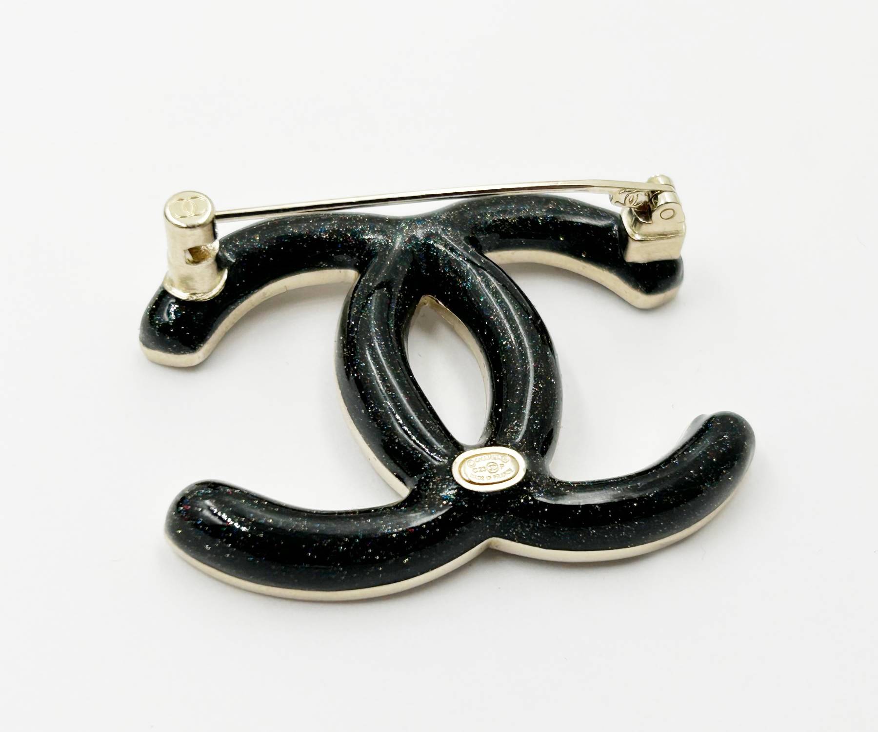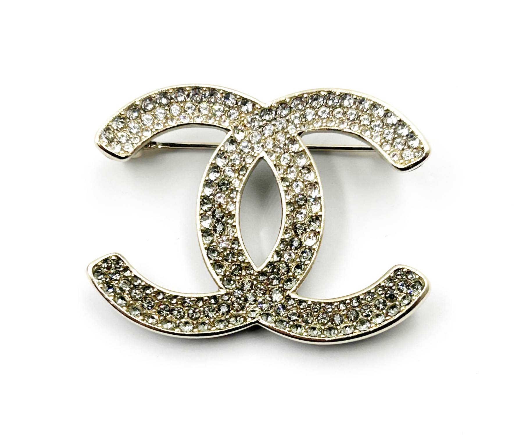 Chanel Brand New Silver Grey Ombre Black Curve Brooch.