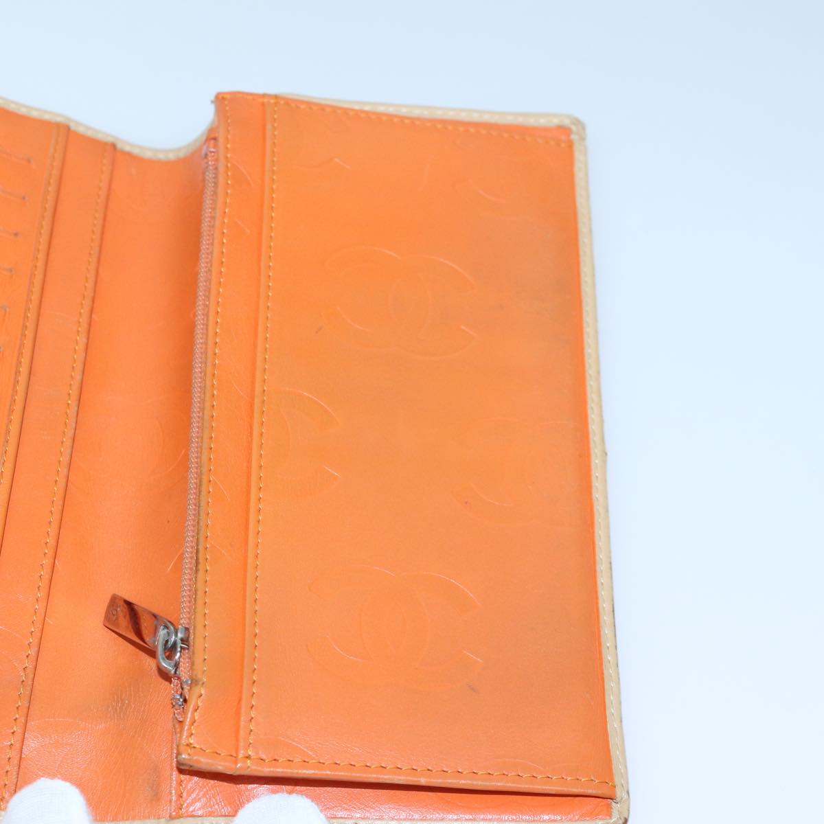 CHANEL Cambon Line Matelasse Long Wallet Leather Beige CC Auth bs16763