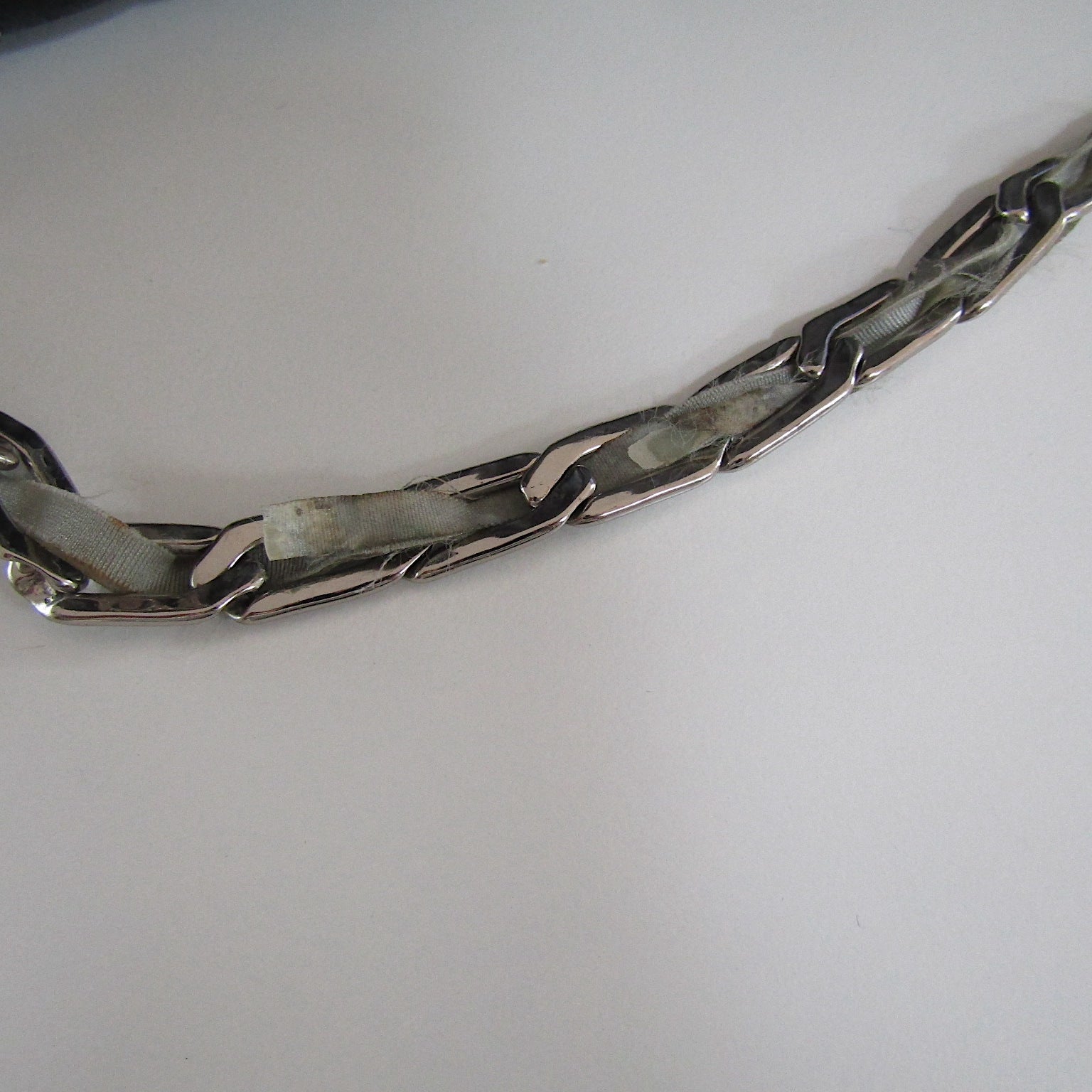 Internally, the silver lining is scratched and there's a visible patch near the zip showing an unprofessional repair